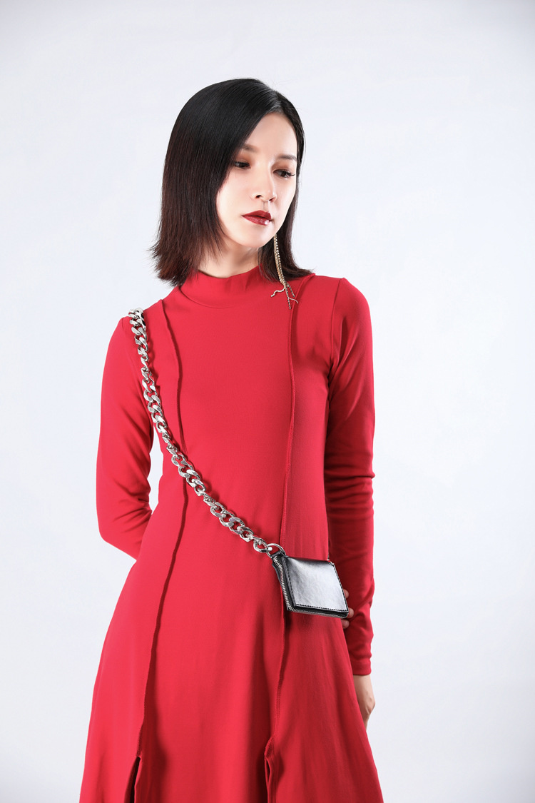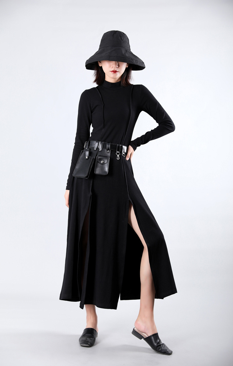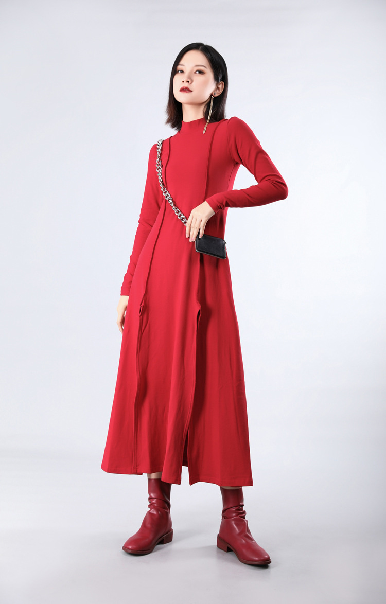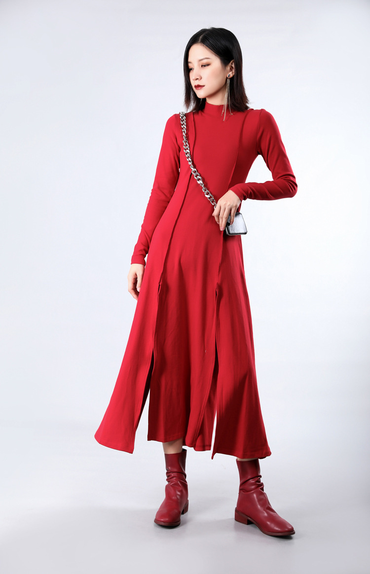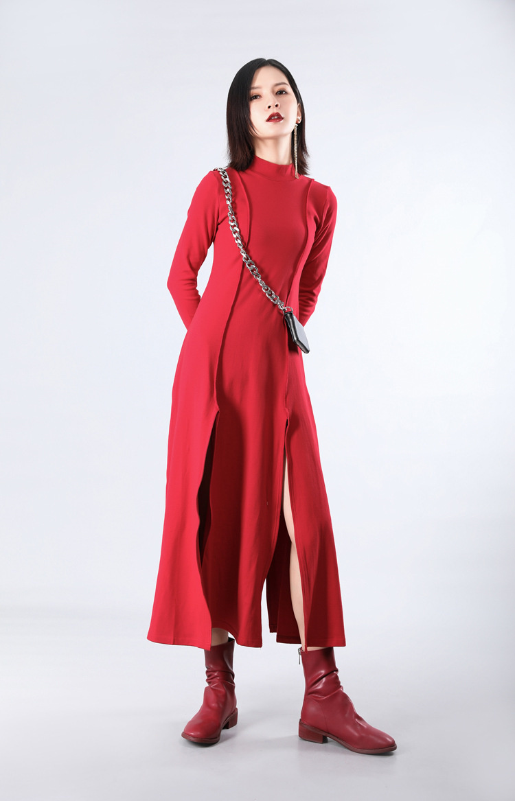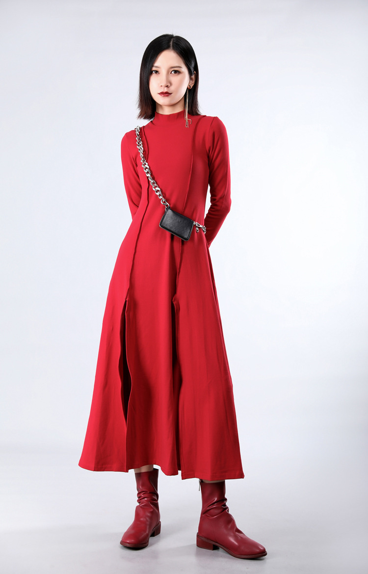 裾にスリットを施した個性的なデザインで、歩くたびに美しいシルエットを演出。