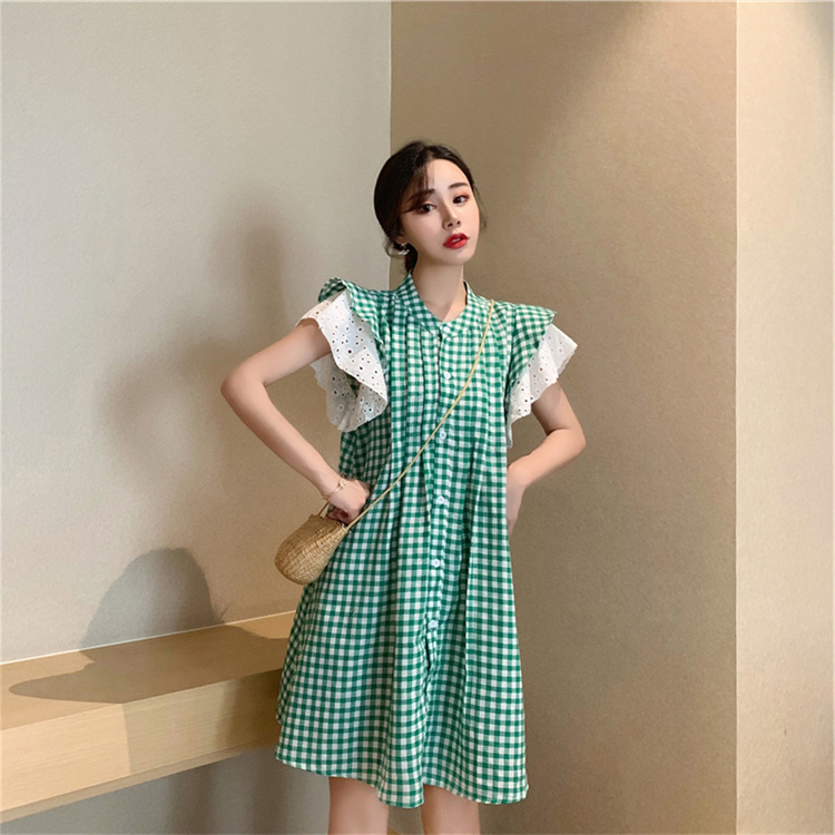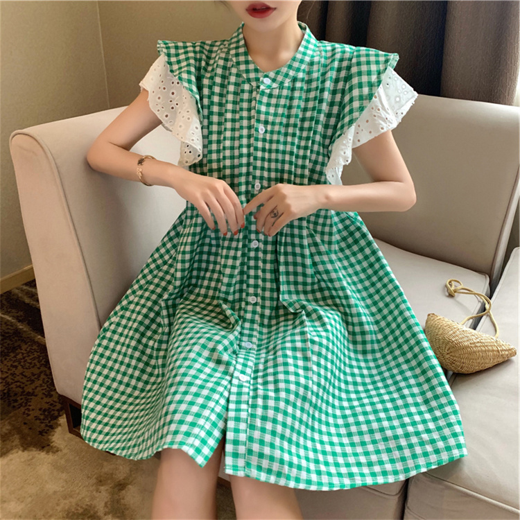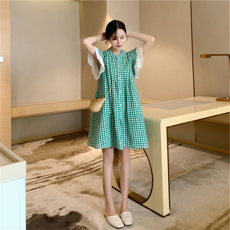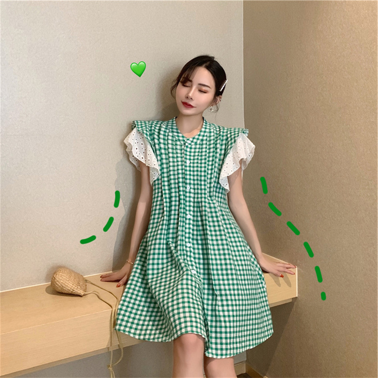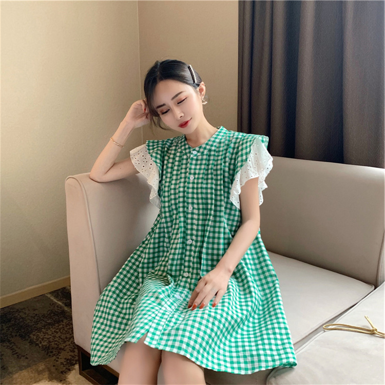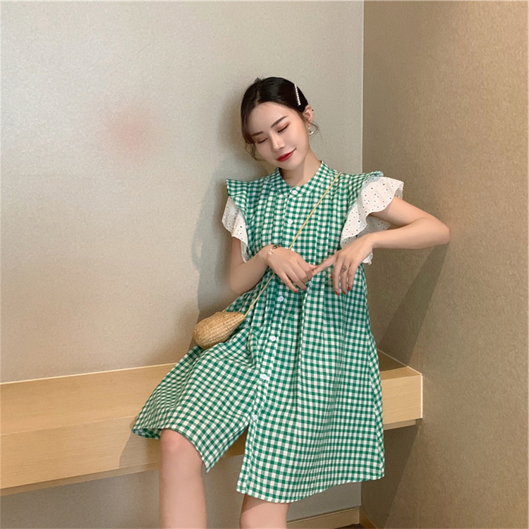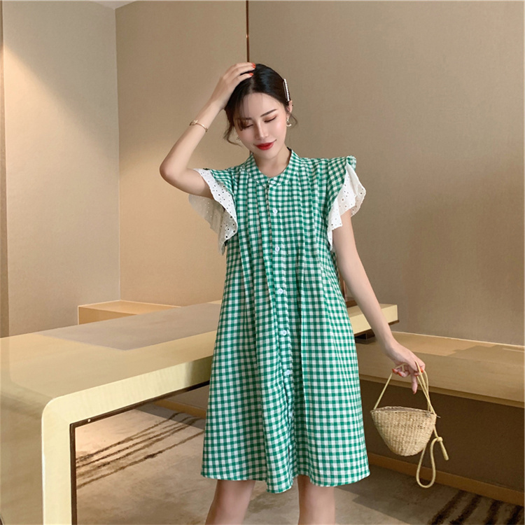 上品な格子柄が印象的なシャツワンピースです。