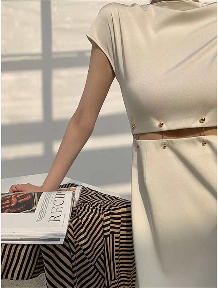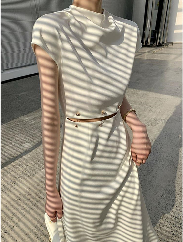 ロングワンピースならではのエレガントなスタイルをお楽しみください。