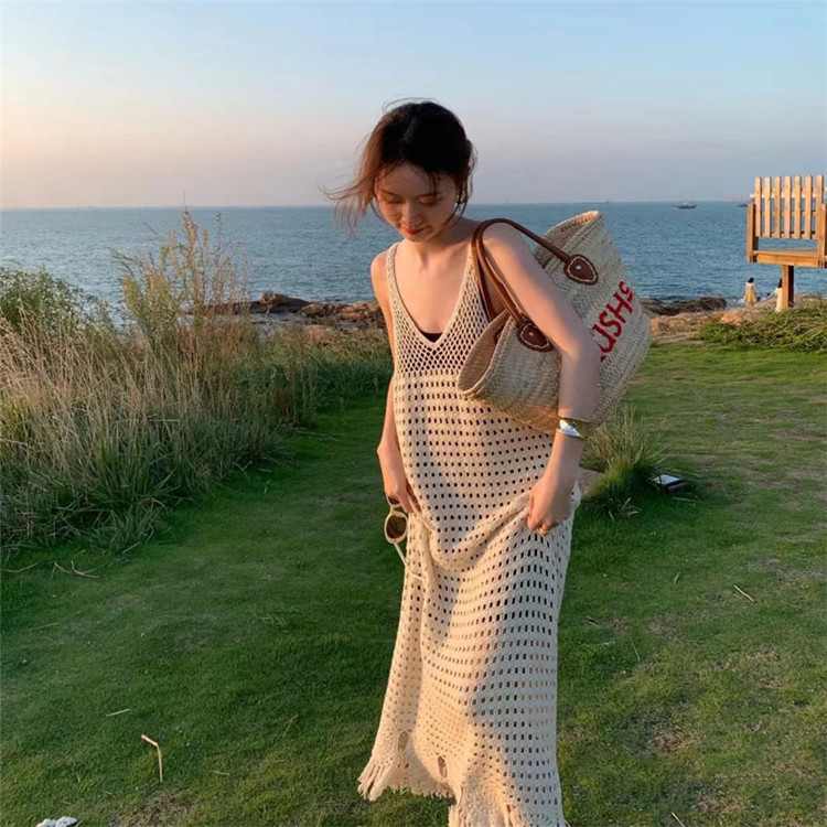 夏にぴったりなニットキャミのロングワンピースです。