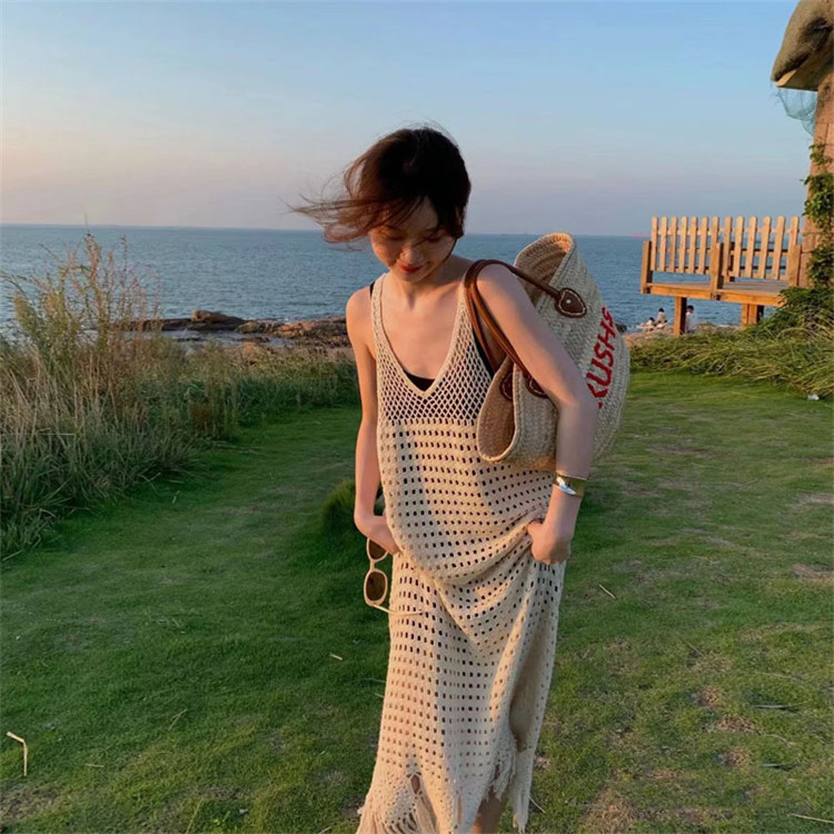 透け感のある編み地とフリンジ裾が大人可愛いレトロな印象を演出します。