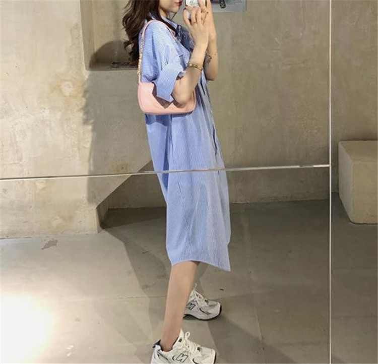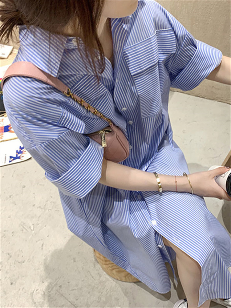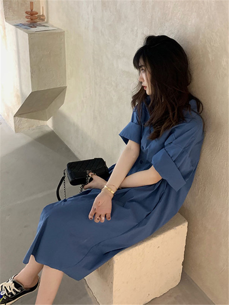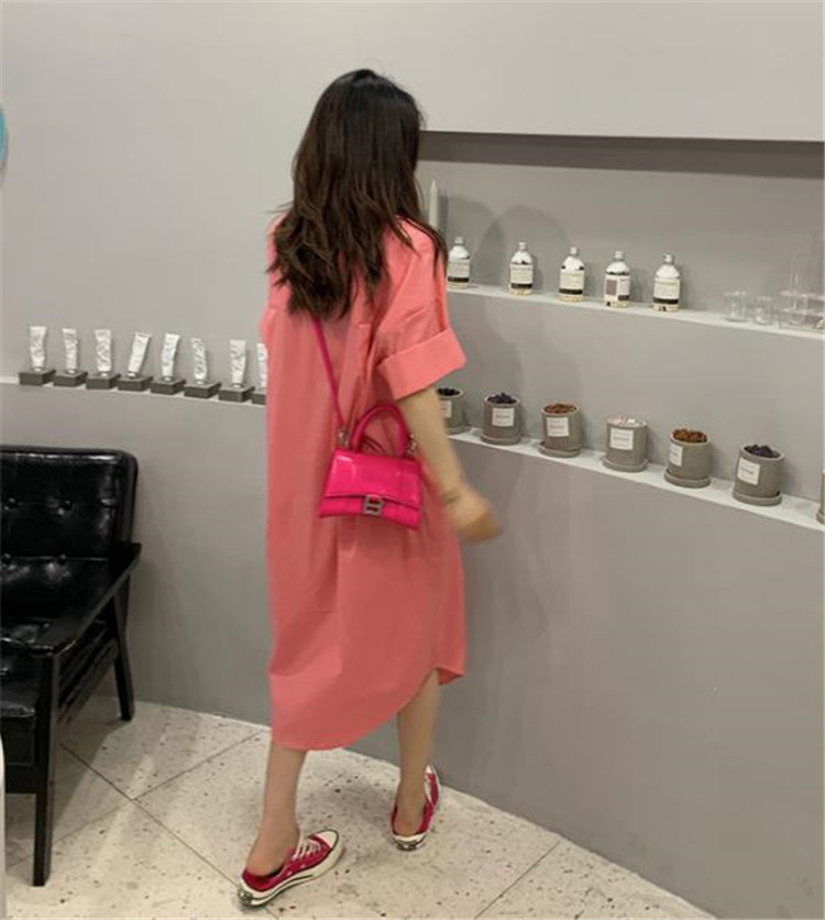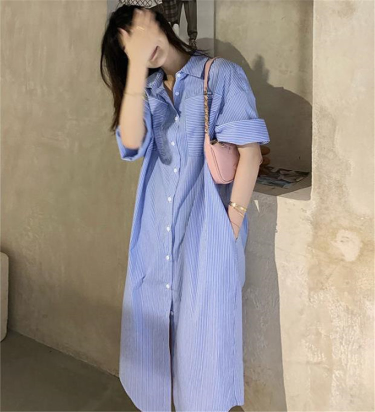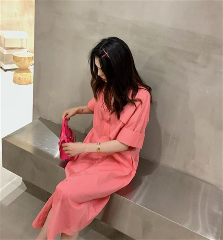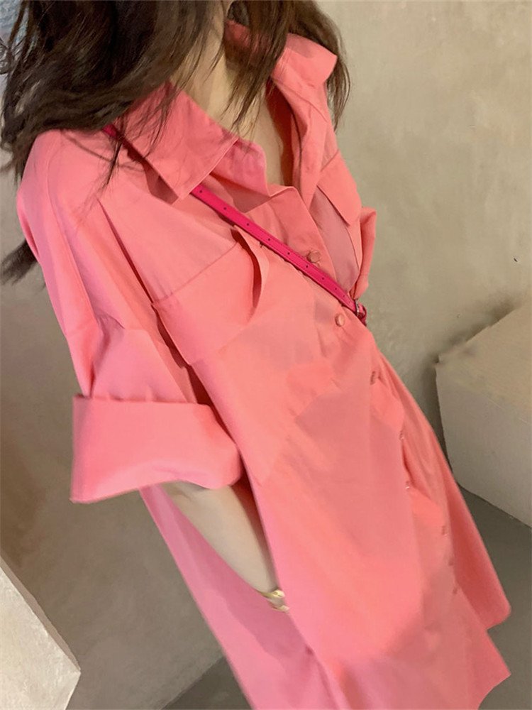 シャツのデザイン性とワンピースの女性らしさを兼ね備えた一枚です。