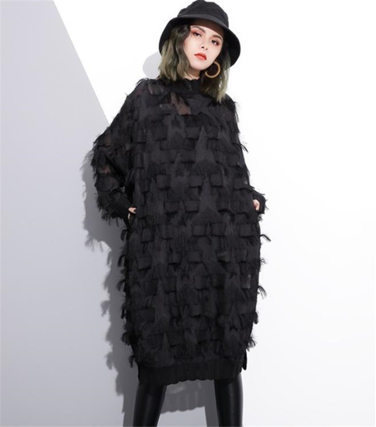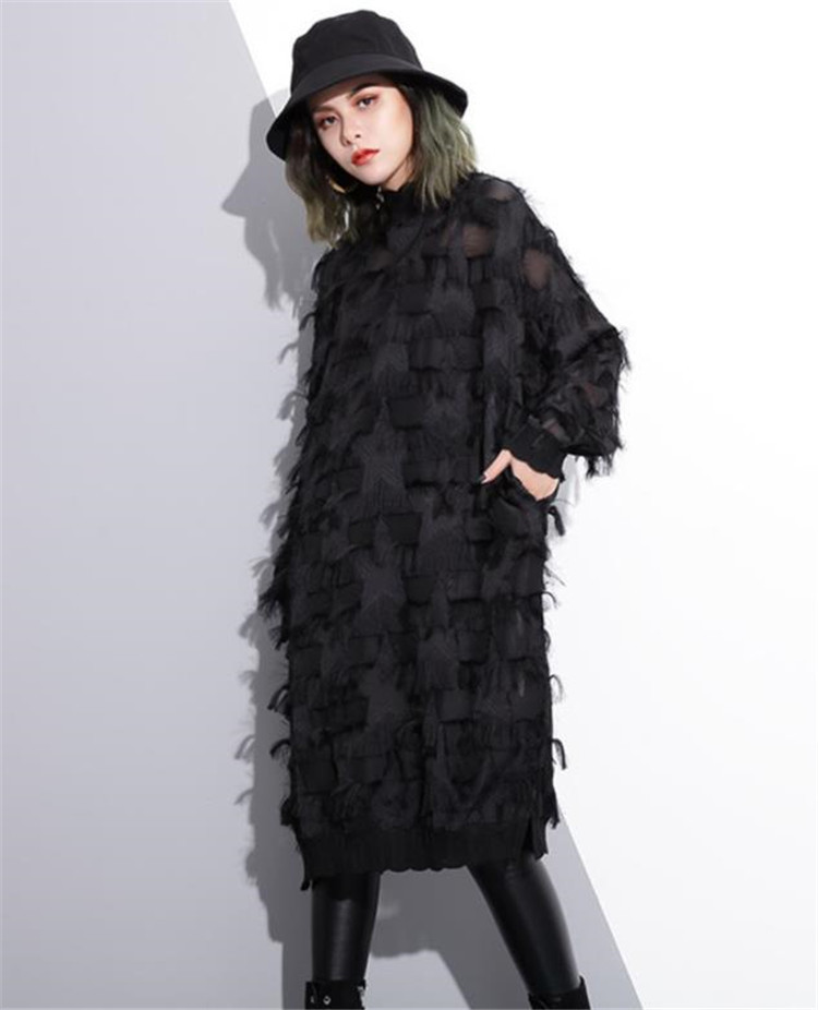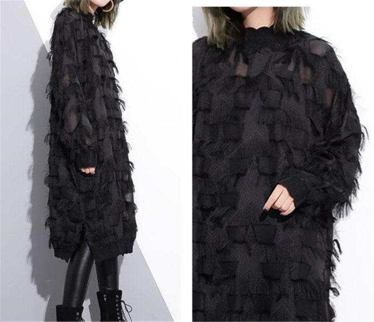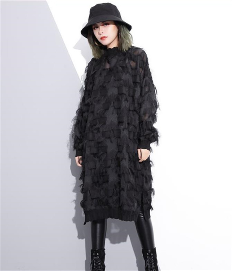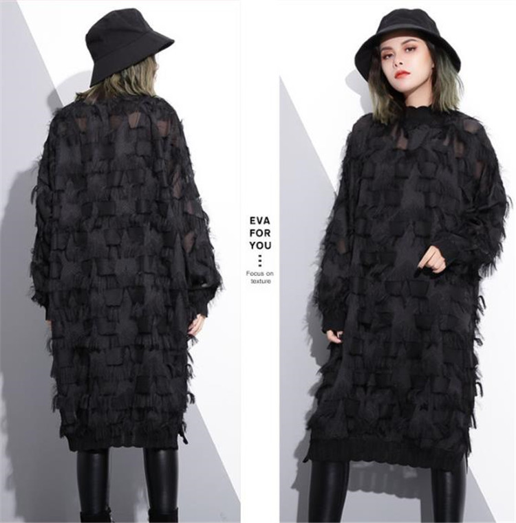 春秋シーズンに最適な長袖デザインで、レース素材が女性らしさを演出します。