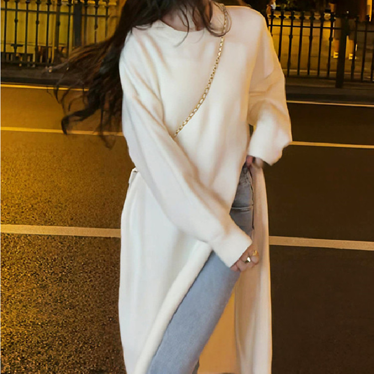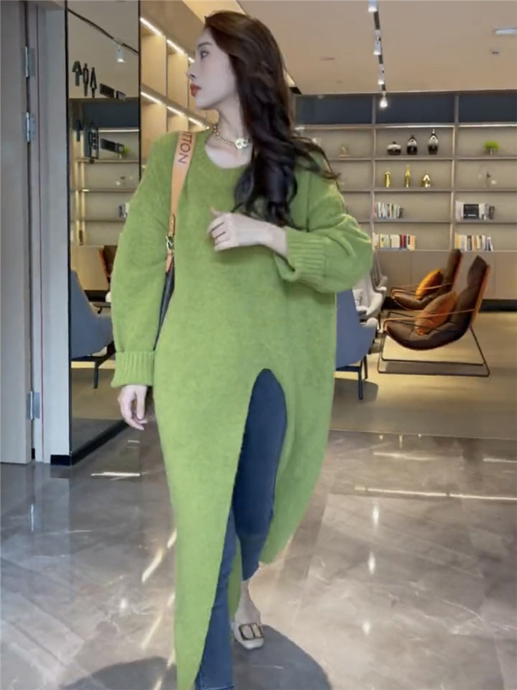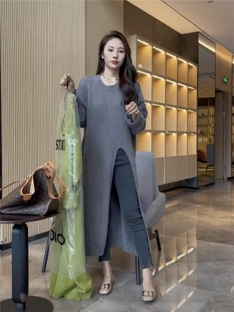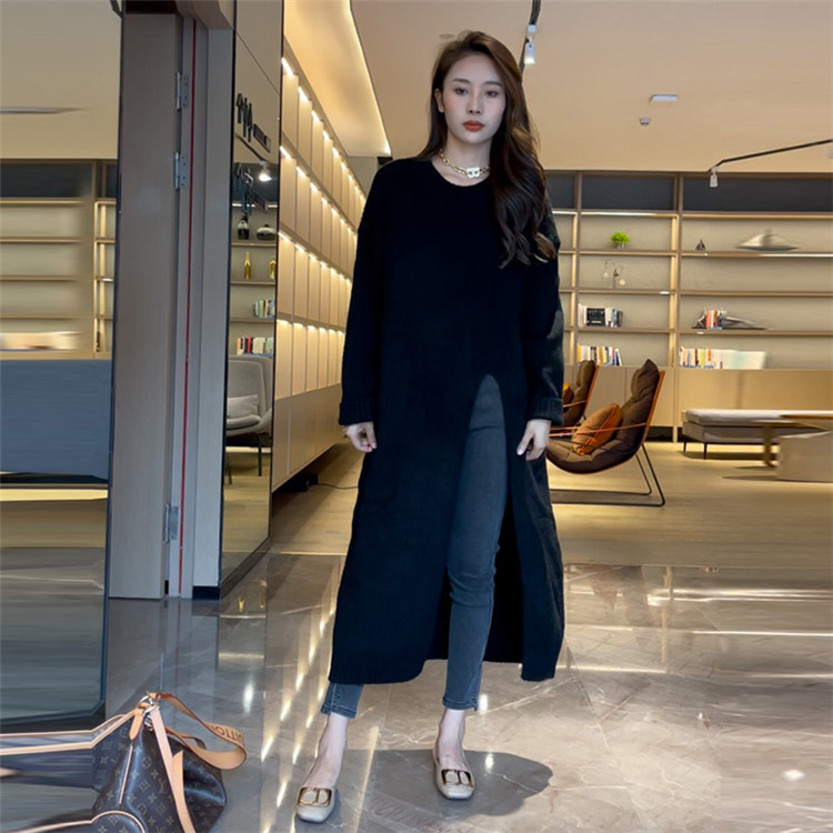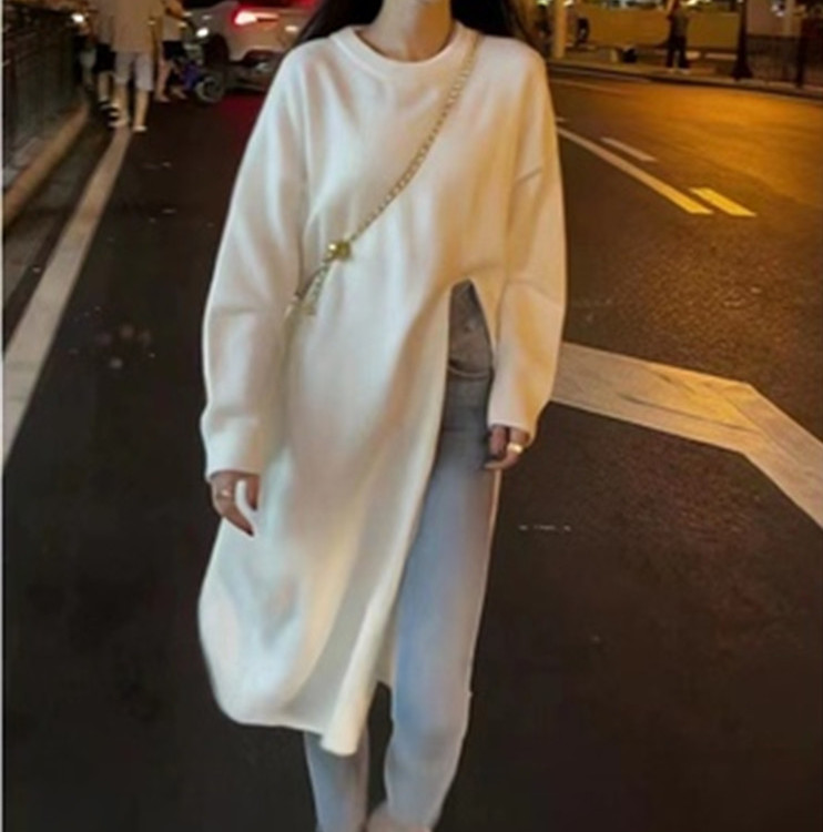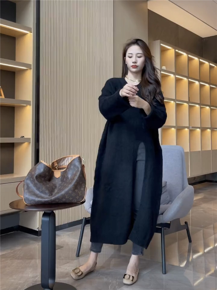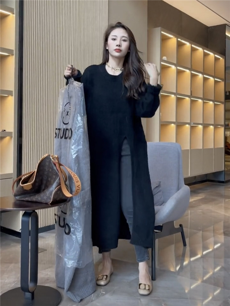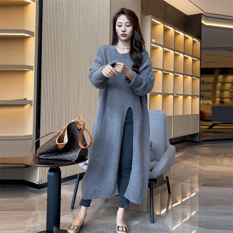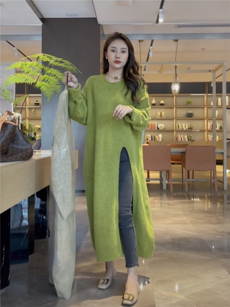 レトロなデザインが魅力的なニットロングワンピース。 ゆったりとした着心地で、リラックス感のあるおしゃれスタイルを演出。 前面のスリット入りで動きやすく、上品な印象に。 素材:綿・ポリエステル混紡 カラー:緑・灰色・白・黒の4色展開