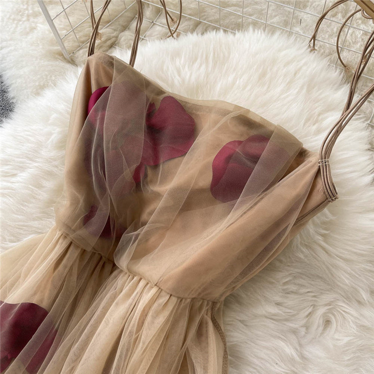 エレガントな花柄が印象的なキャミソールタイプのロングワンピースです。
