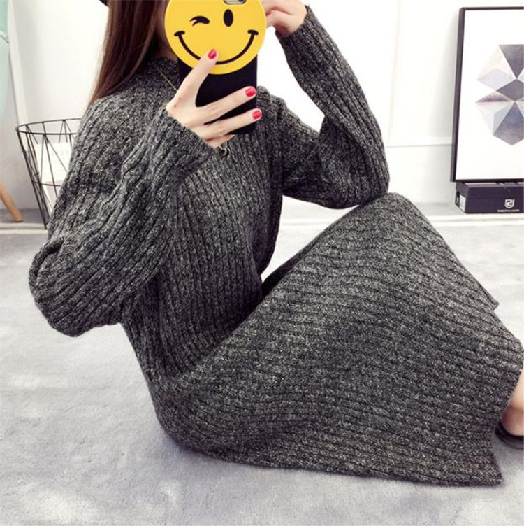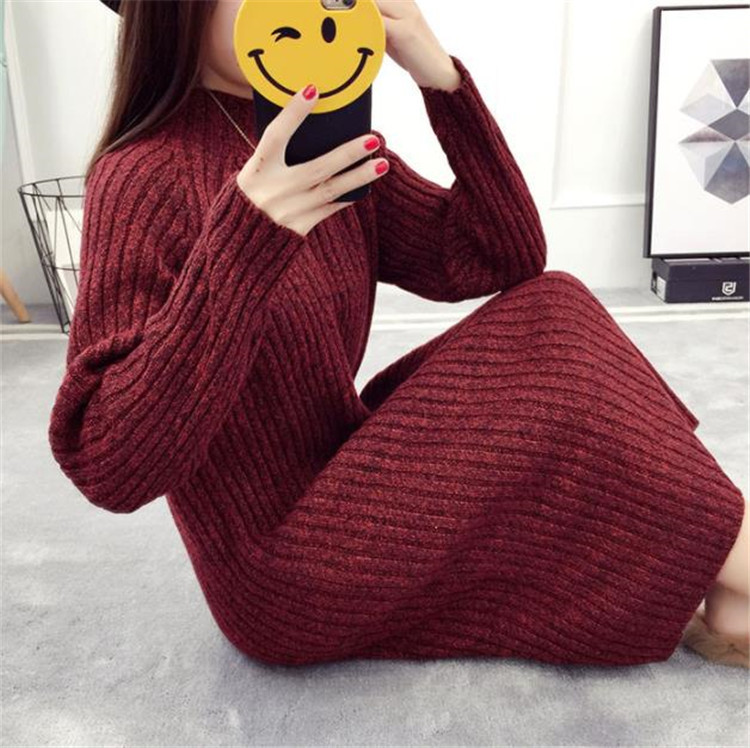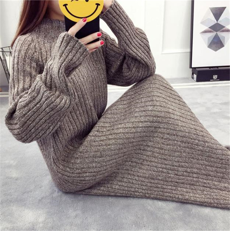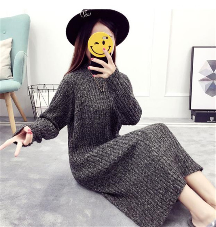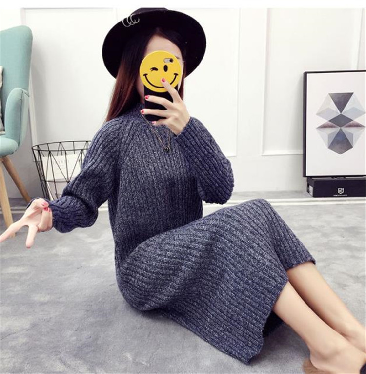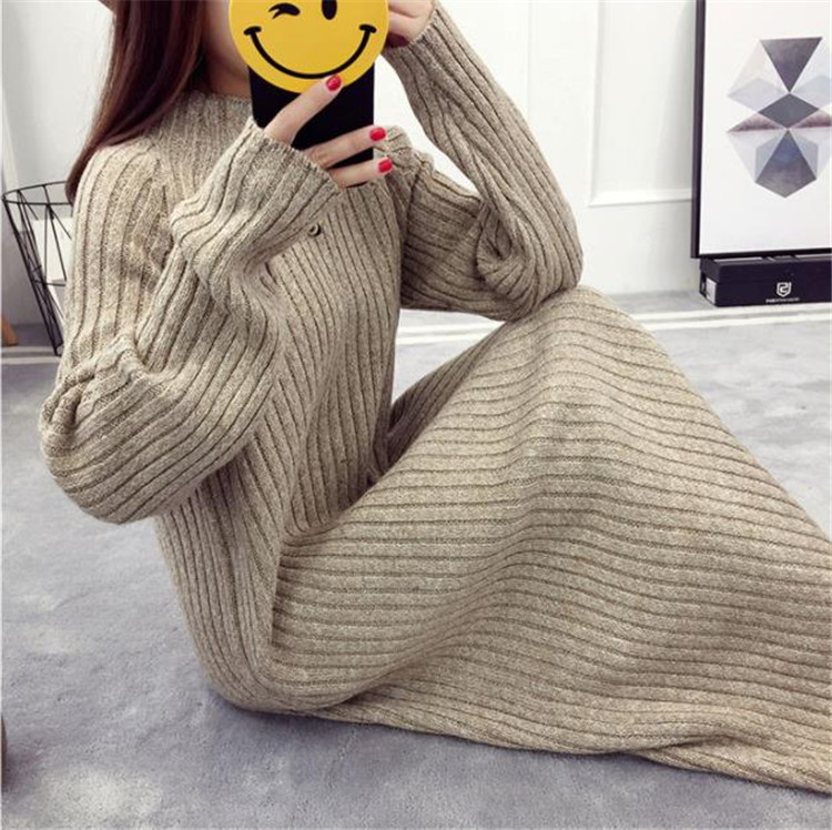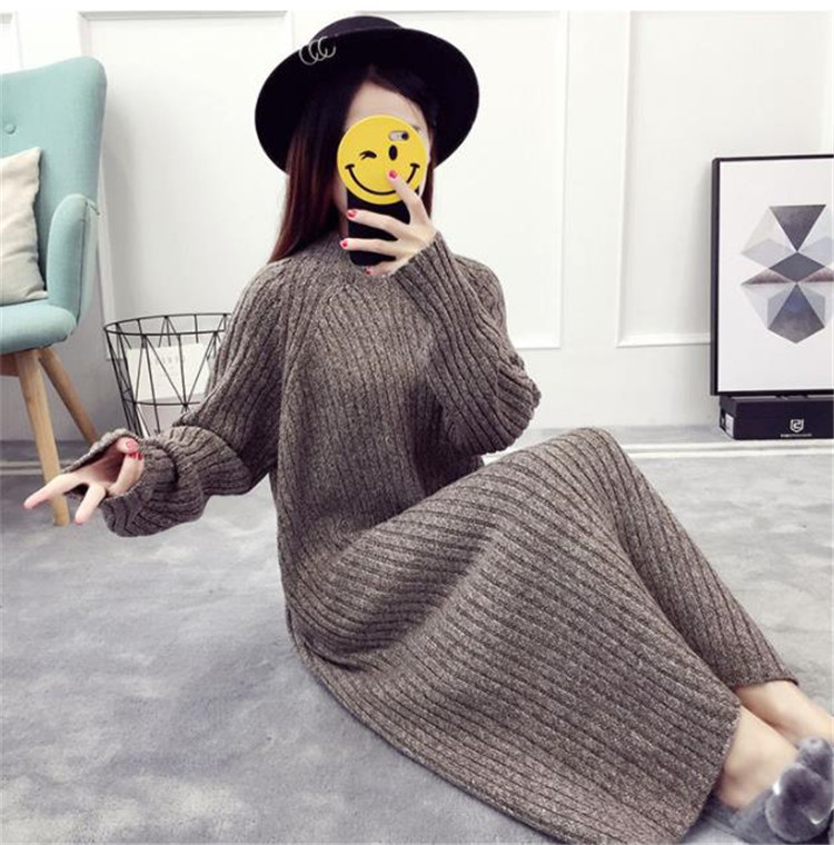 ゆったりとしたシルエットが魅力的な長袖ニットワンピースです。