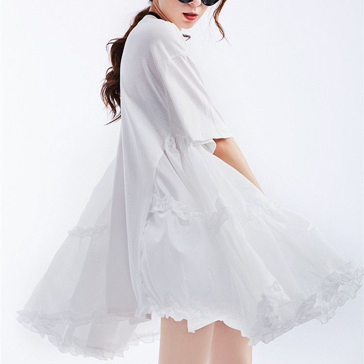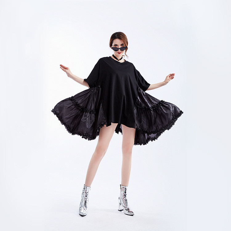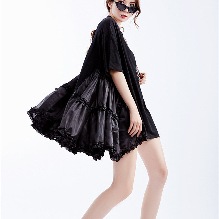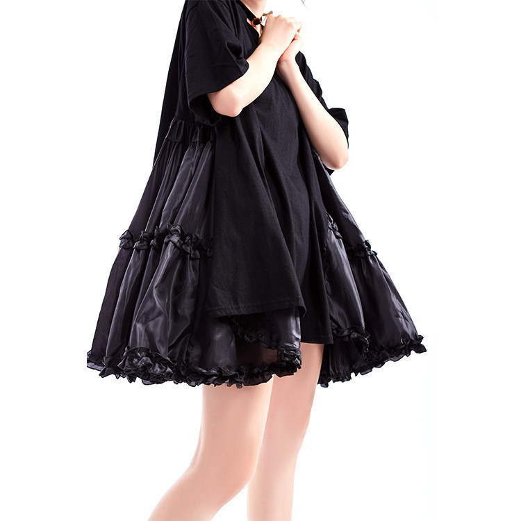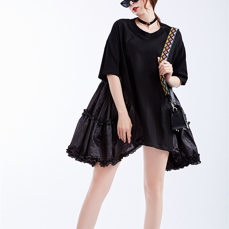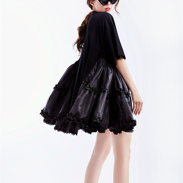 美しい花びらのようなフレアシルエットが魅力的な半袖ワンピース。