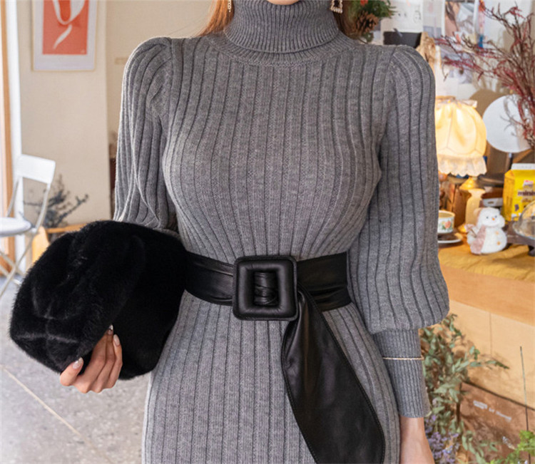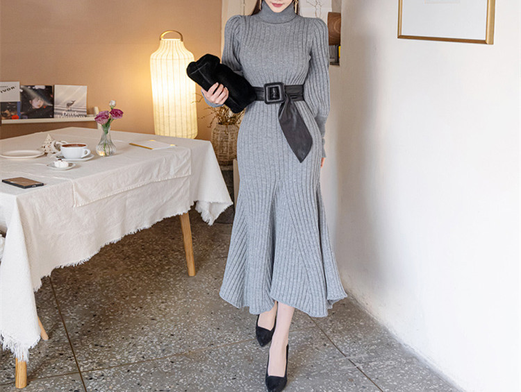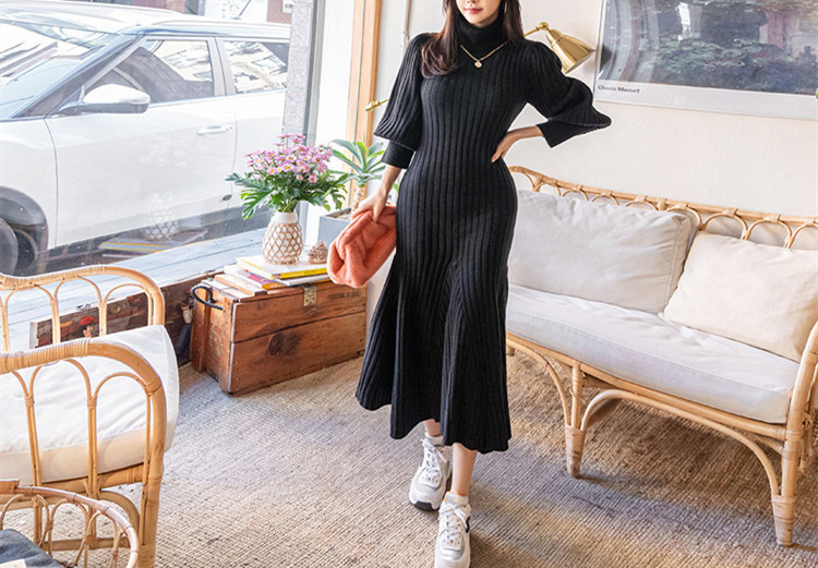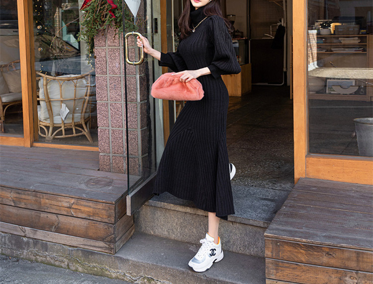 エレガントなタートルネックのロングワンピースです。