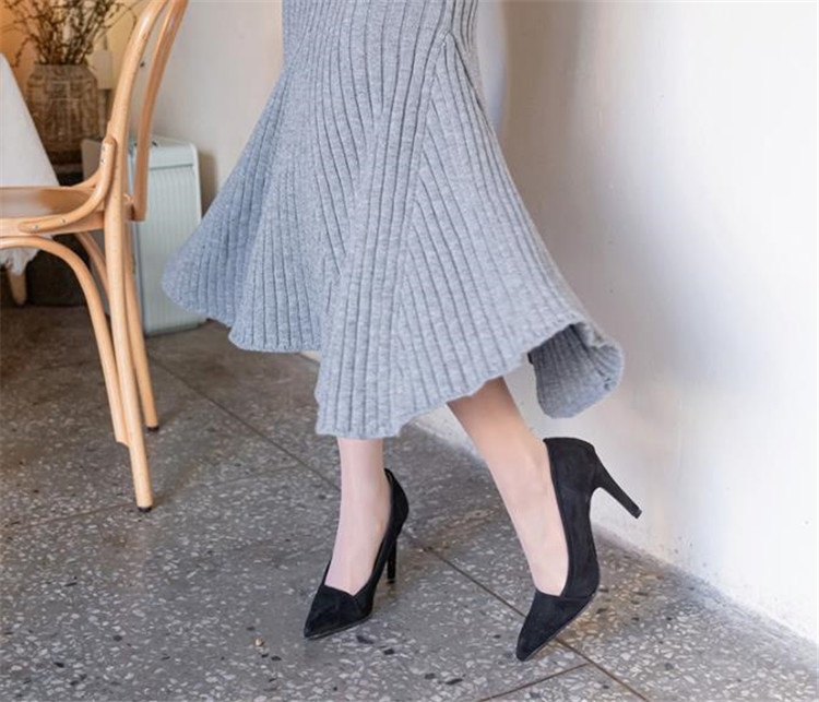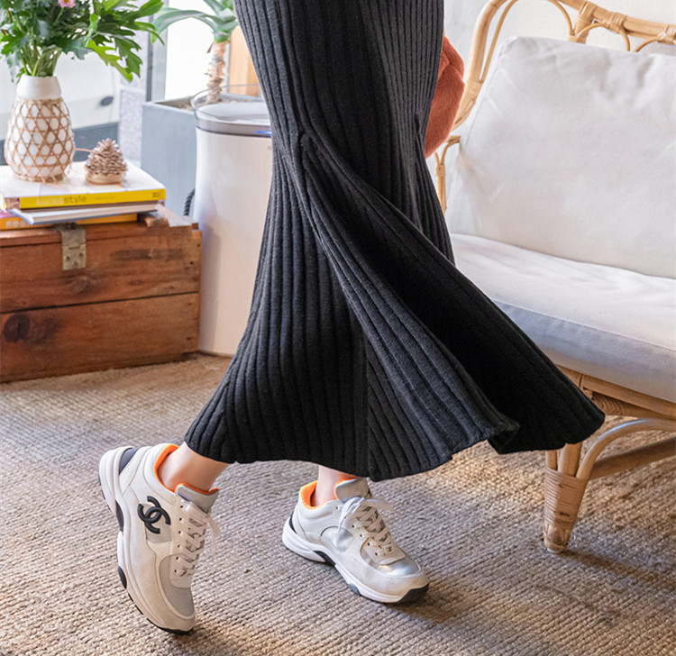 体のラインを美しく見せるリブ編みニット素材を使用。