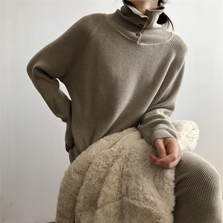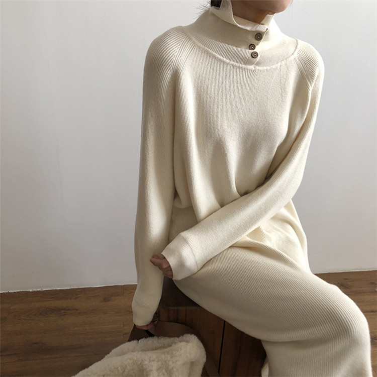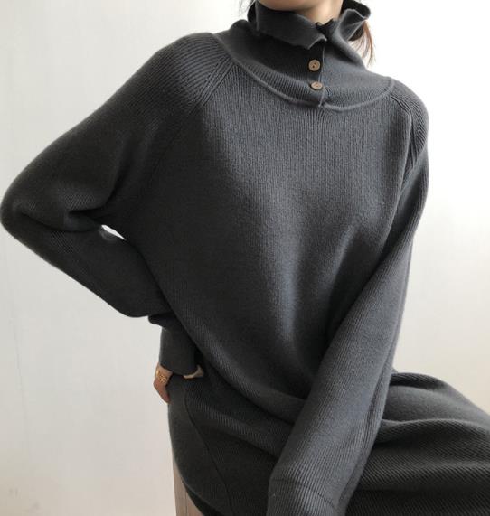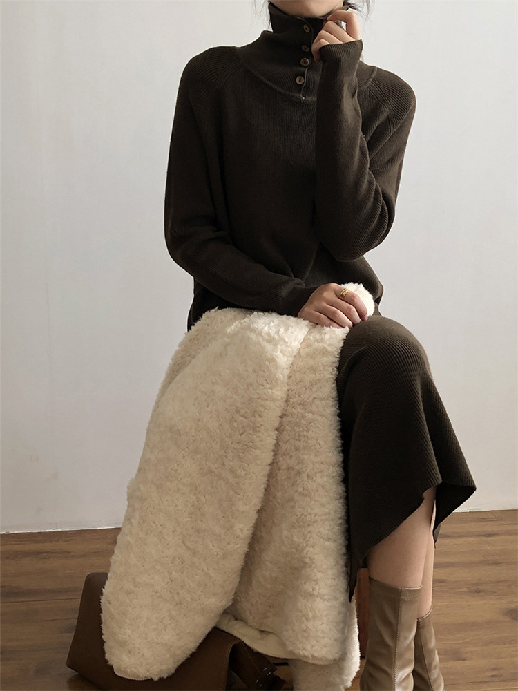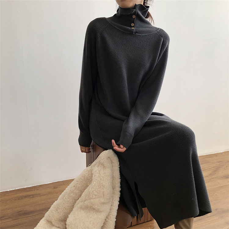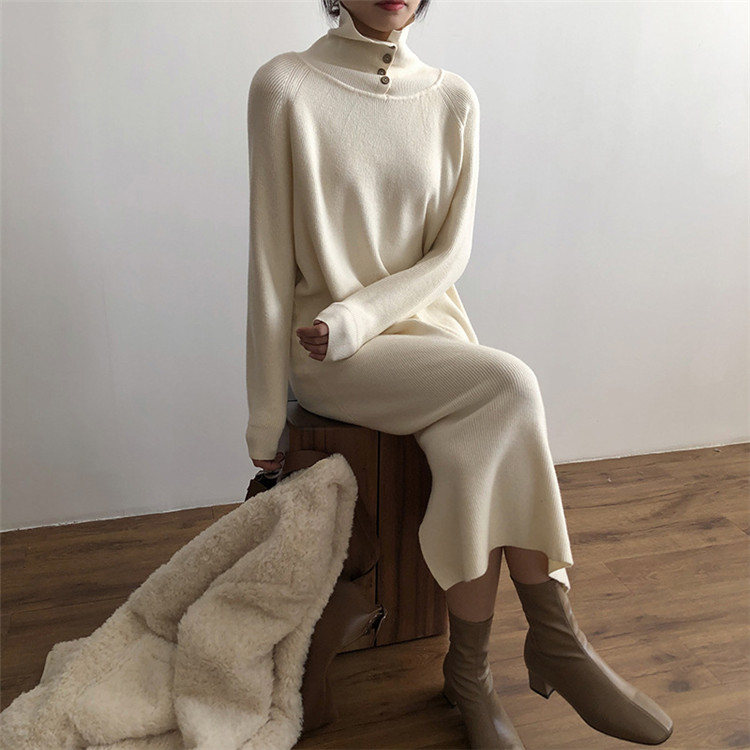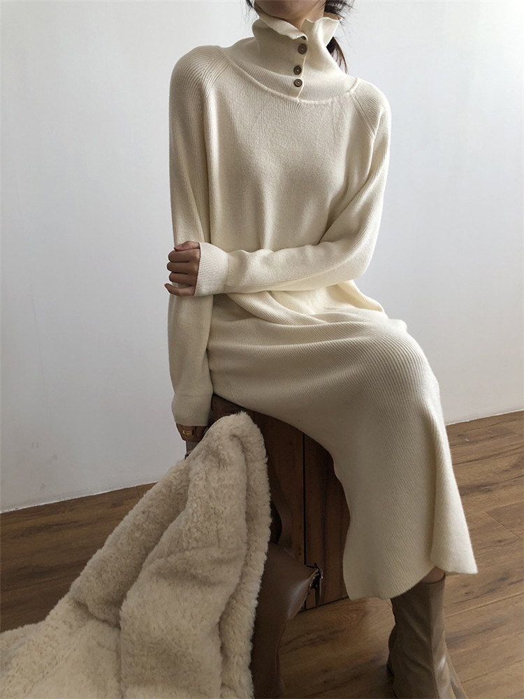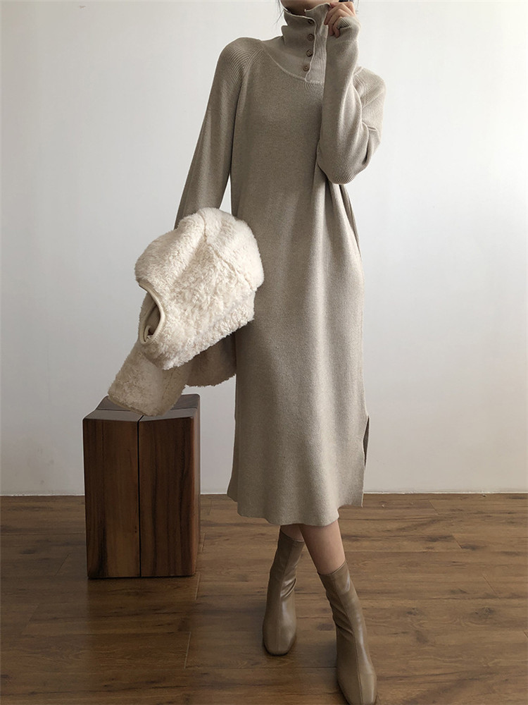 どんな着こなしにも合わせやすいタートルネックの厚手ニットワンピース。