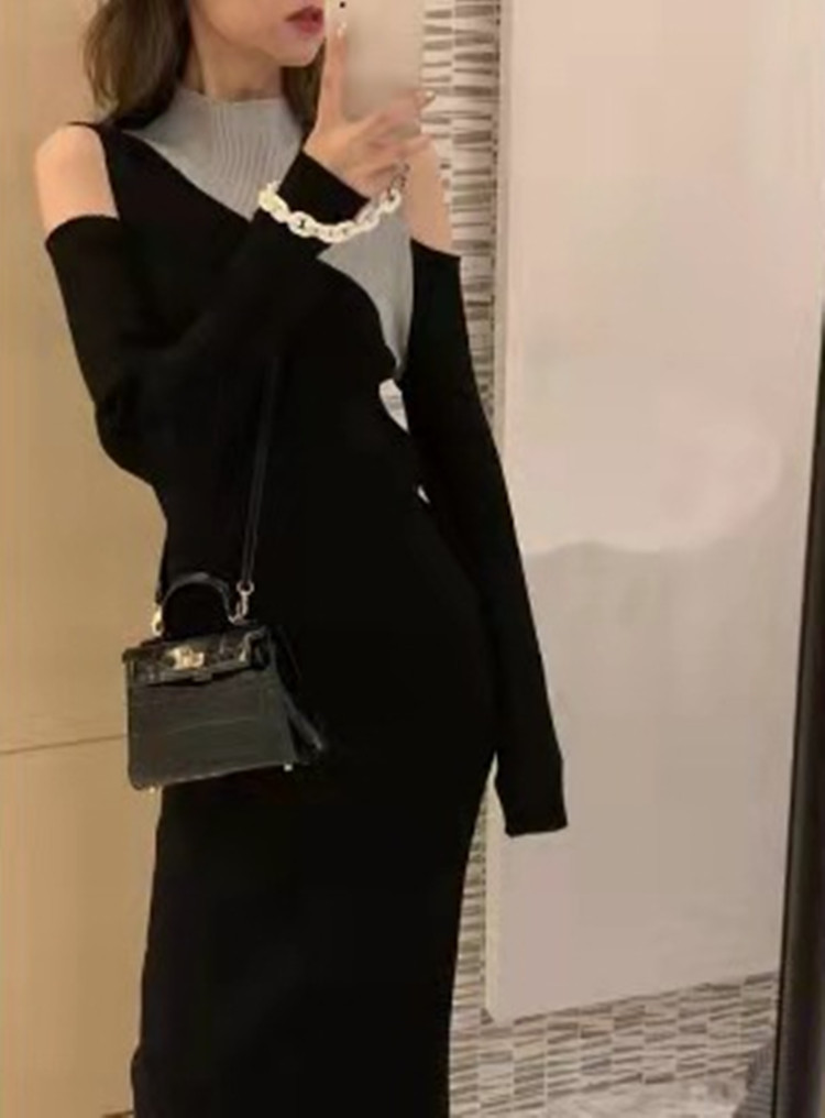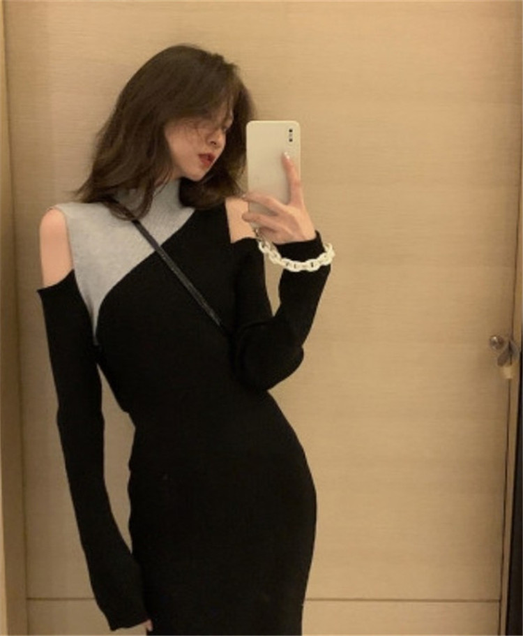 ブラックカラーで大人っぽく仕上げた一枚で決まるニットワンピース。