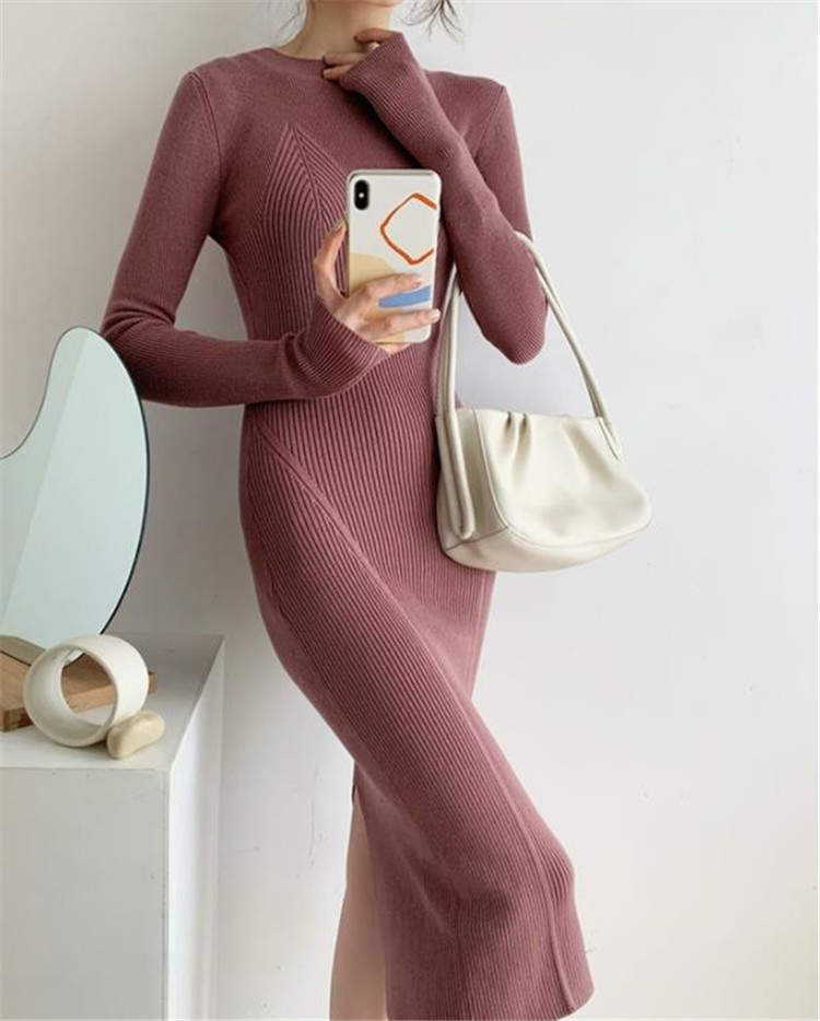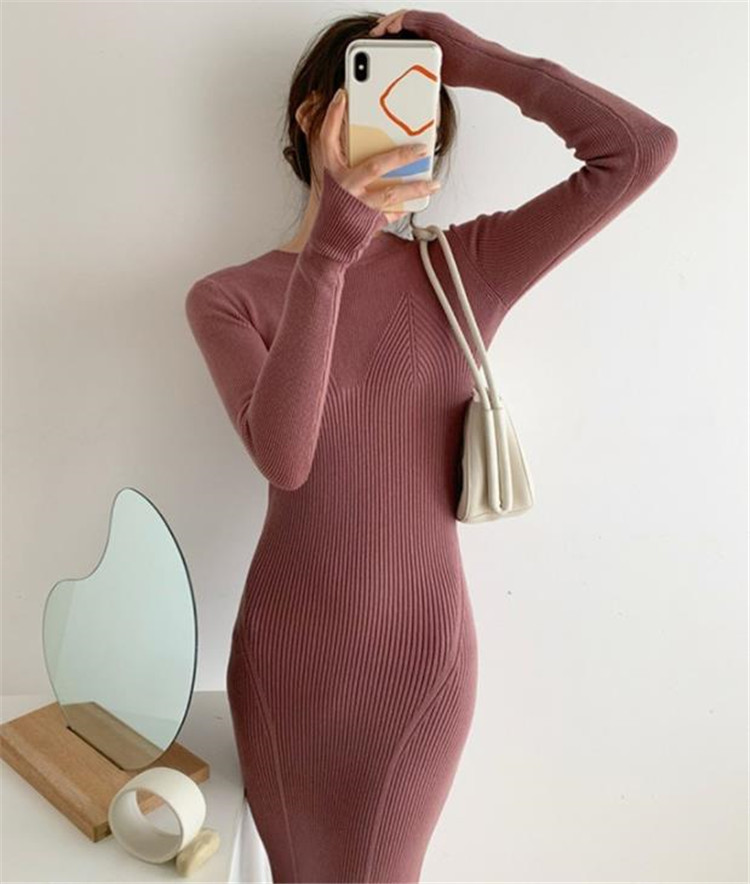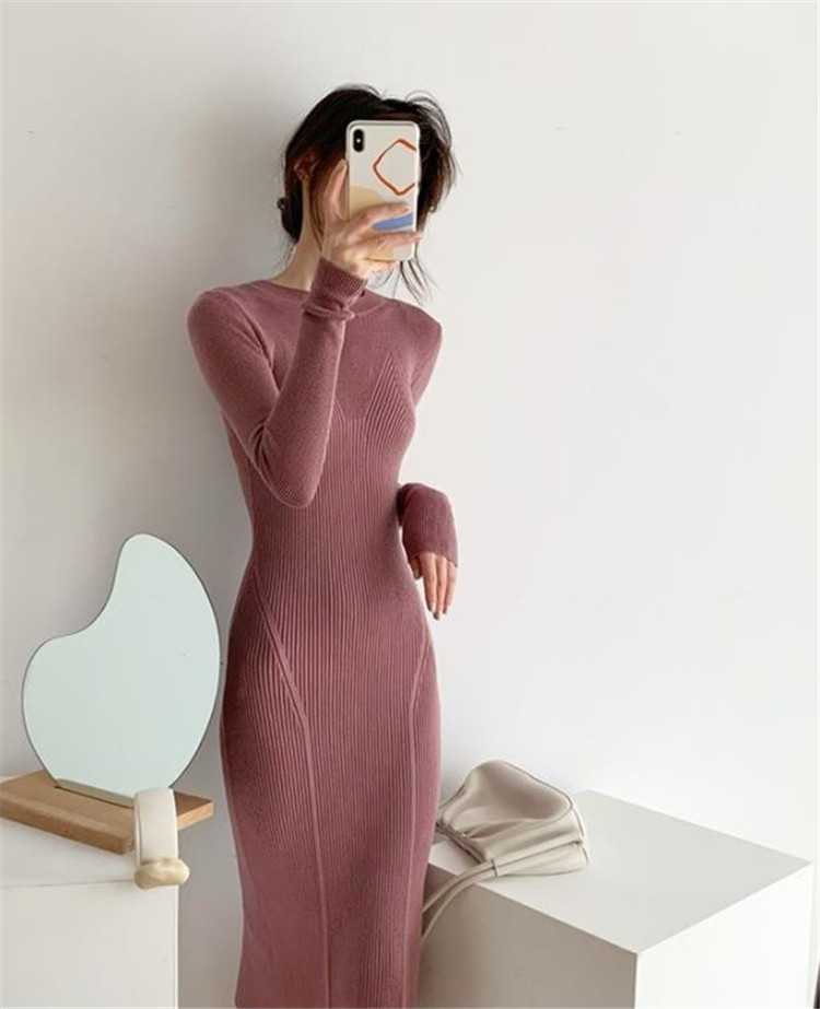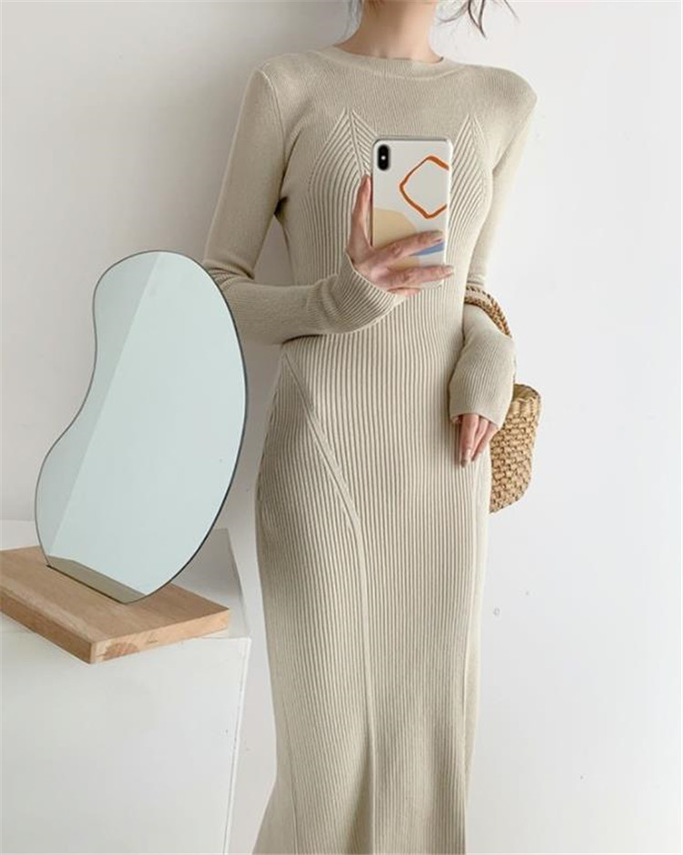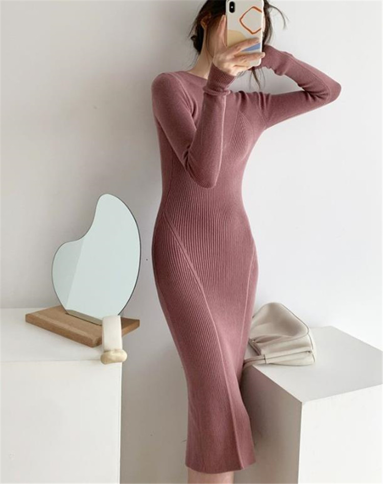 体のラインを美しく見せるタイトなシルエットのニットワンピースです。