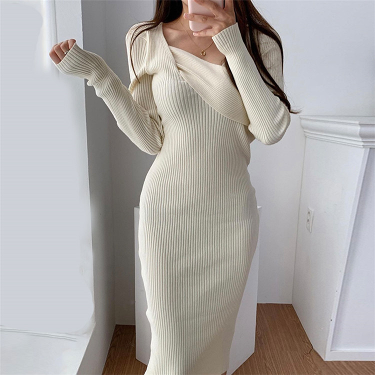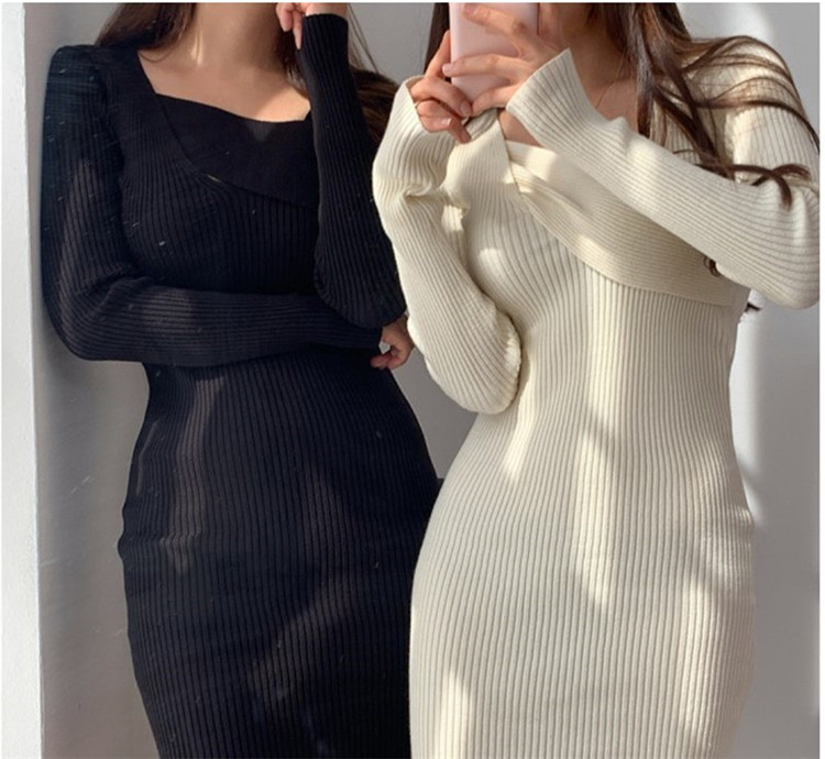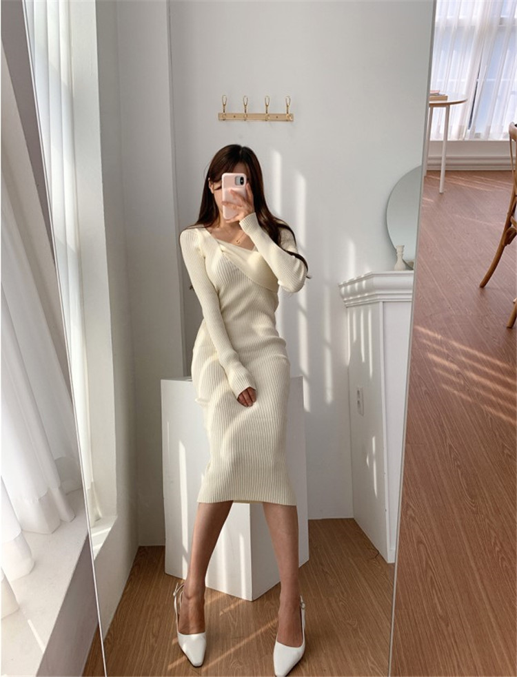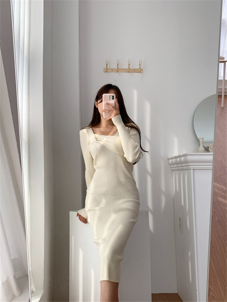 細身のシルエットが美しいニット素材のロングワンピースです。