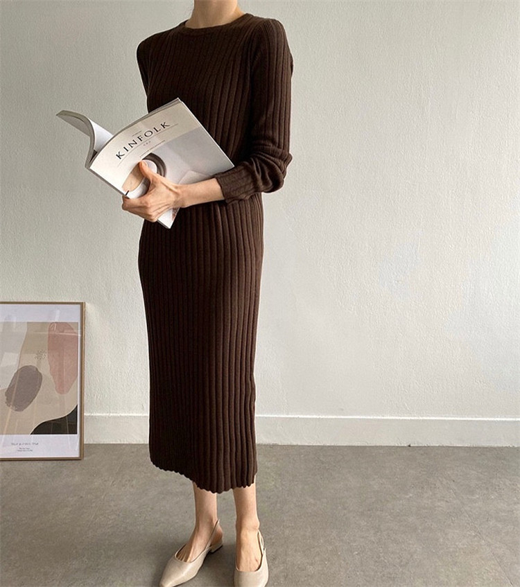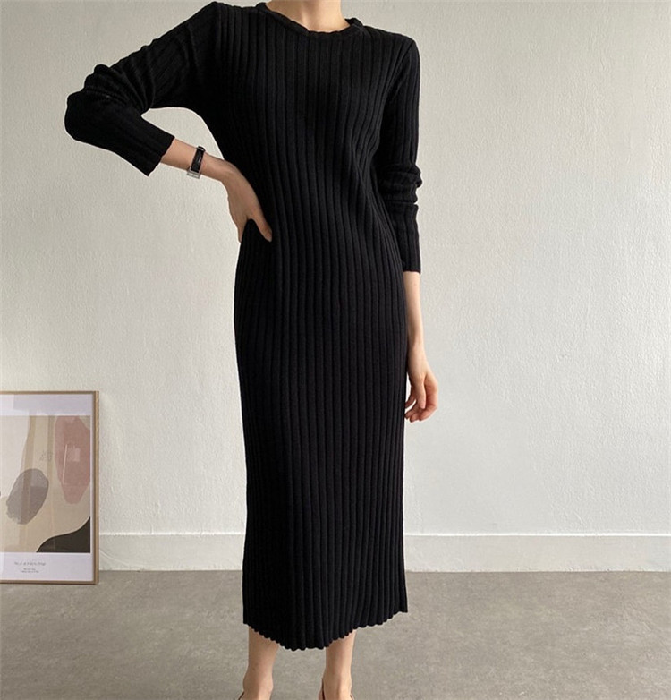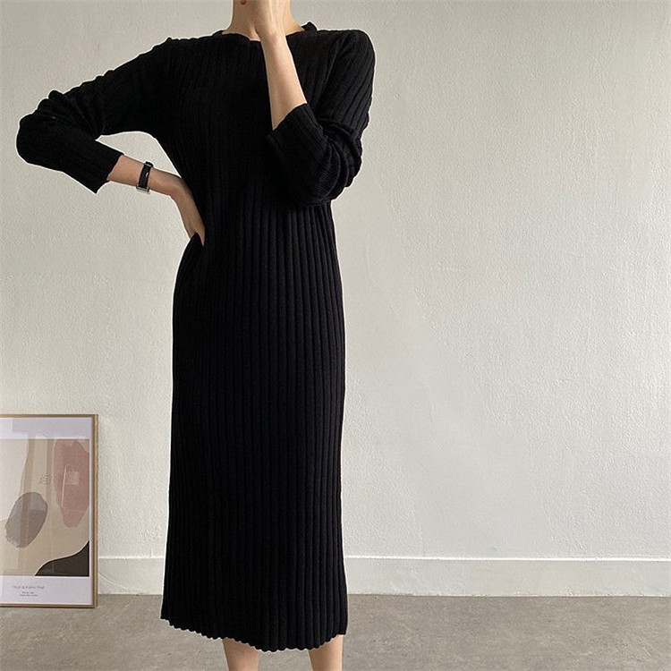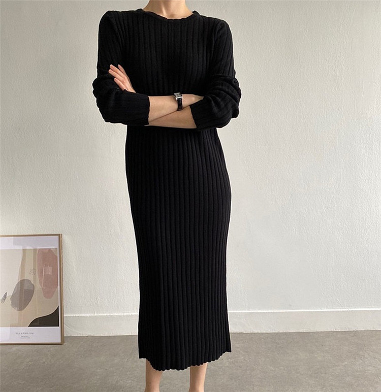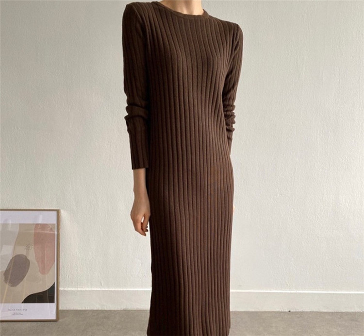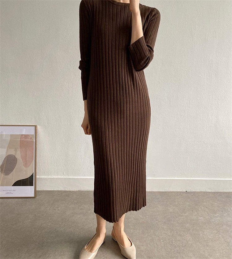 リラックス感のあるカジュアルなニットロングワンピース