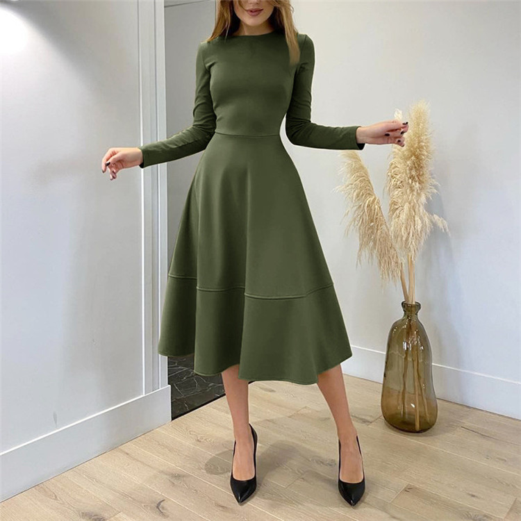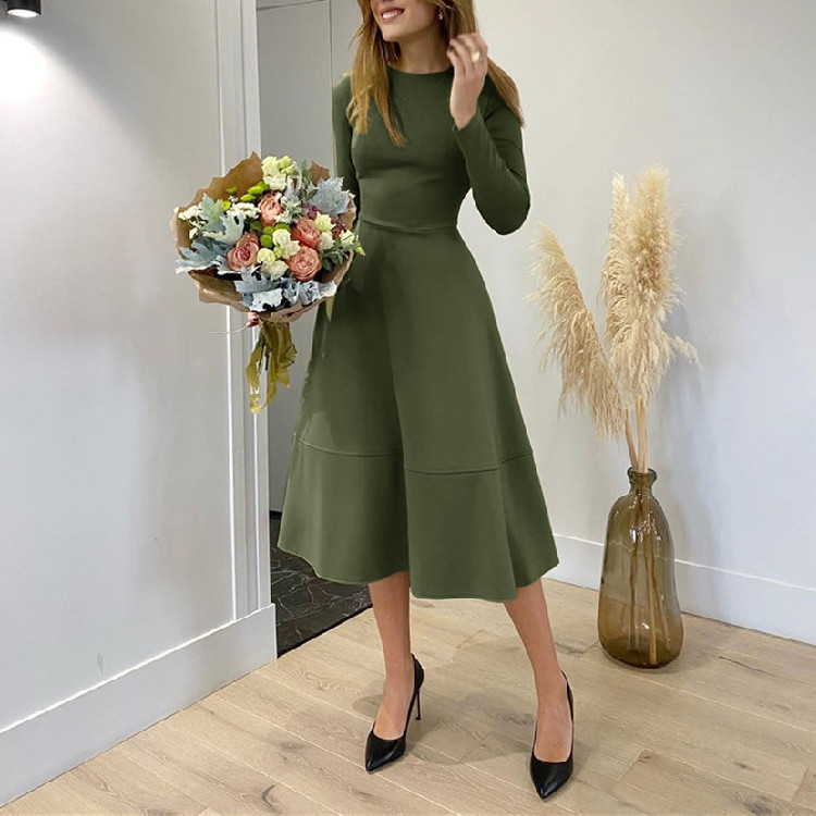 秋冬シーズンにぴったりなニット素材の長袖ロングワンピースです。