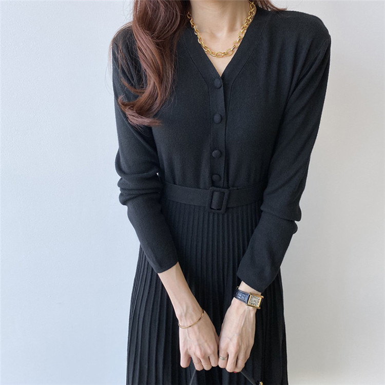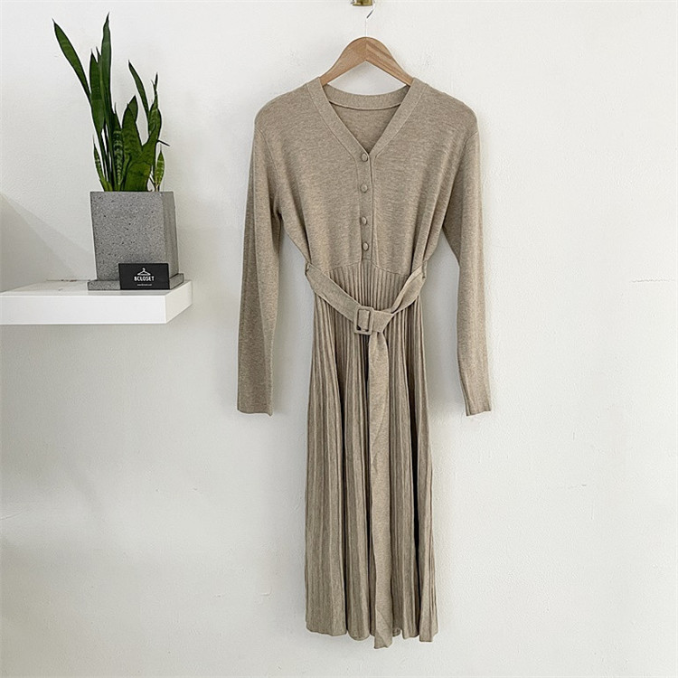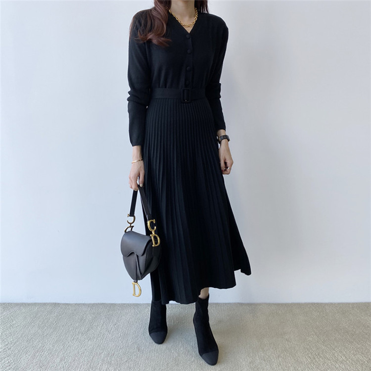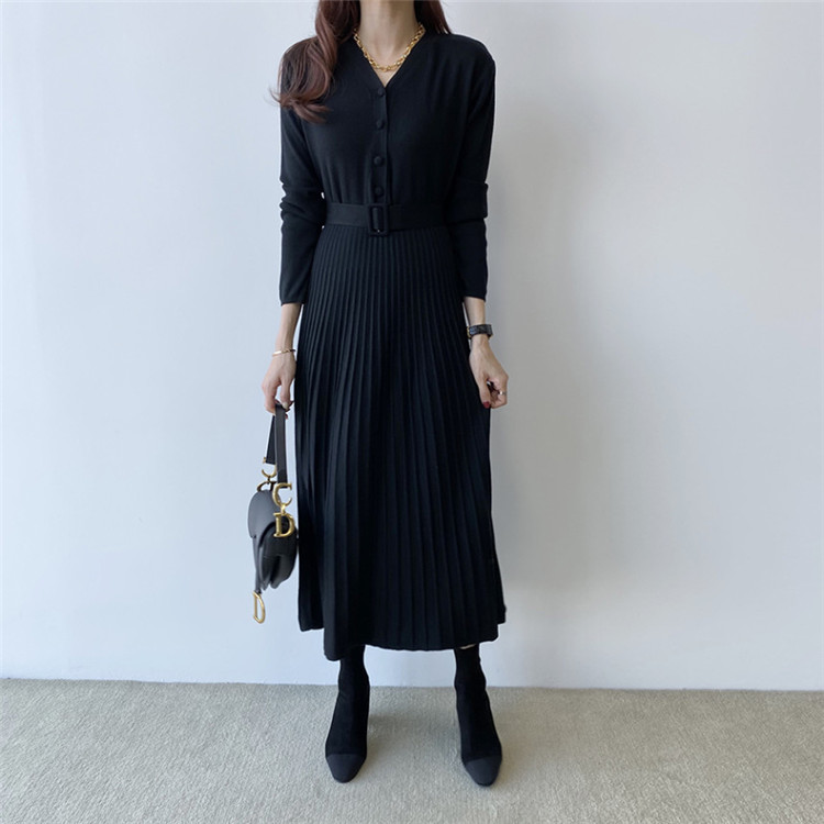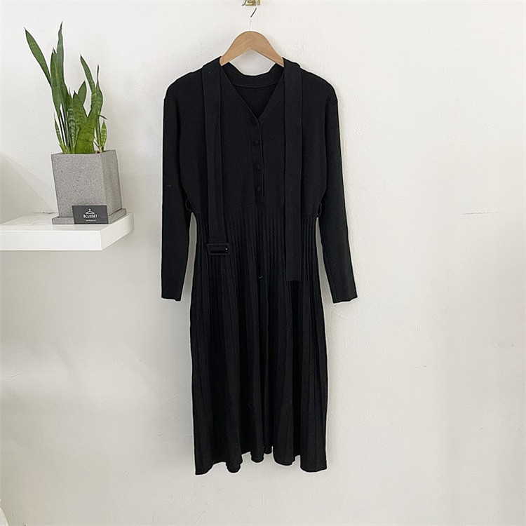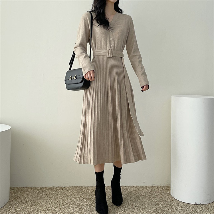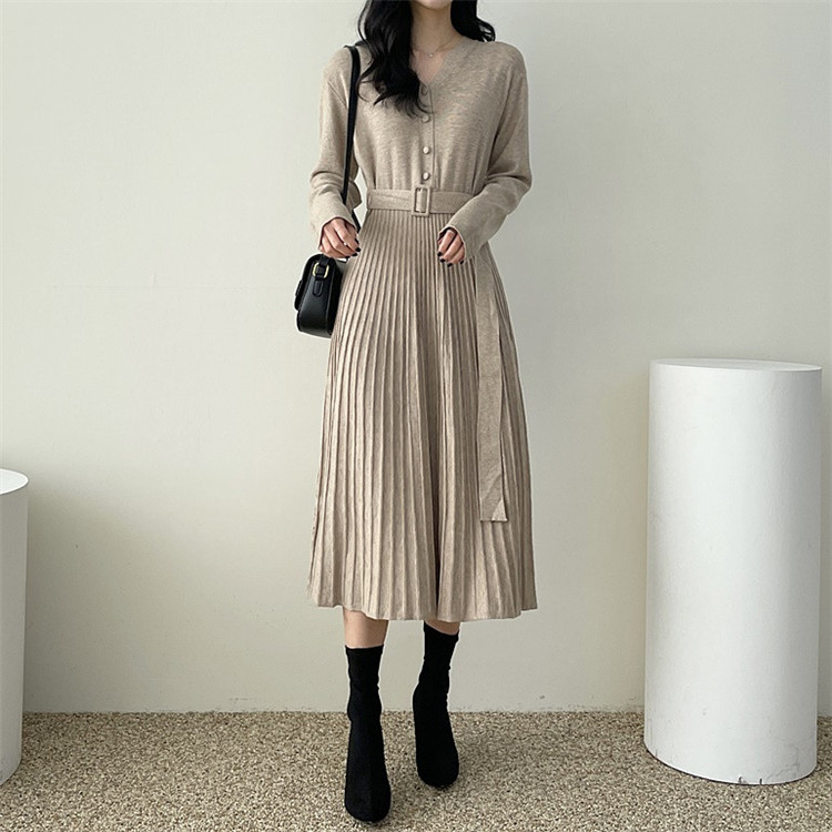 上品なプリーツデザインが魅力的な厚手ニット素材のロングワンピースです。