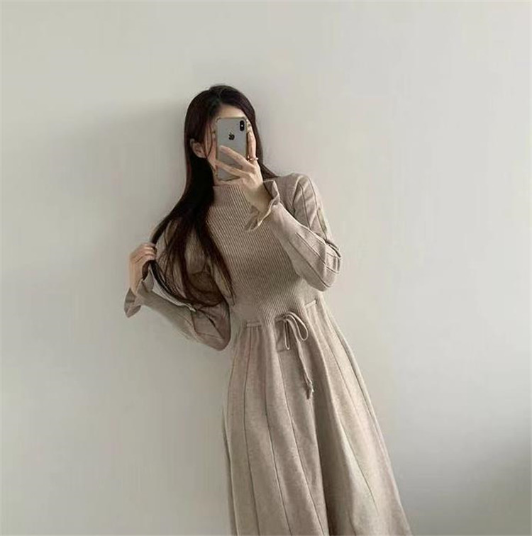きちんと感のある上品なデザインが魅力的なニットワンピースです。 若々しくも洗練されたスタイルで、普段使いにもぴったりな一枚。 ウエストリボンでスタイルアップが叶う、暖かな厚手素材を使用。 素材:アクリル カラー:黒、カーキ ロングワンピースコレクションの人気アイテムです。