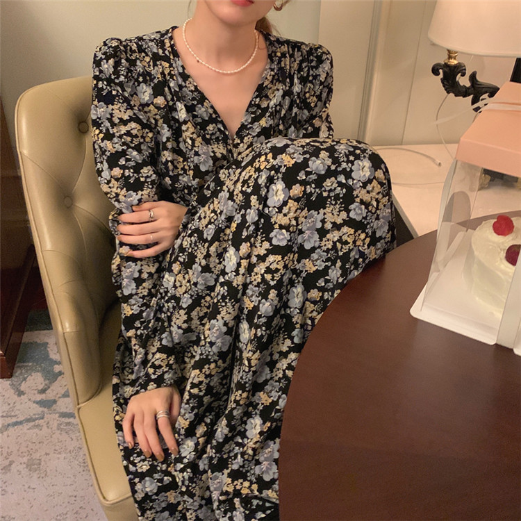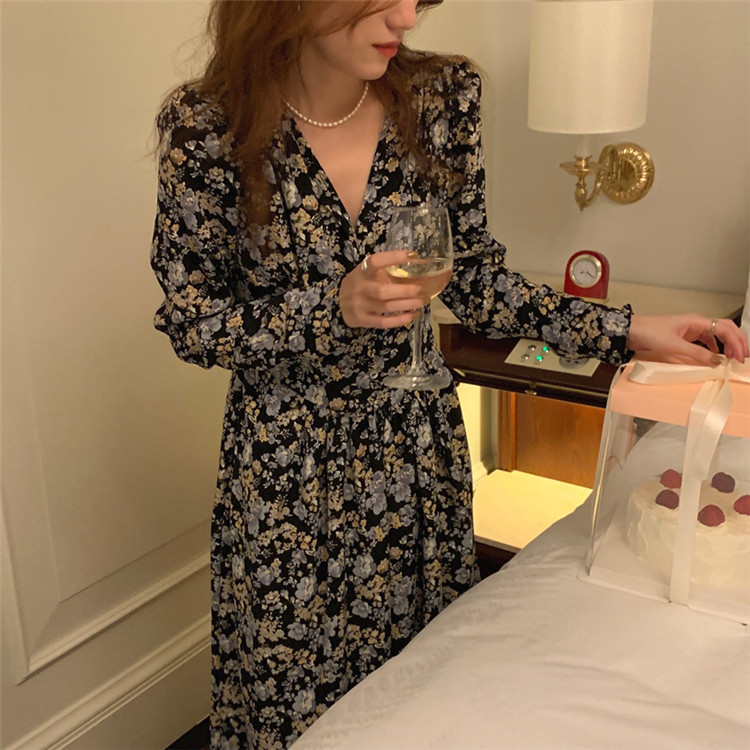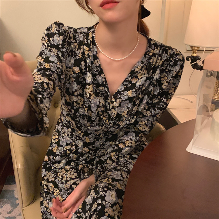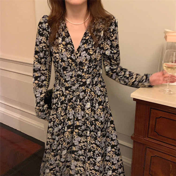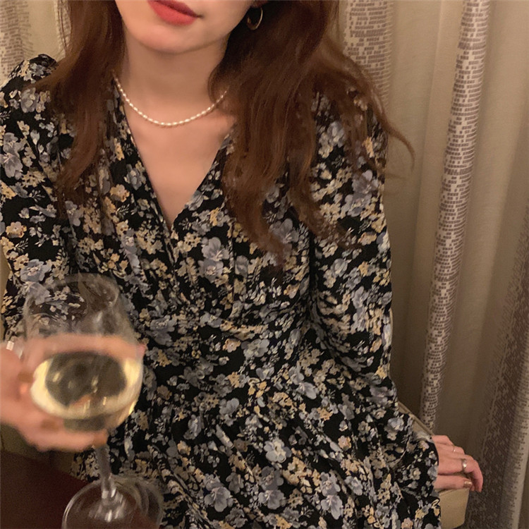 復古調の小花柄が上品で女性らしい印象を演出します。