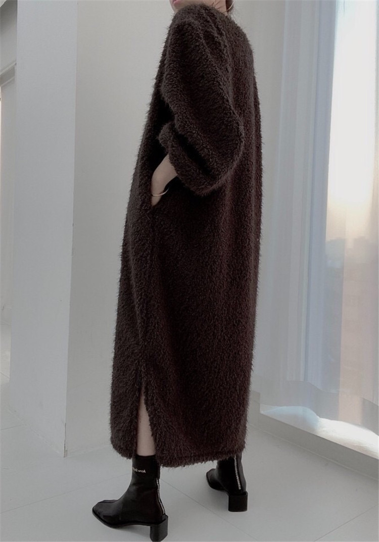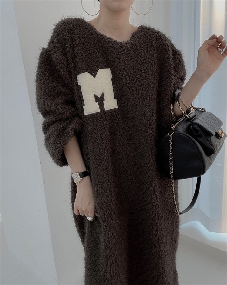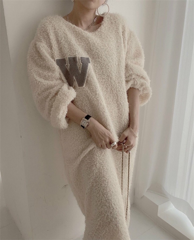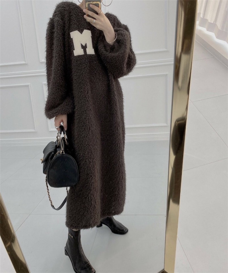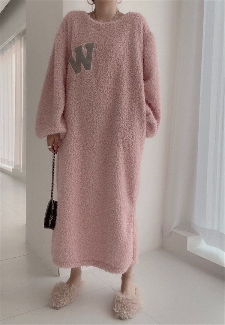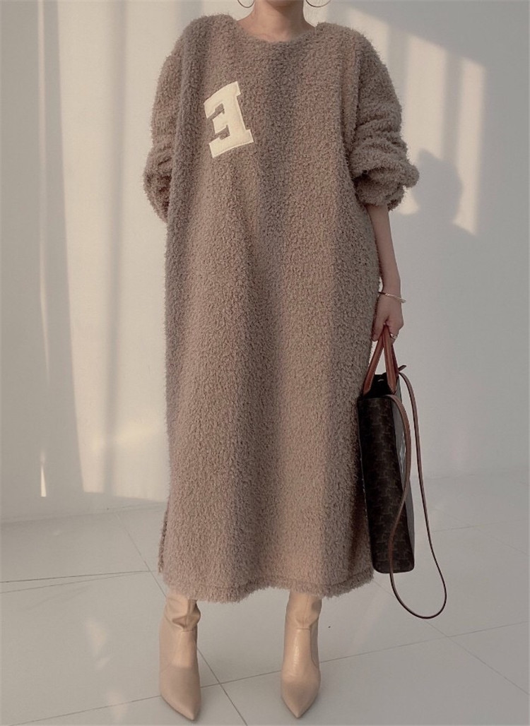 柔らかなふわもこ素材が心地よいゆったりシルエットのロングワンピース。