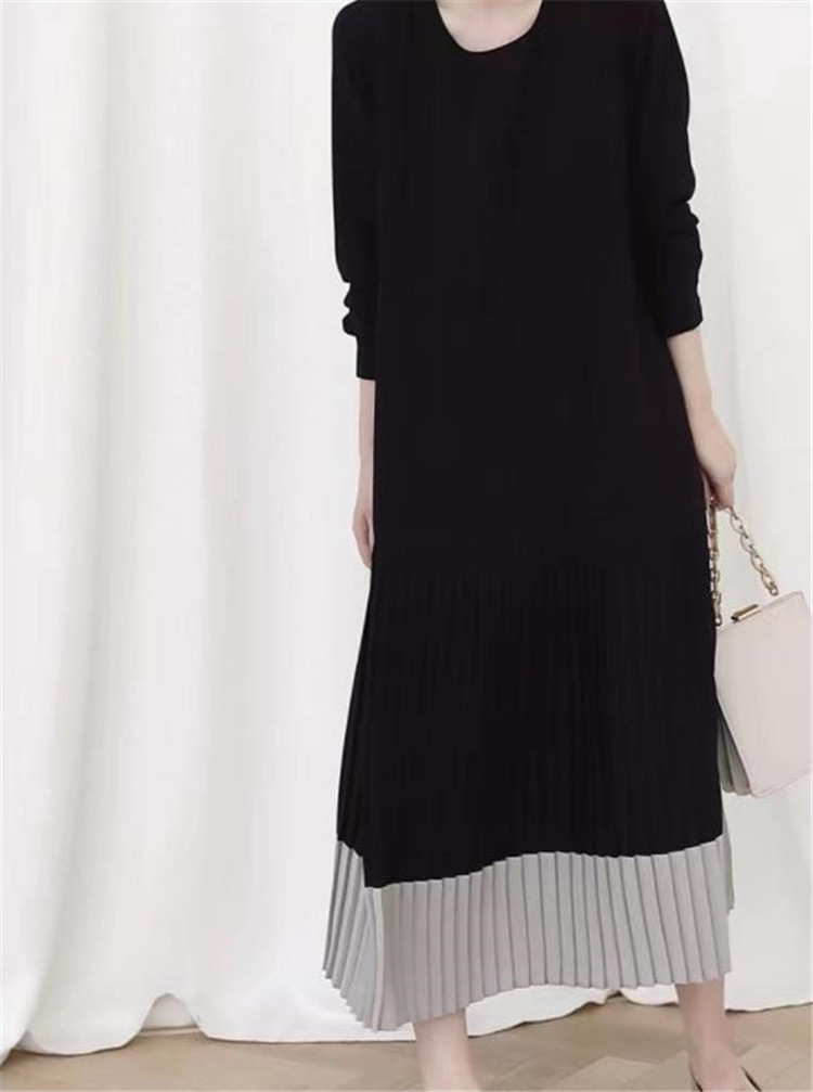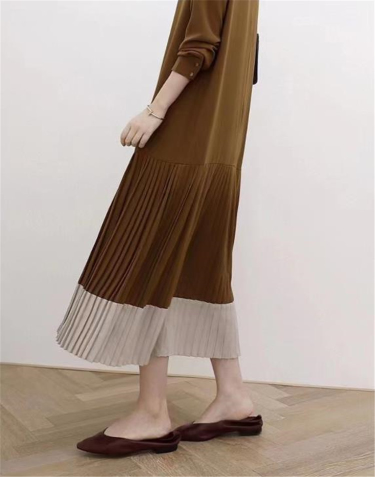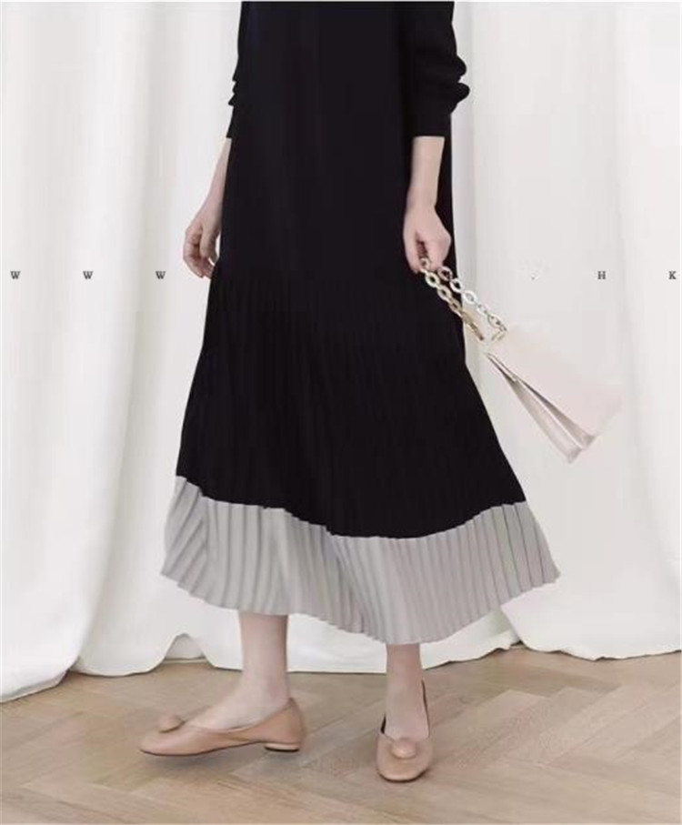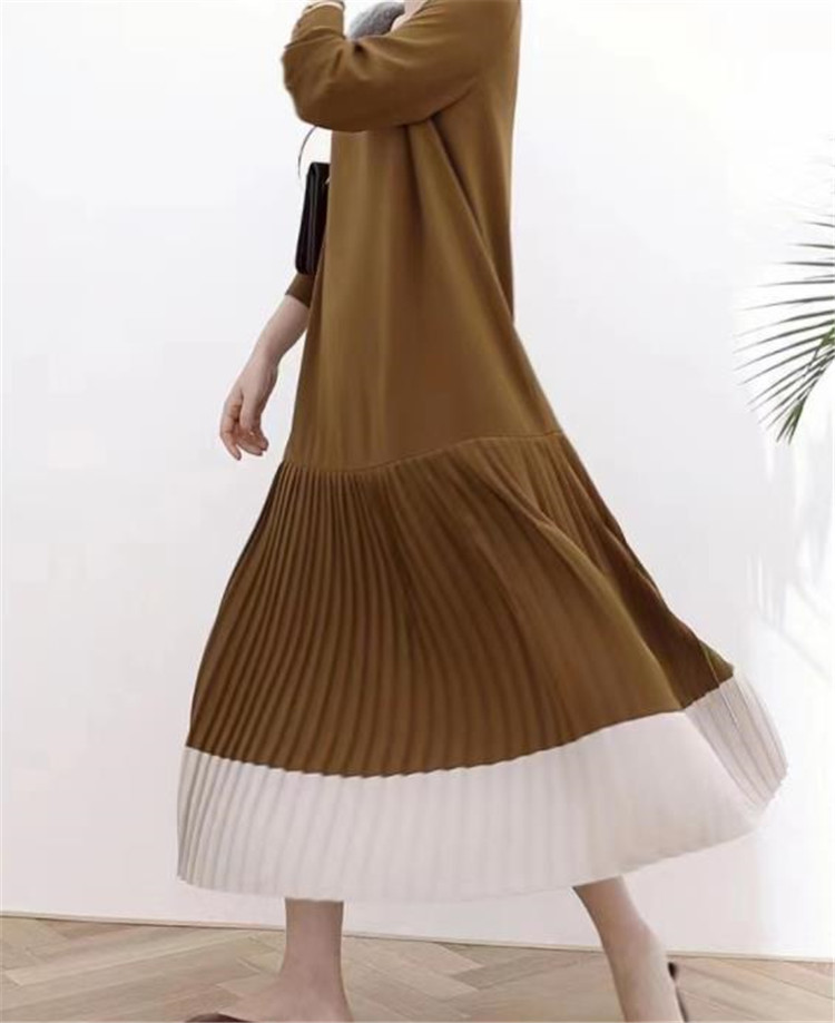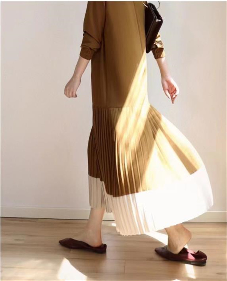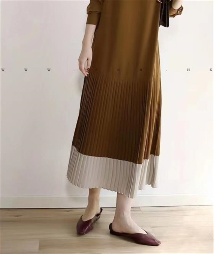 裾部分のプリーツ切替がエレガントなマキシ丈で、ゆったりとした着心地が魅力的です。