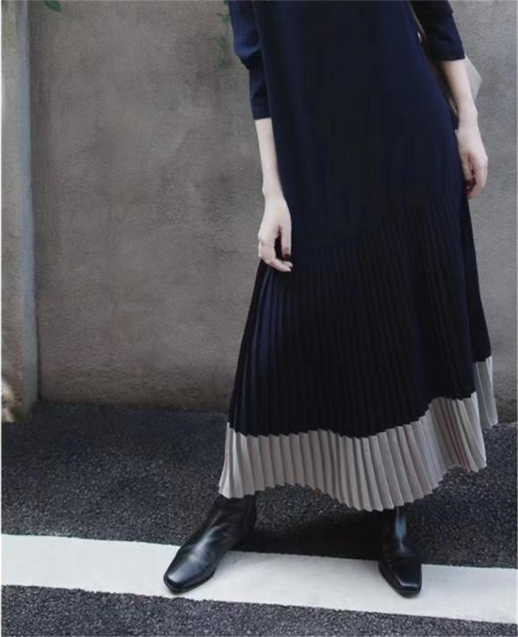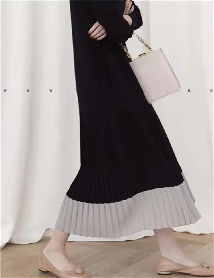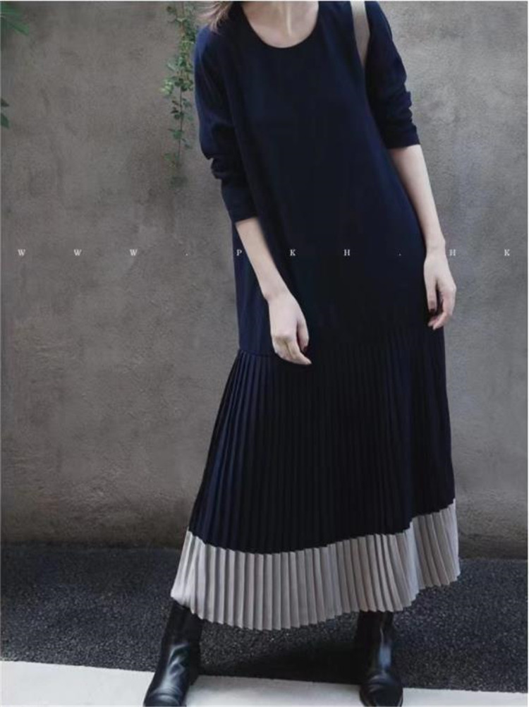 配色デザインが美しいロングワンピースです。 裾部分のプリーツ切替がエレガントなマキシ丈で、ゆったりとした着心地が魅力的です。