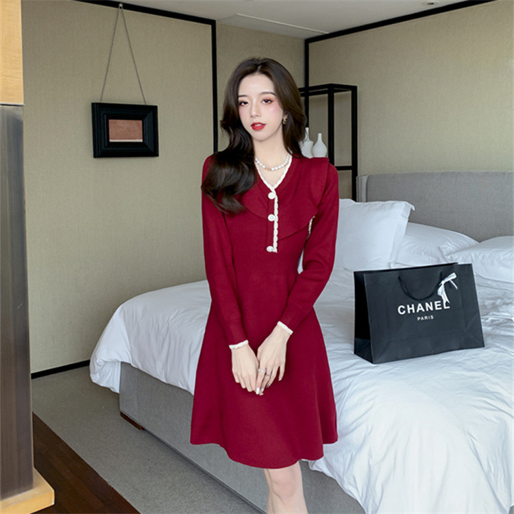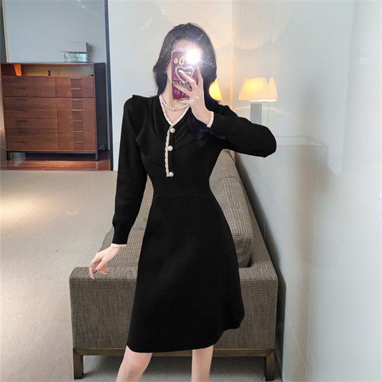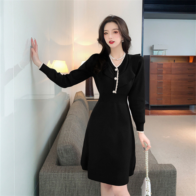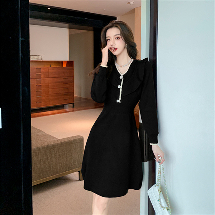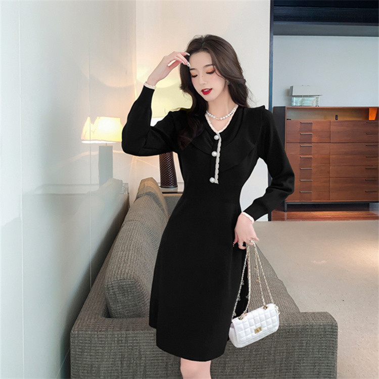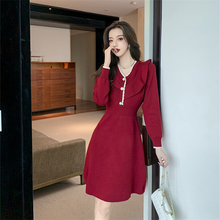 上品な襟付きデザインが魅力的なニット素材のロングワンピースです。