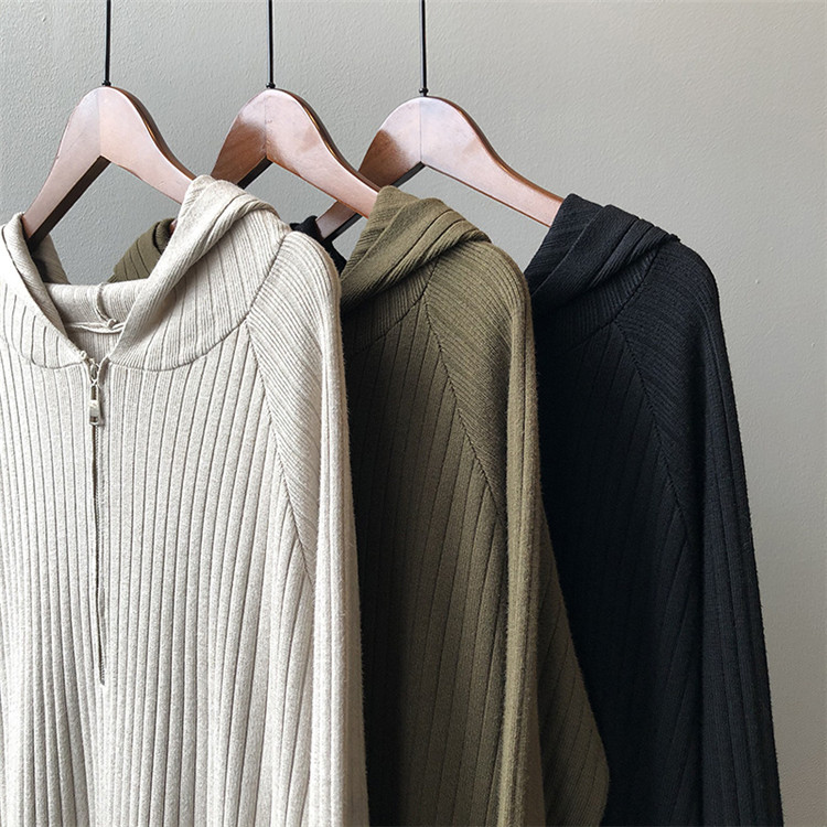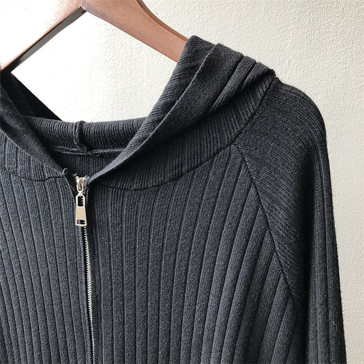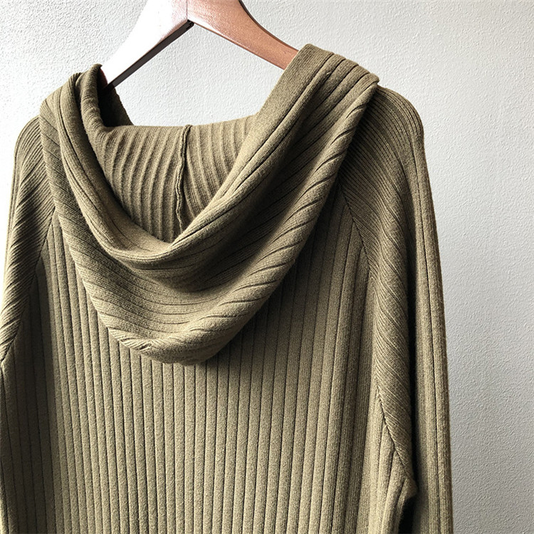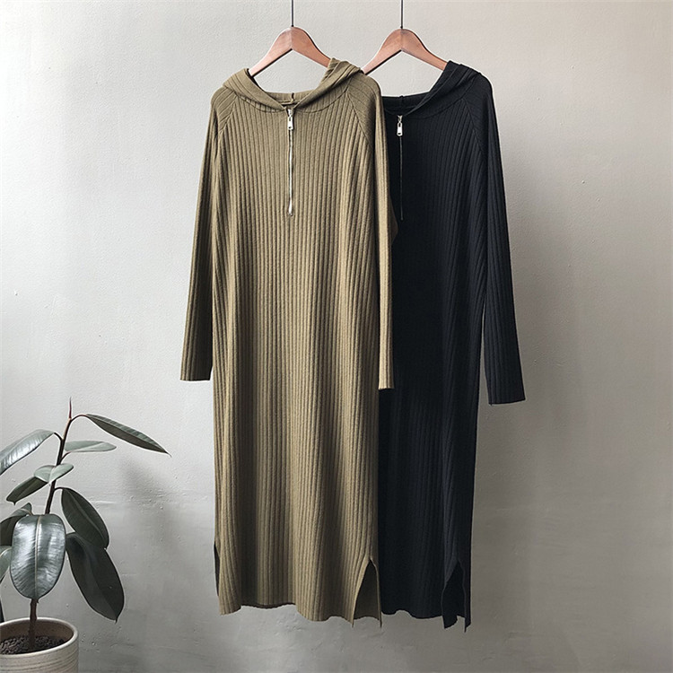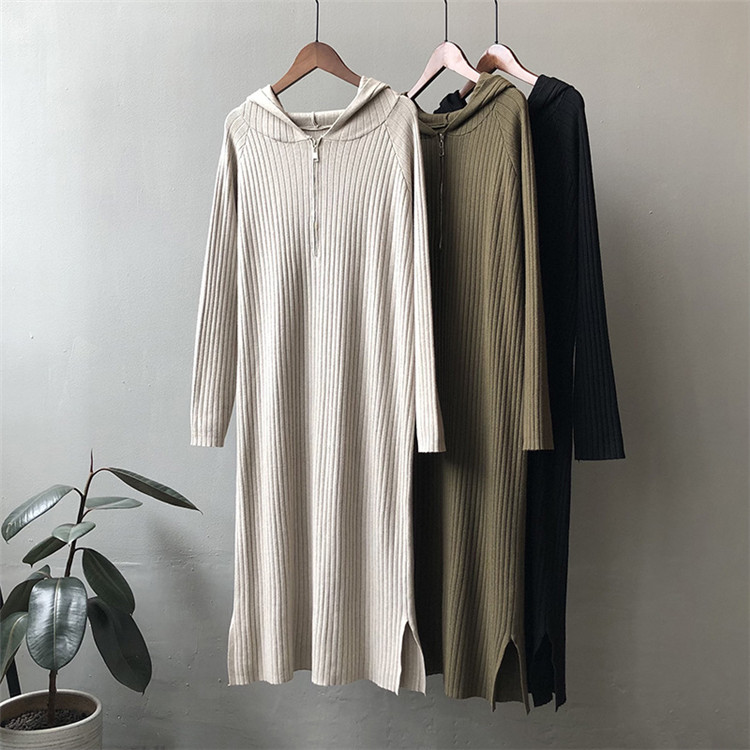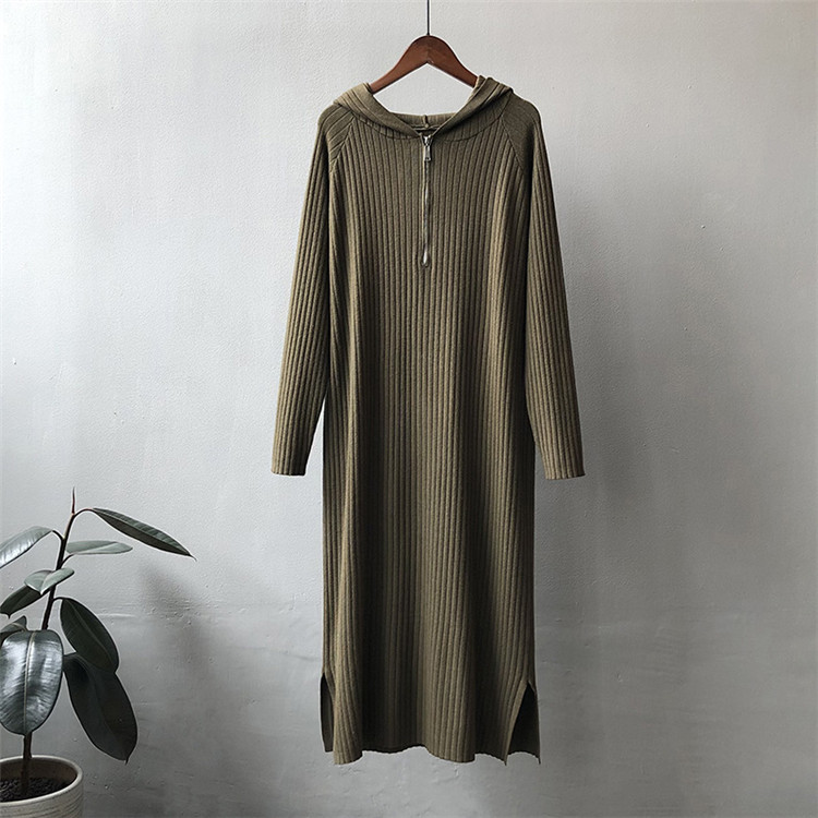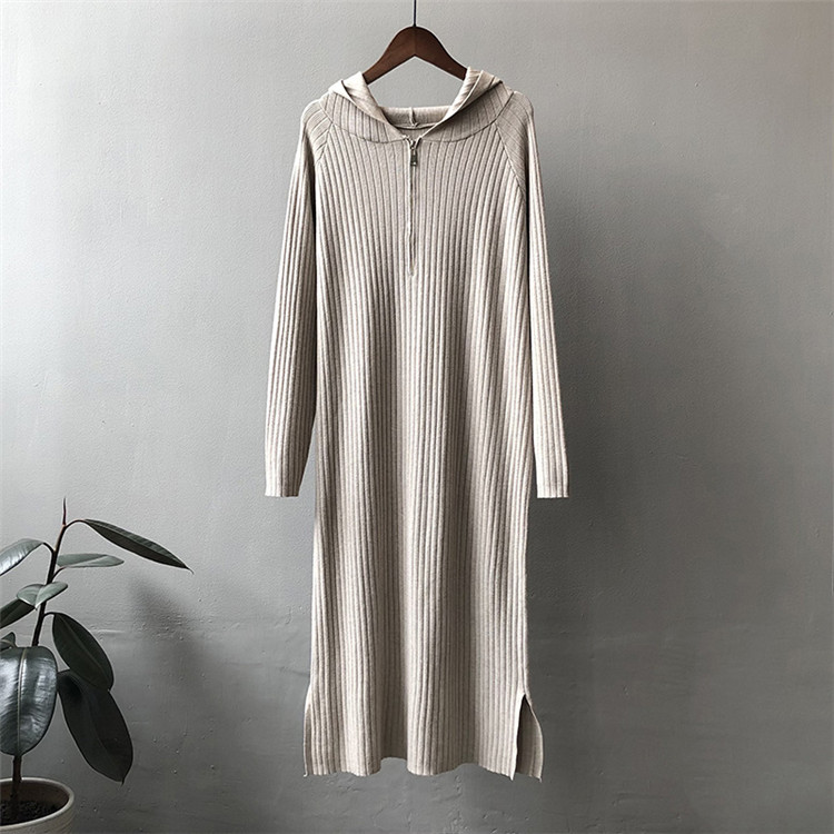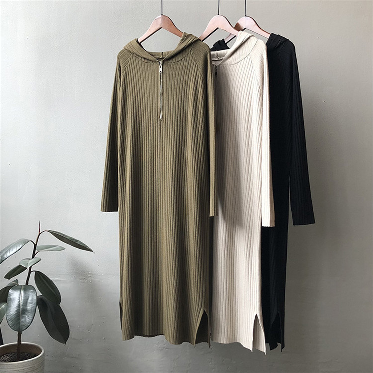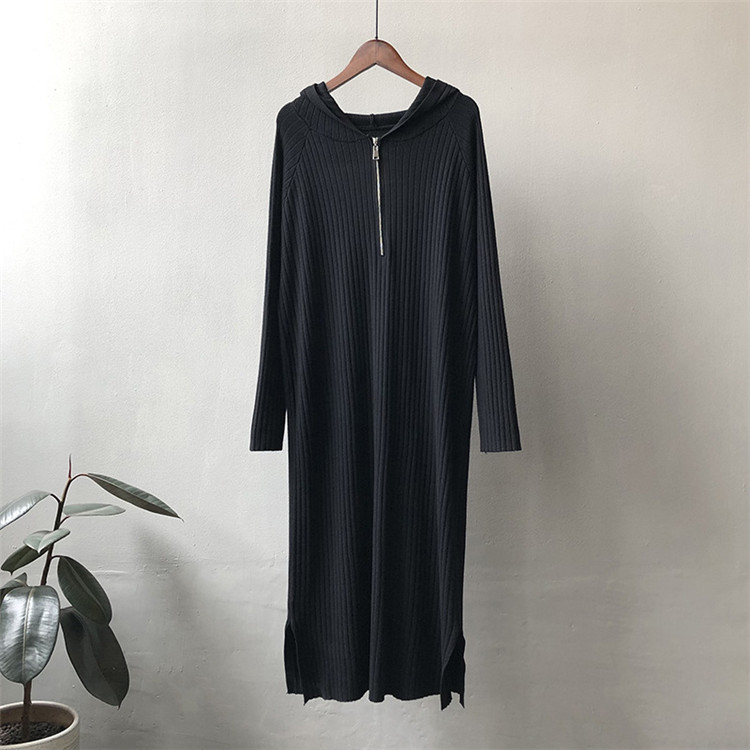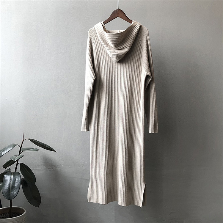 カジュアルコーデに最適なフード付きニットロングワンピース。