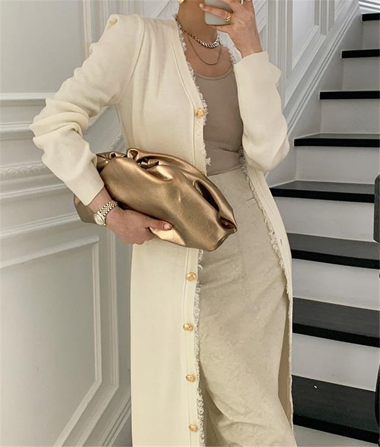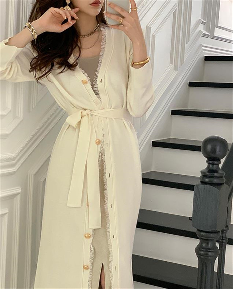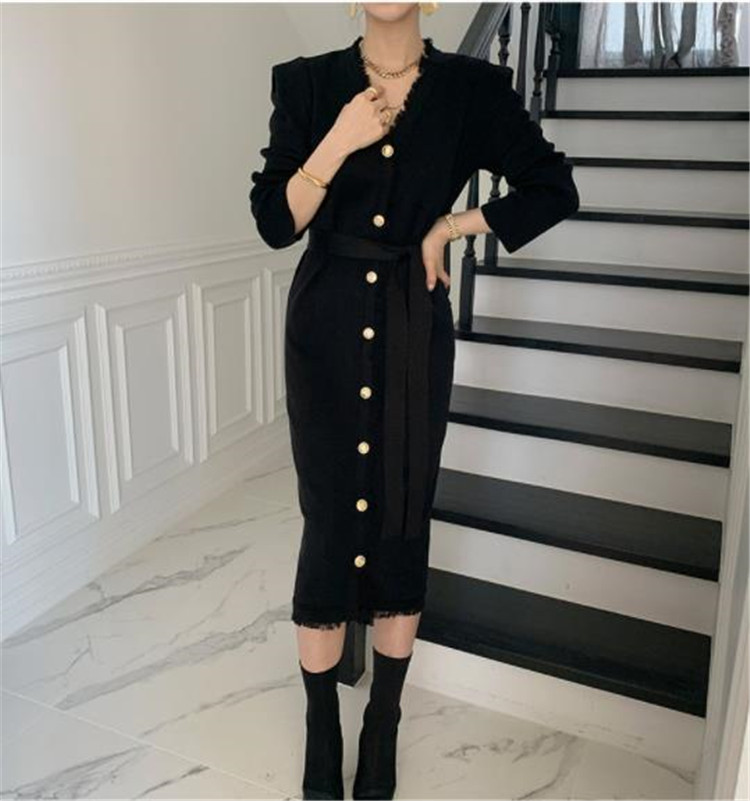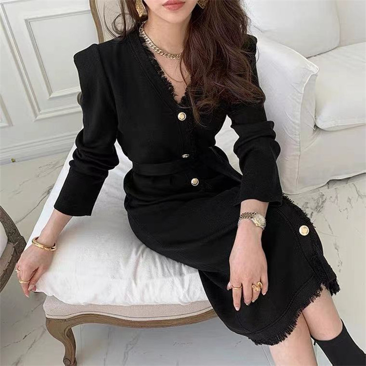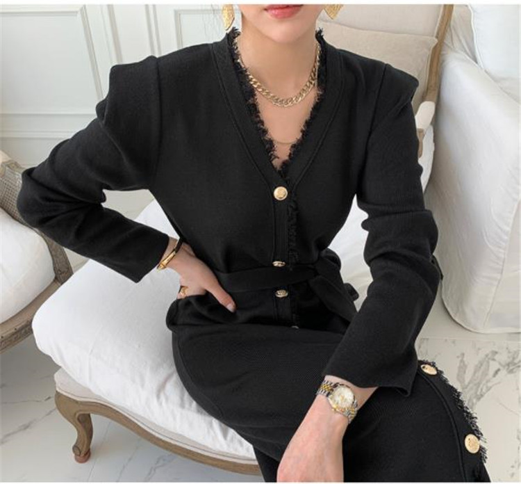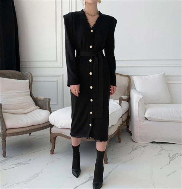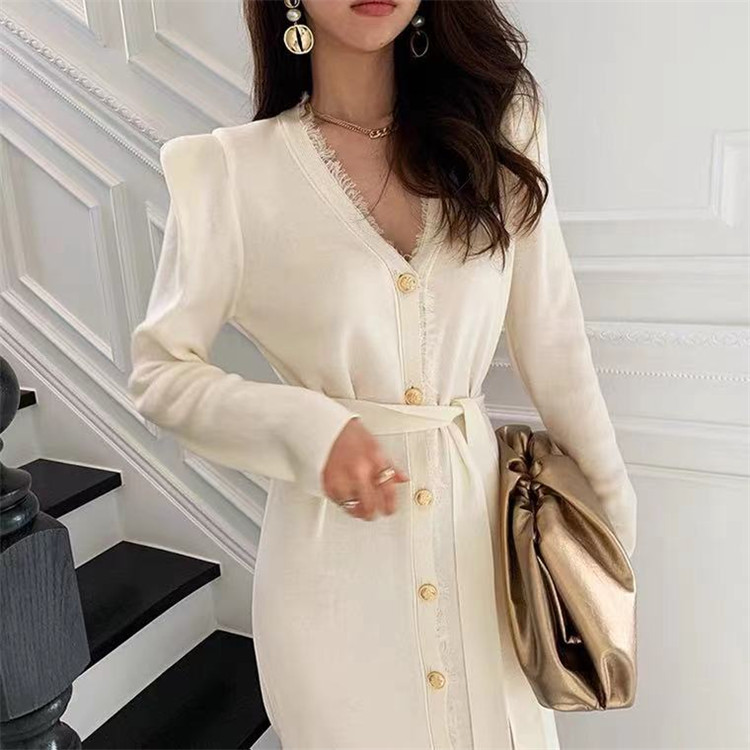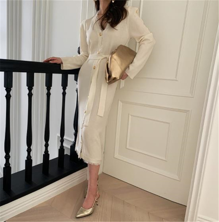 エレガントで洗練されたニット素材のロングワンピースです。