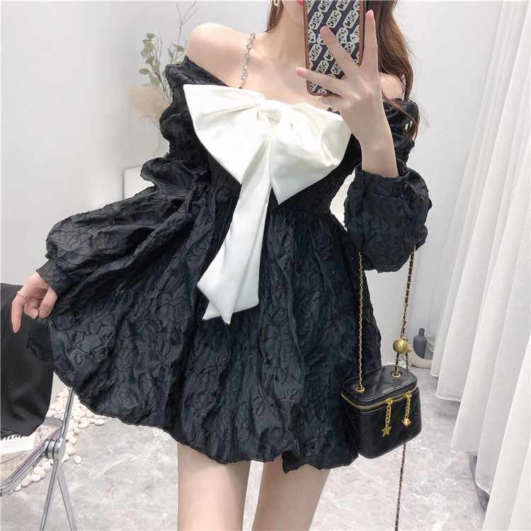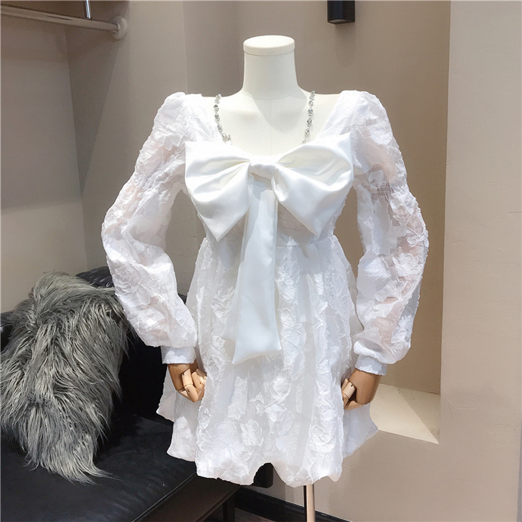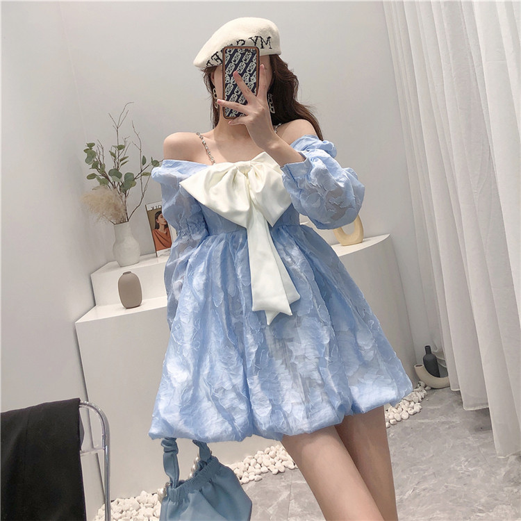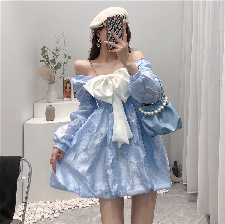 可愛い蝶結びが印象的なフレアシルエットのロングワンピース