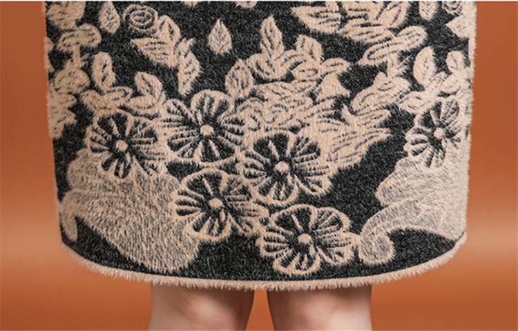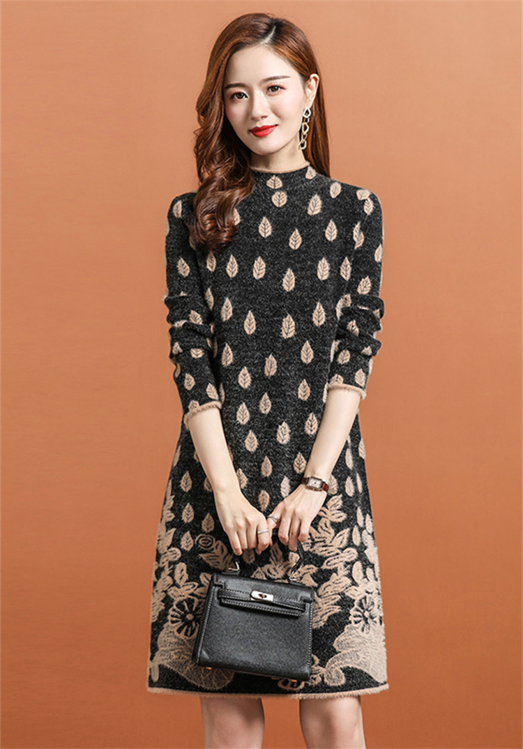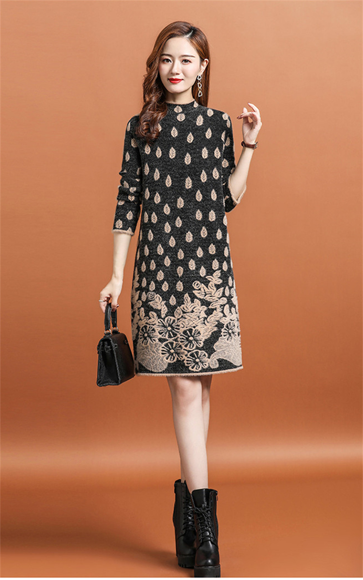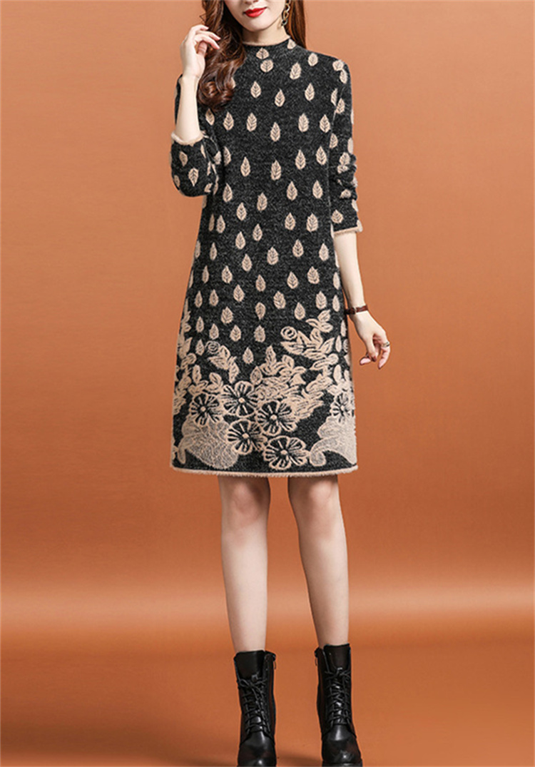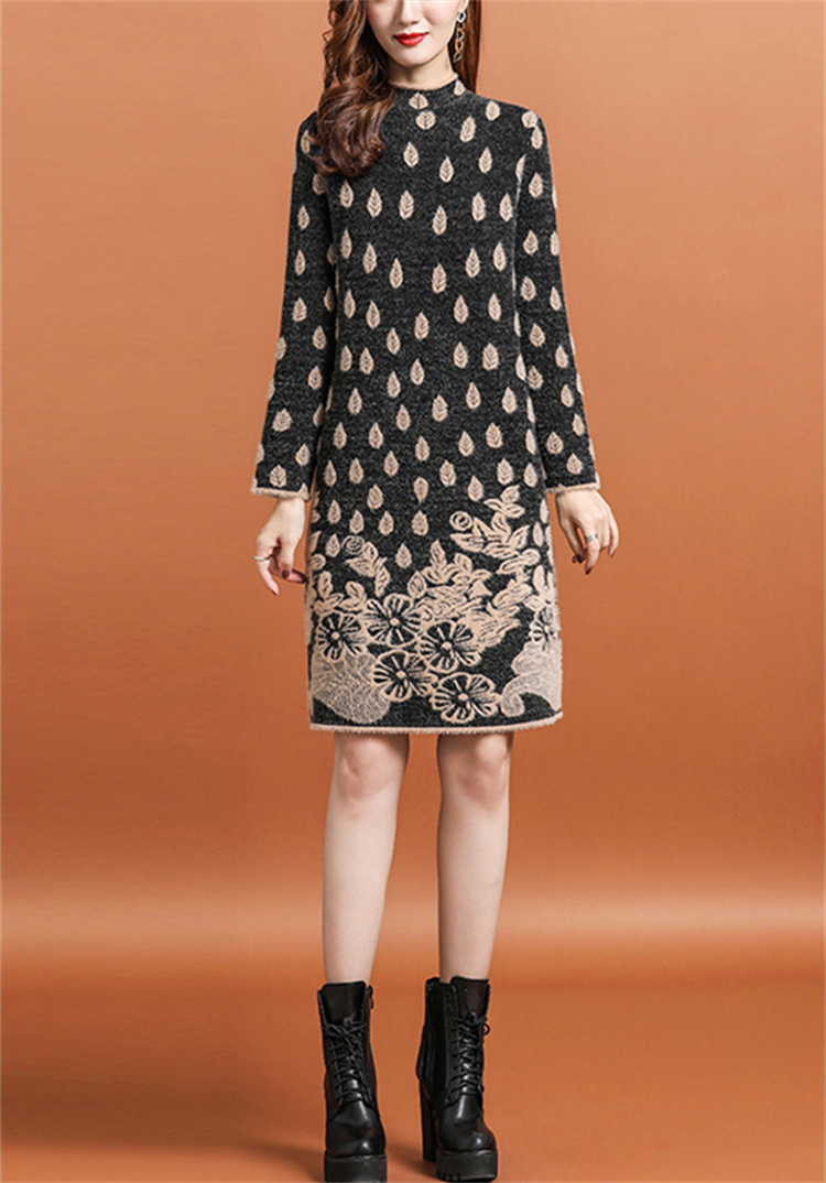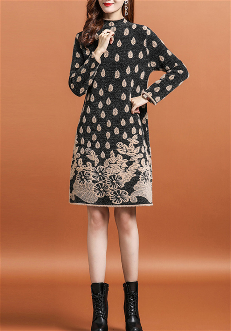 上品な花柄刺繍が美しい厚手ニットシャツワンピースです。
