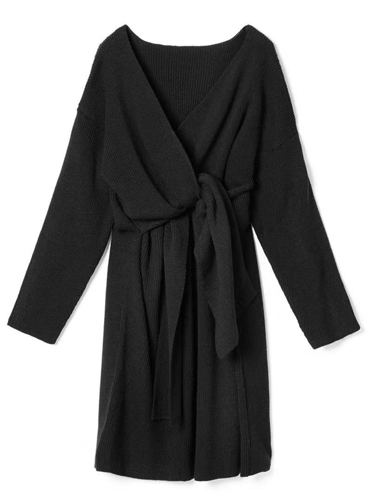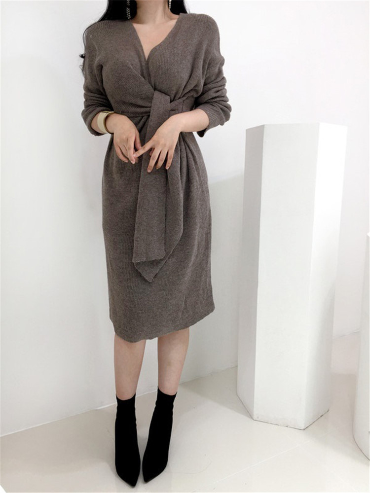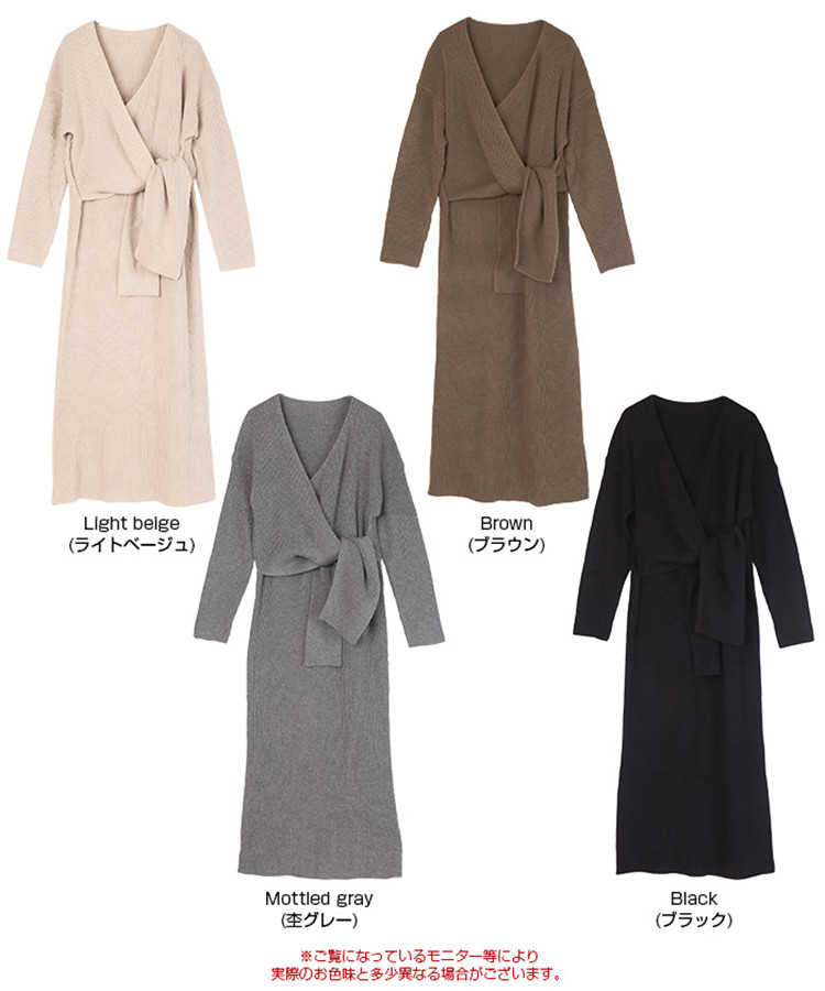 上品な深めのブイネックラインが特徴的なニット素材のロングワンピースです。