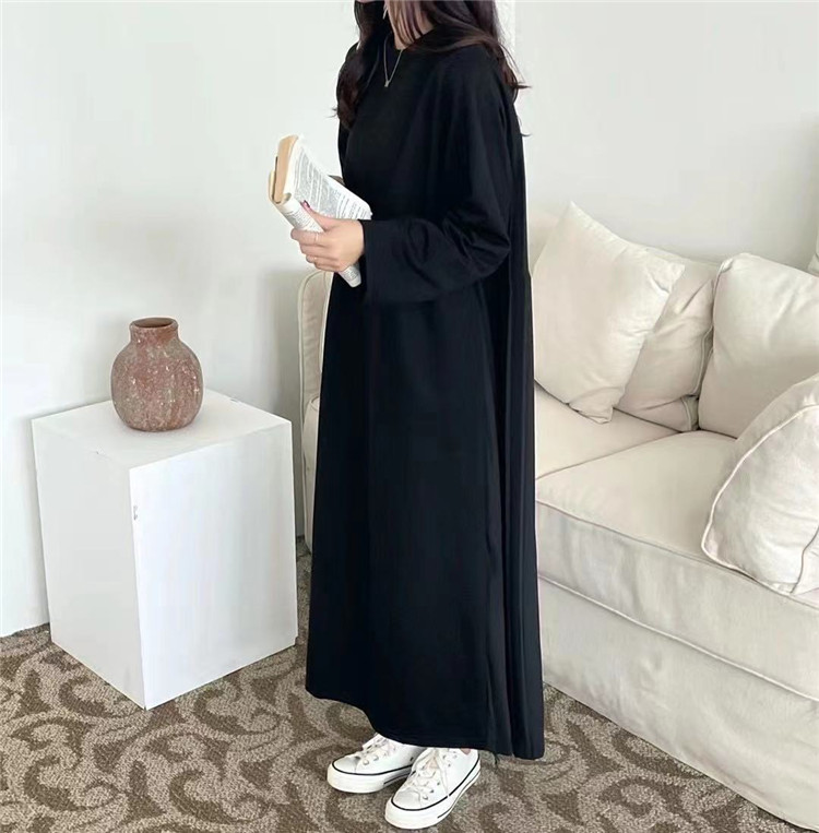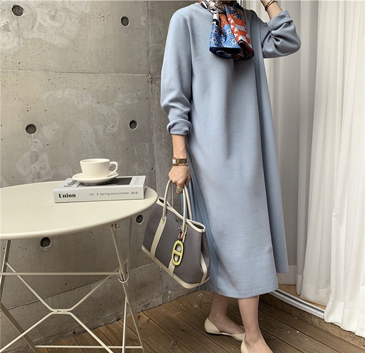 上品なフレアデザインが魅力的なパーカータイプのロングワンピース。 ゆったりとした着心地でエレガントな印象を演出します。 カラー展開:黒・カーキ・青の3色 大人気のロング丈で幅広いシーンに対応