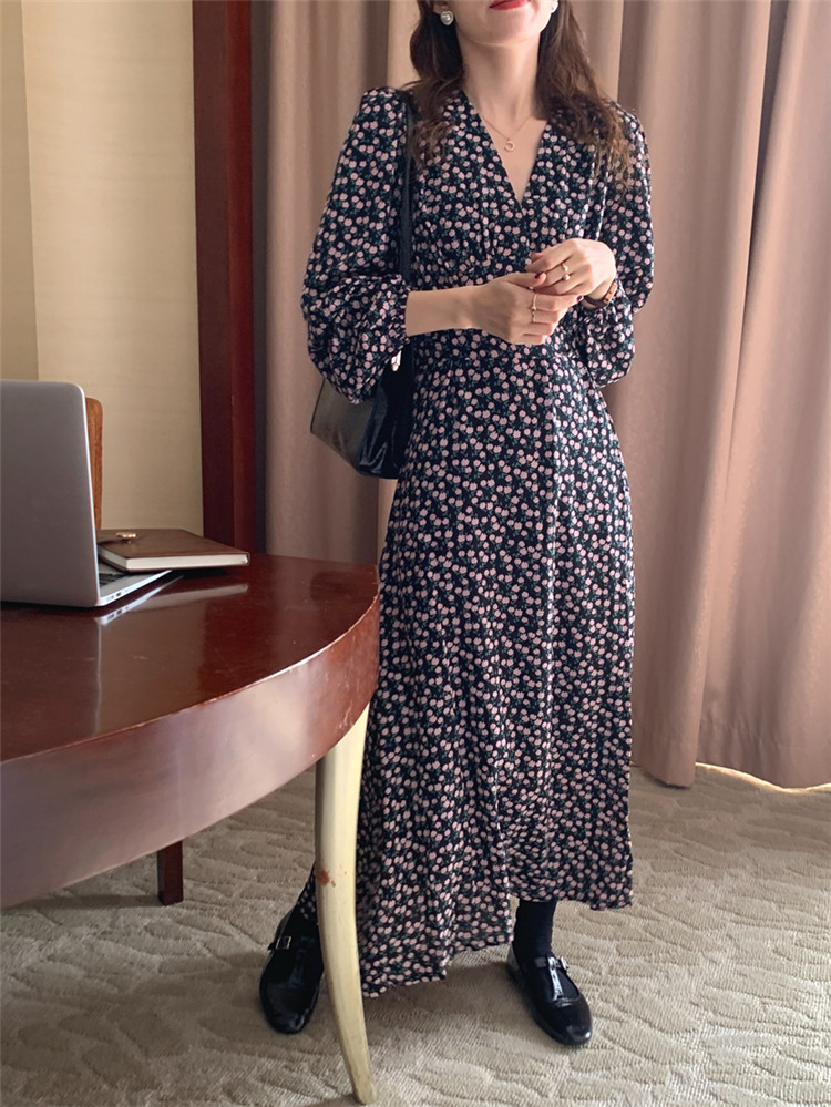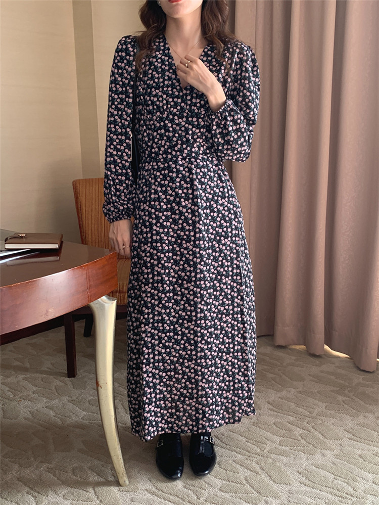 レトロな花柄が上品なロングワンピースと、