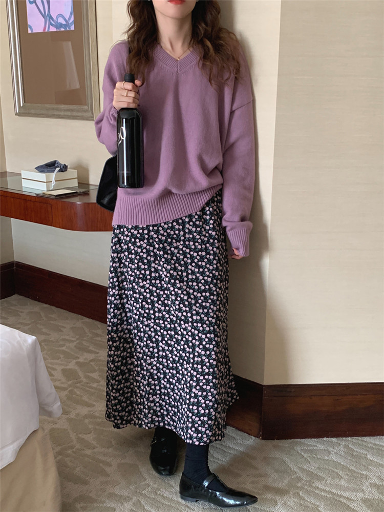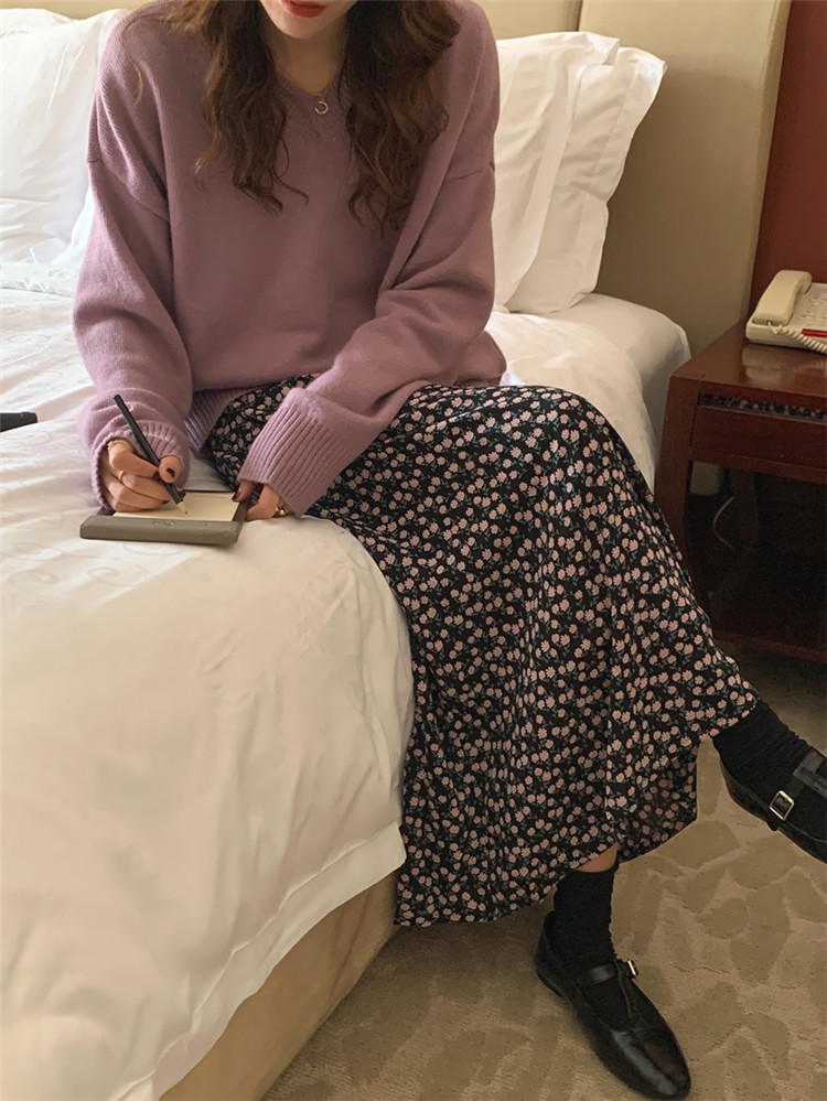 ゆったりとしたニットセーターの2点セット。