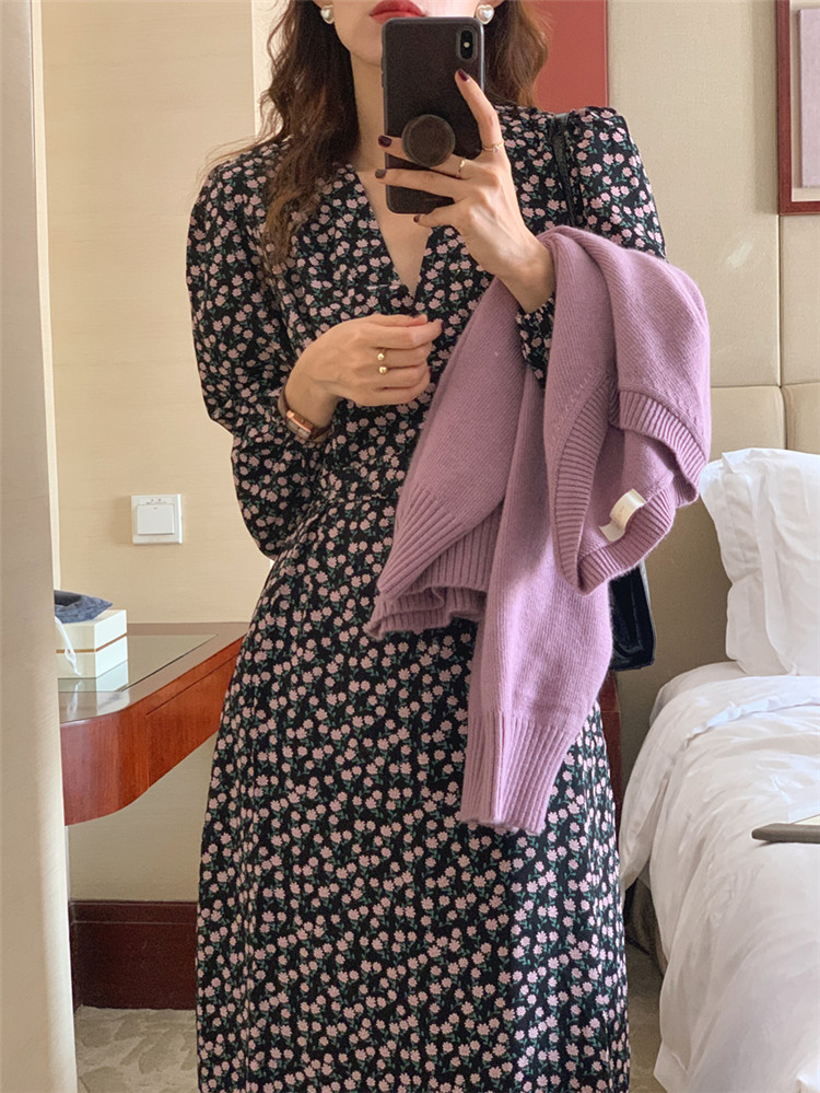 カラー:黒色(ワンピース)、紫色(ニット)