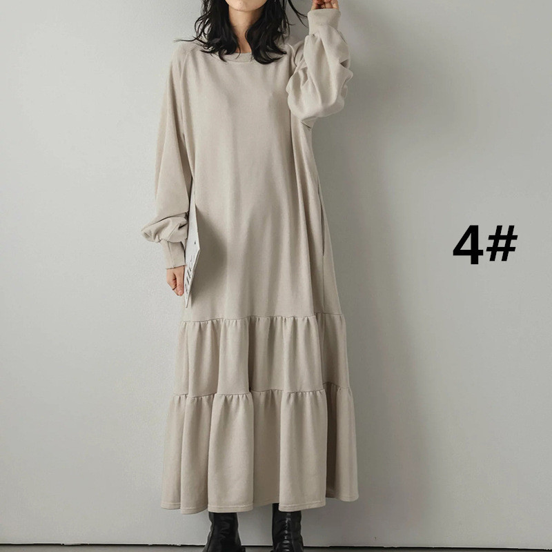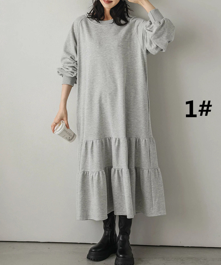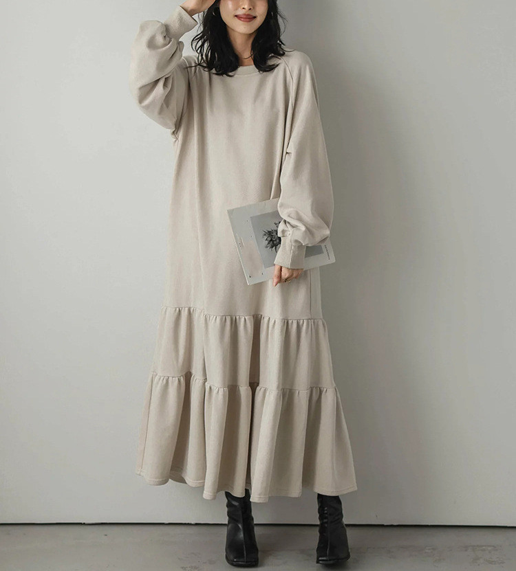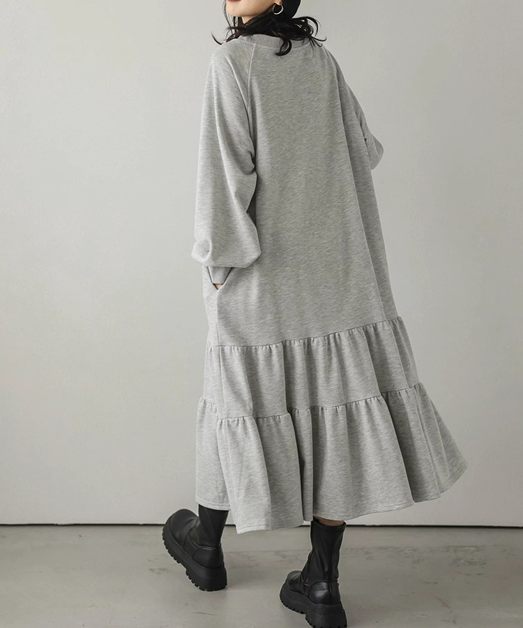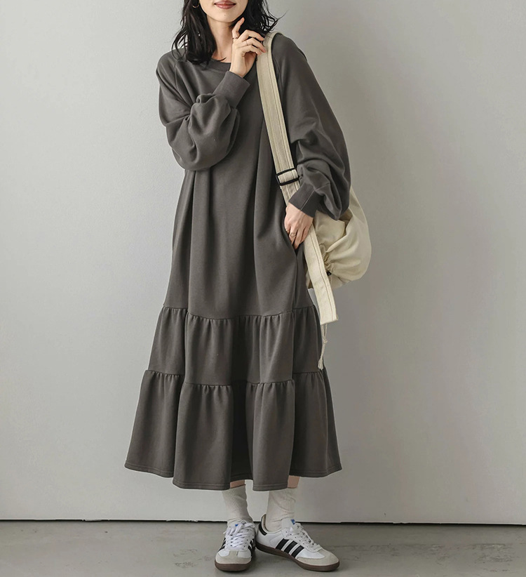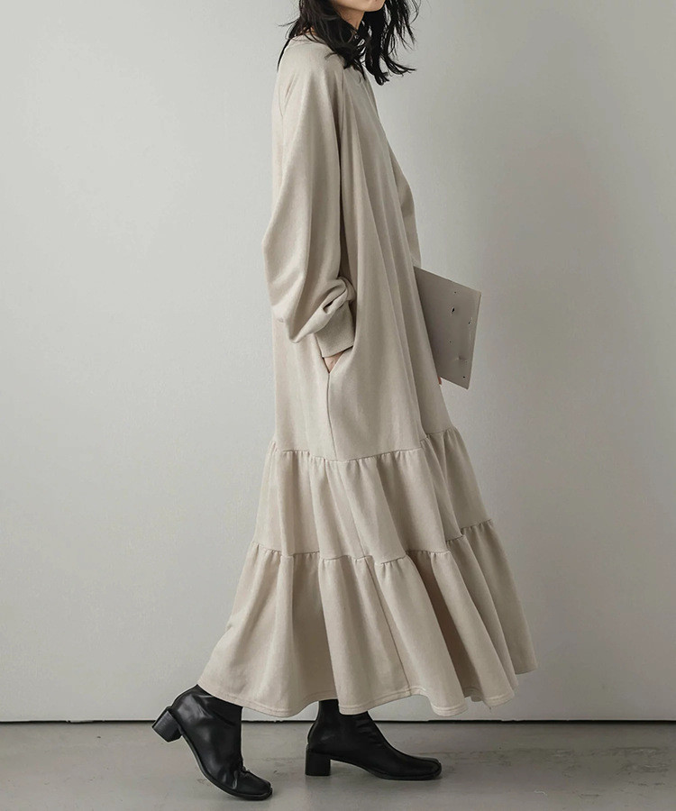 ロングワンピースならではの上品さで、羽織りものとの相性も良く着回し力抜群の1枚です。