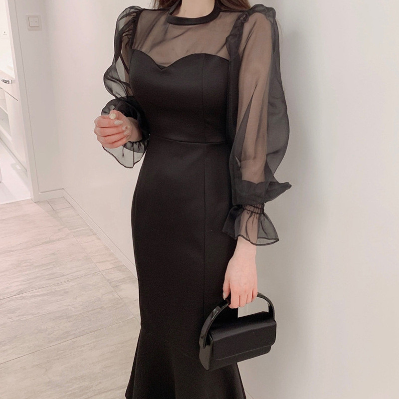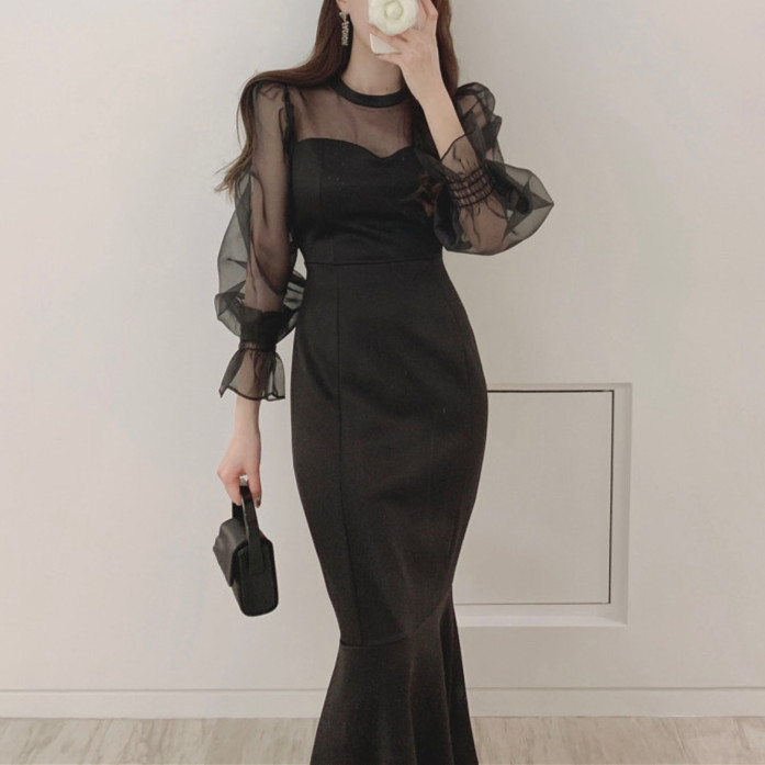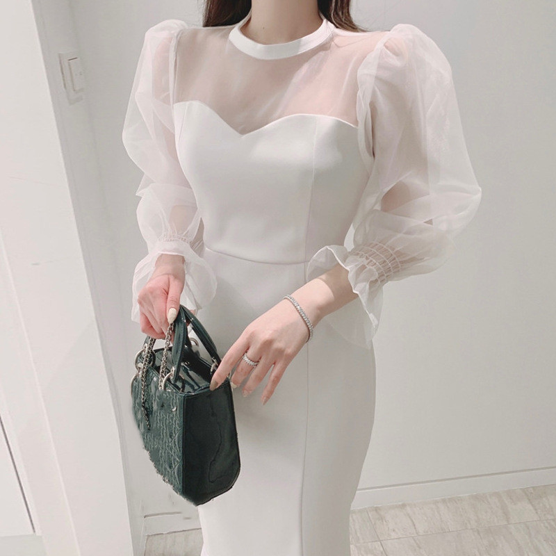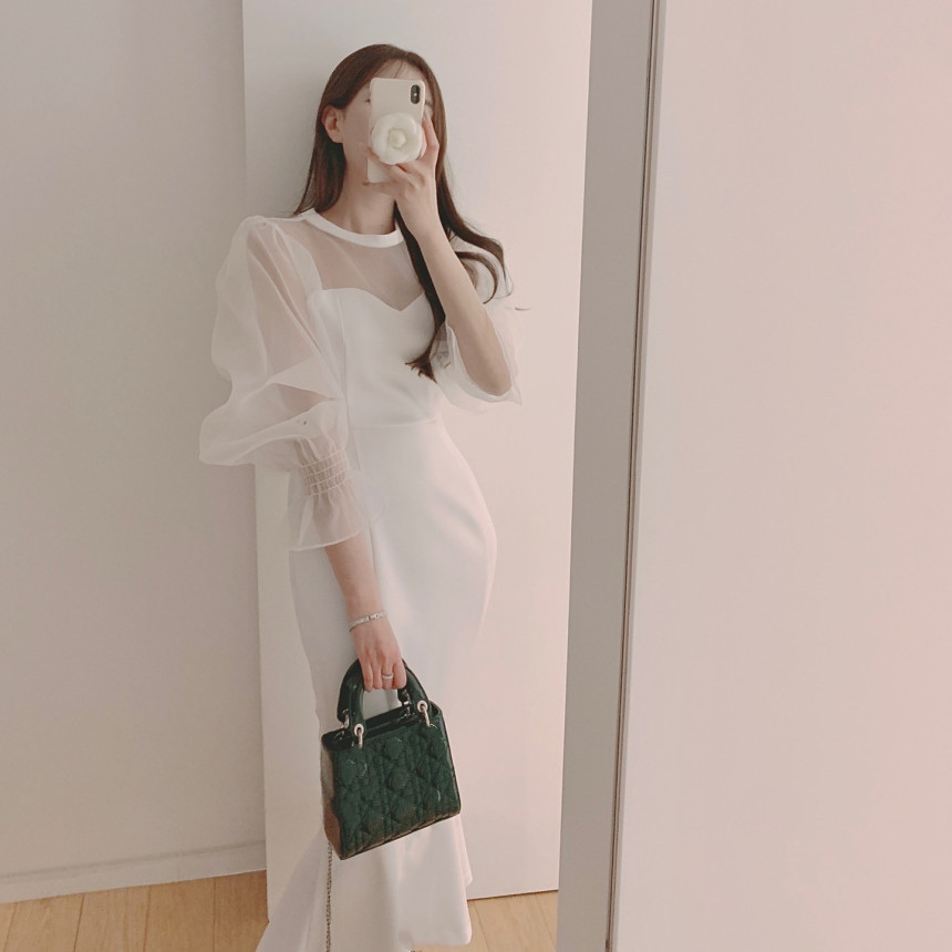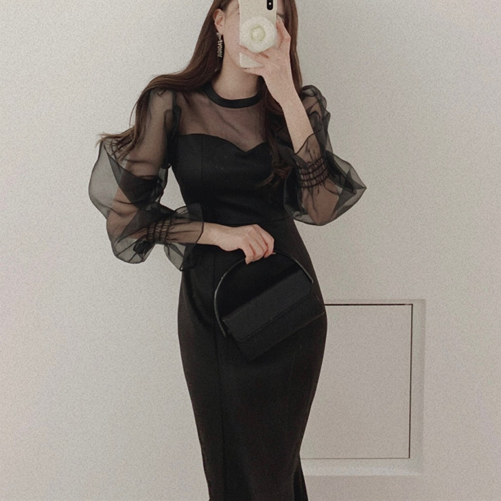 シアーな袖とボディラインを美しく見せるシルエットが魅力的。
