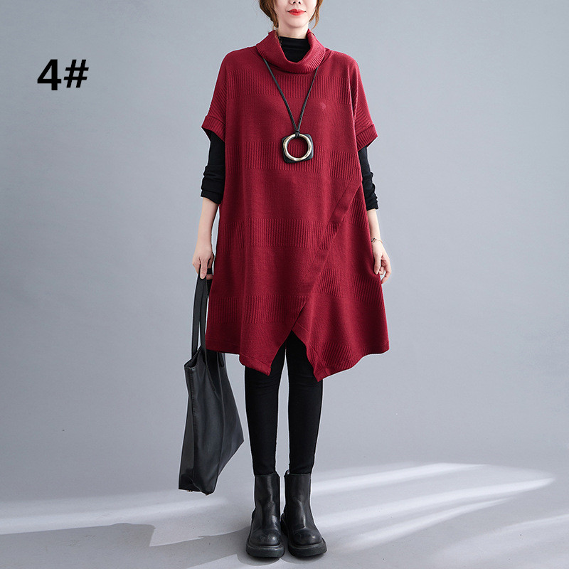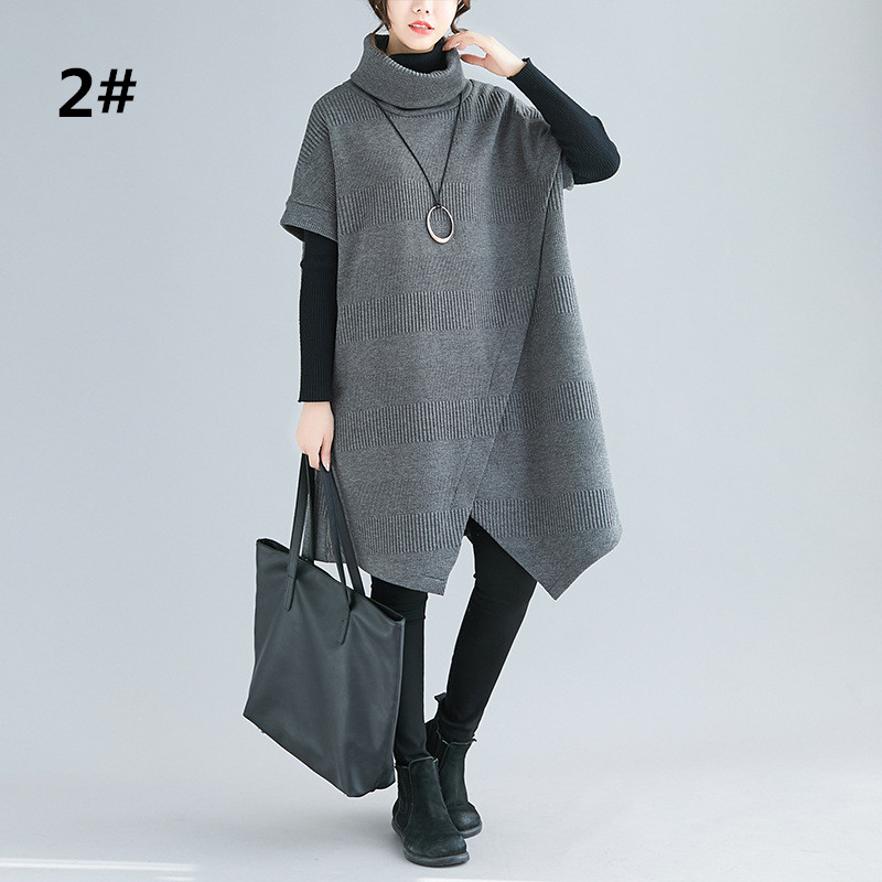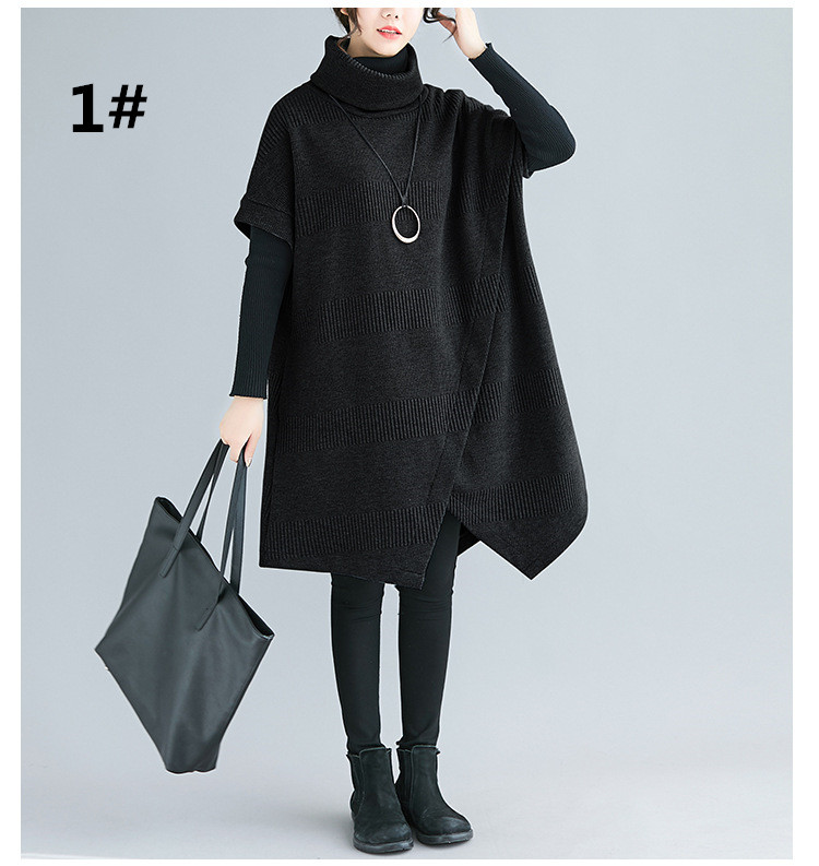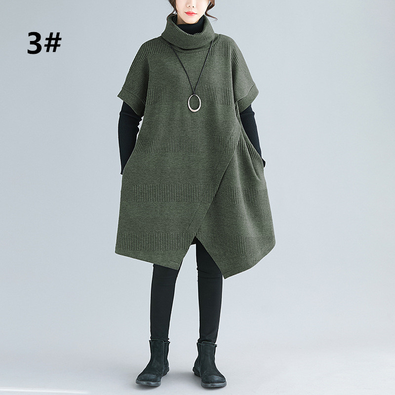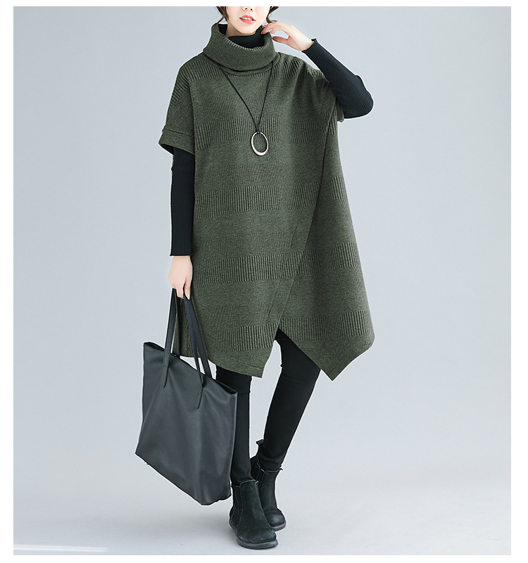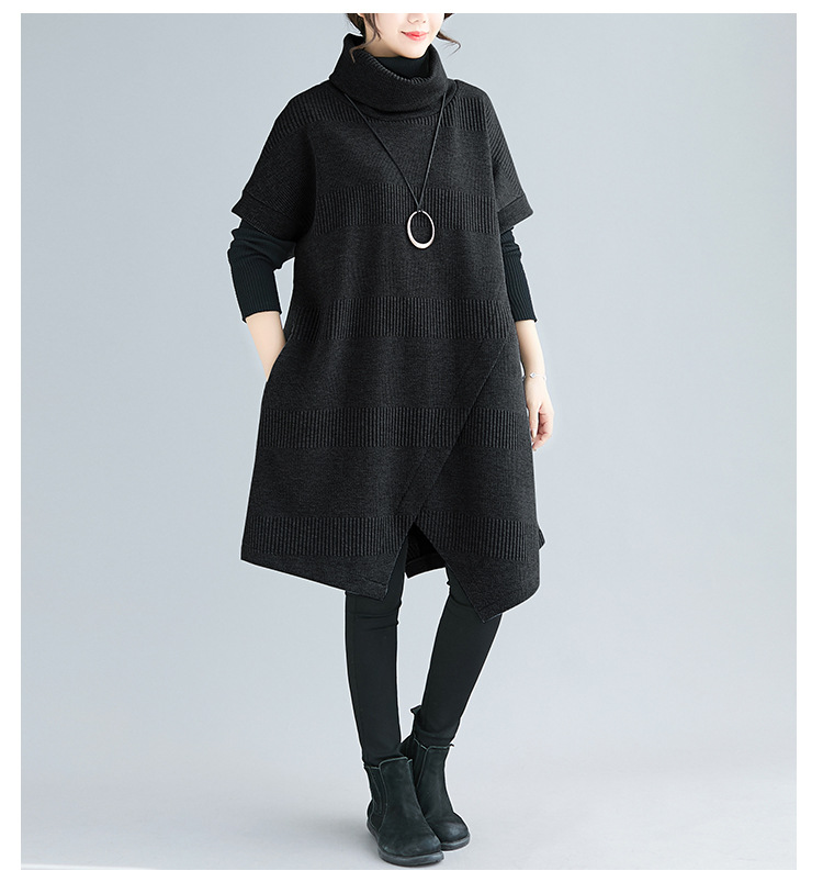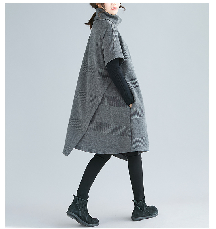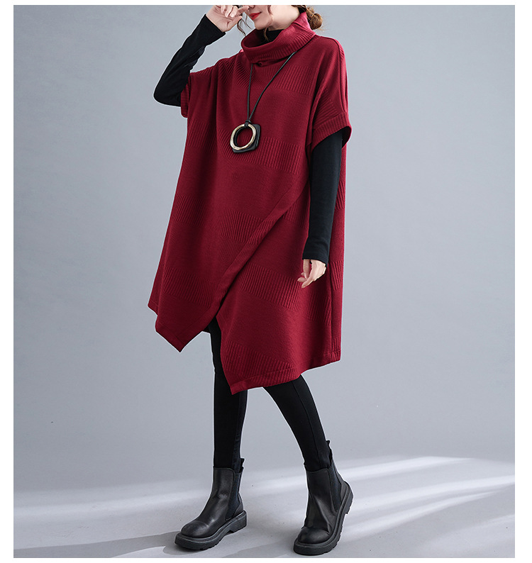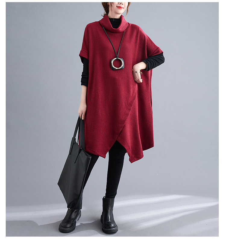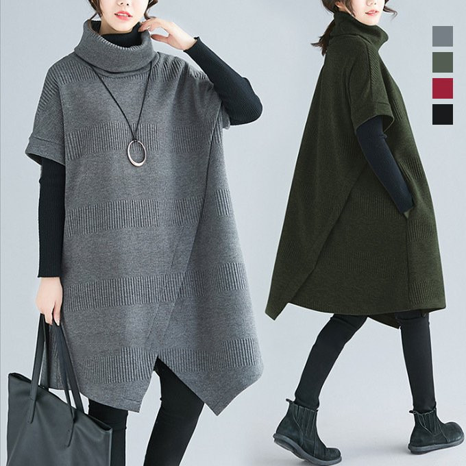 ゆったりとしたデザインが体型をカバーしつつ、タートルネックで首元も暖か。