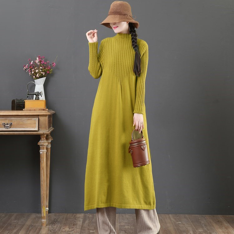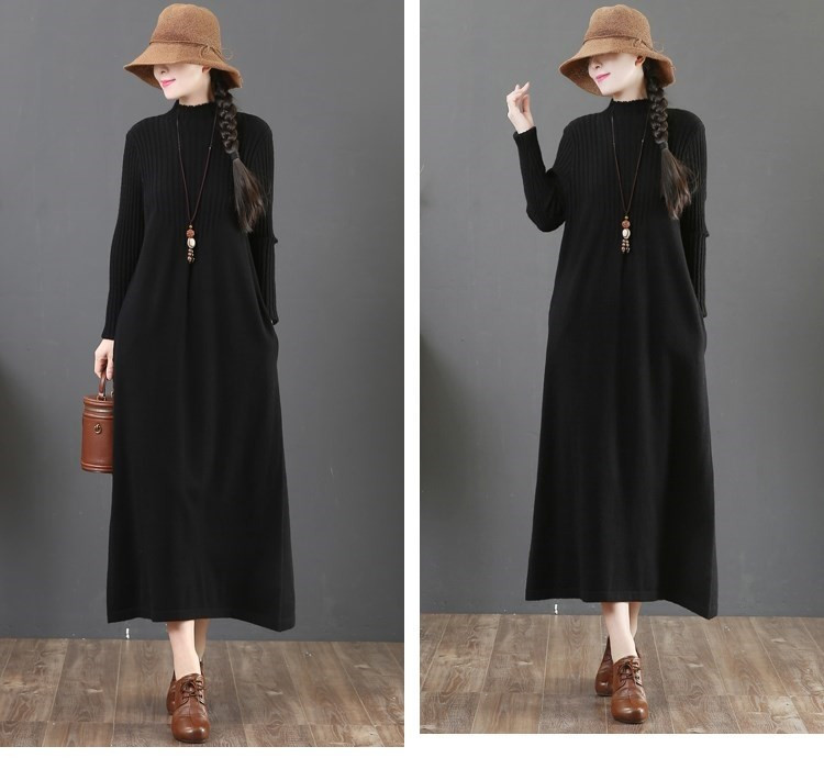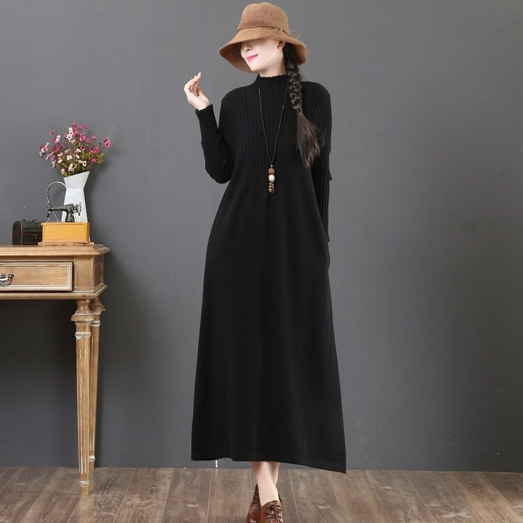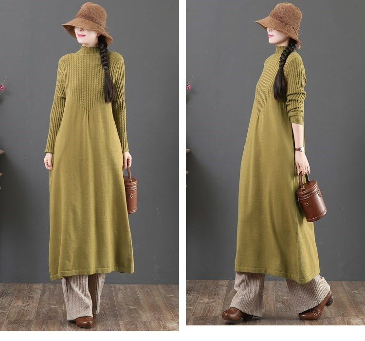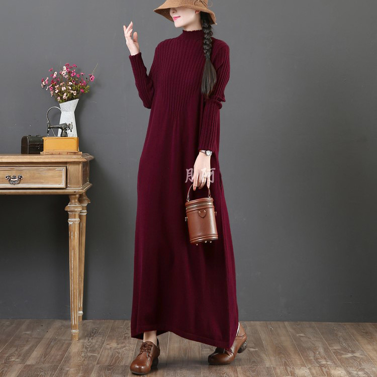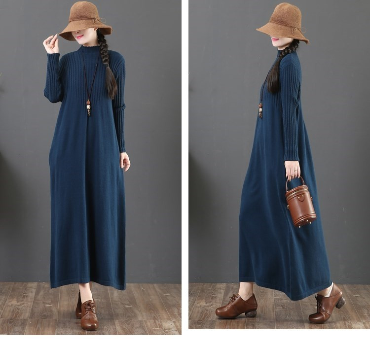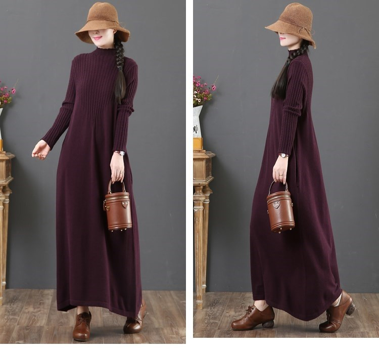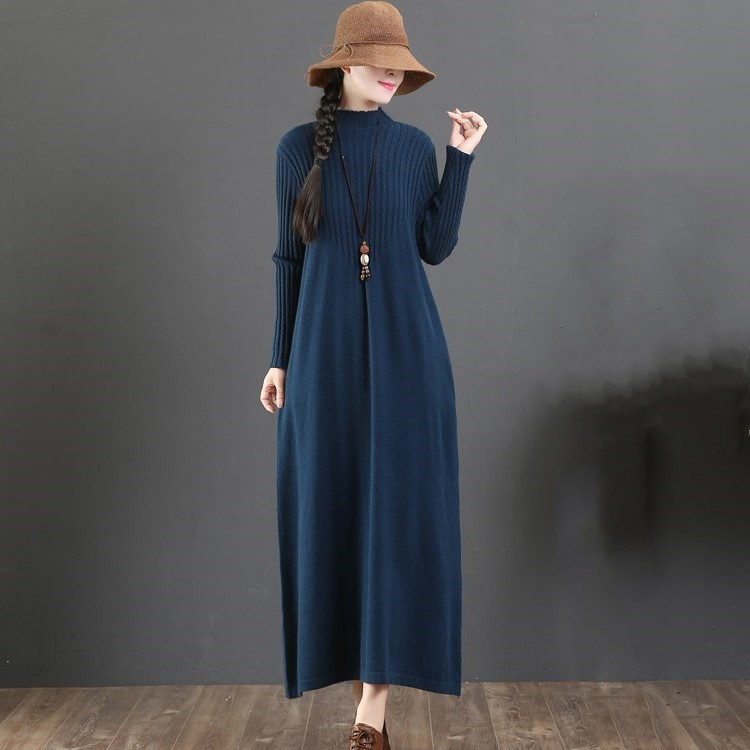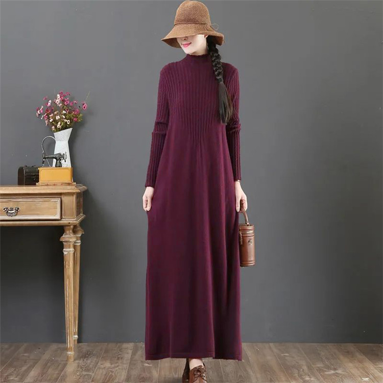 大人女性に人気のゆったりとした着心地が魅力のニットロングワンピース。