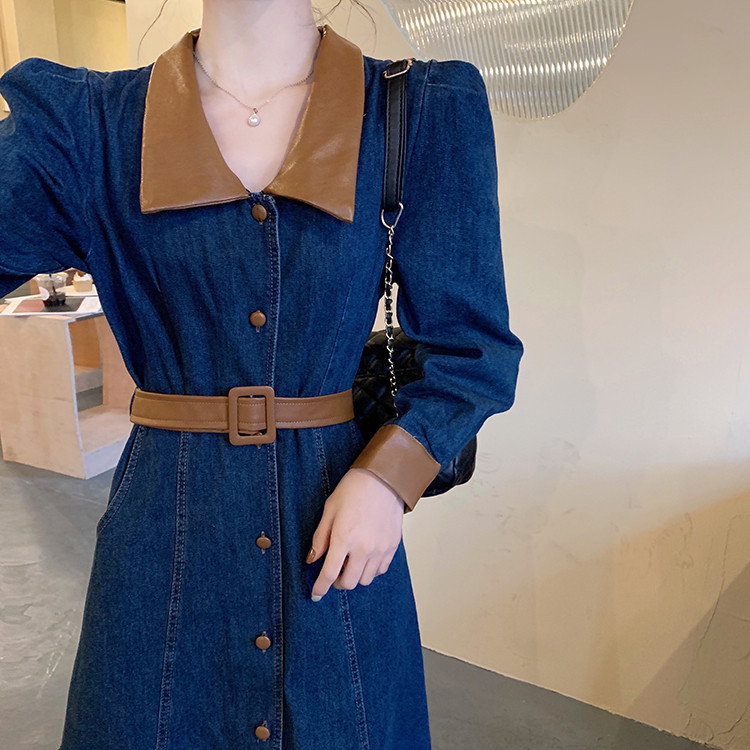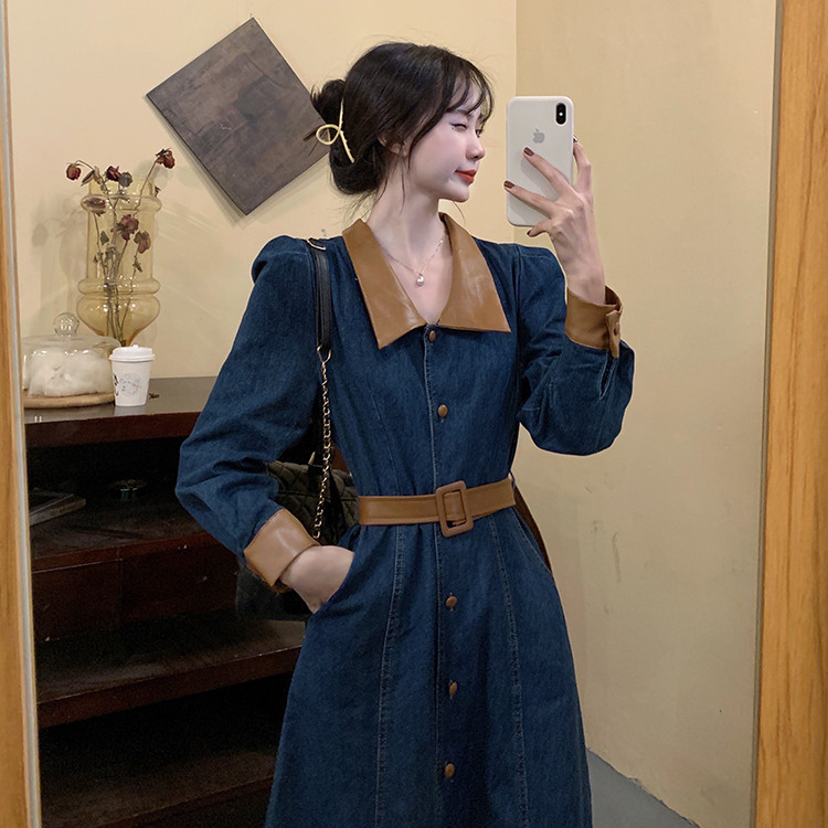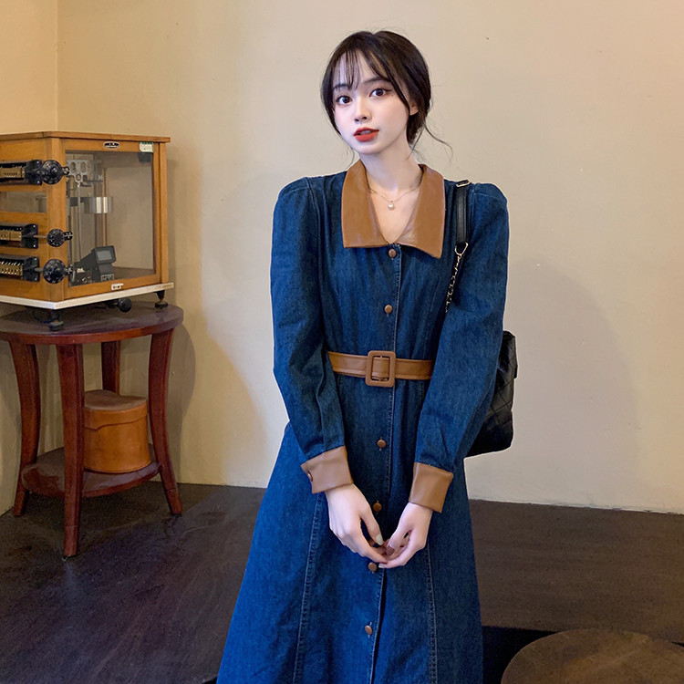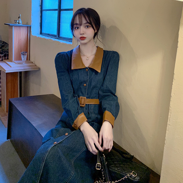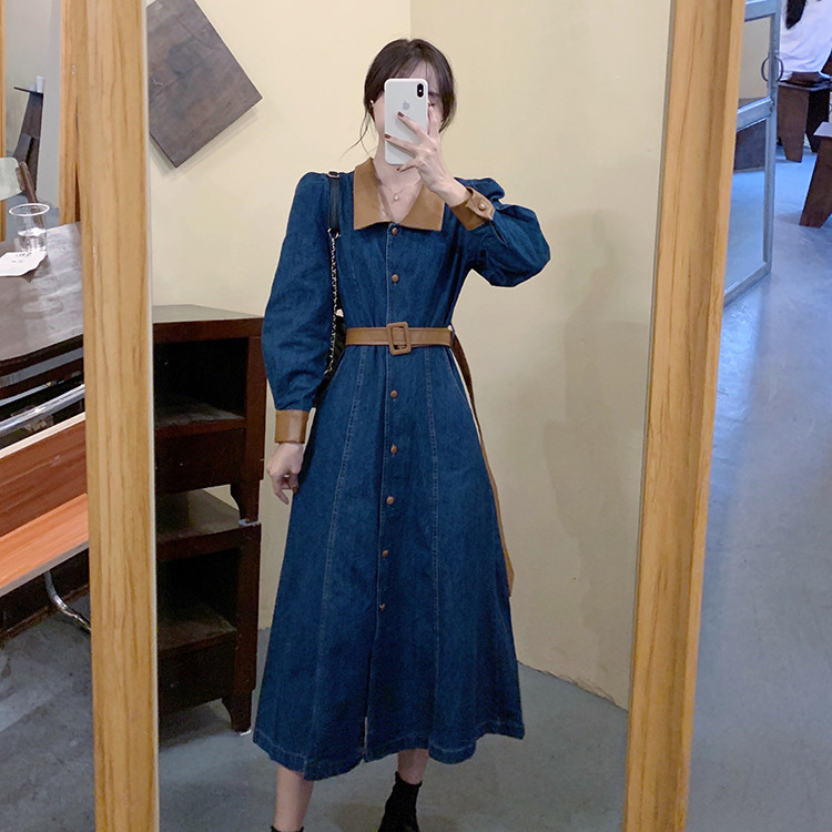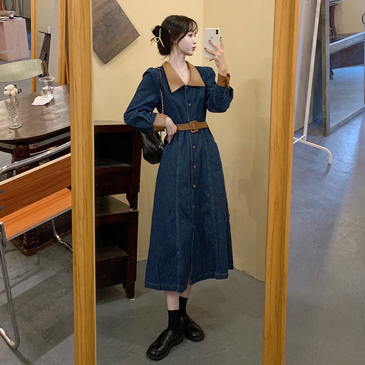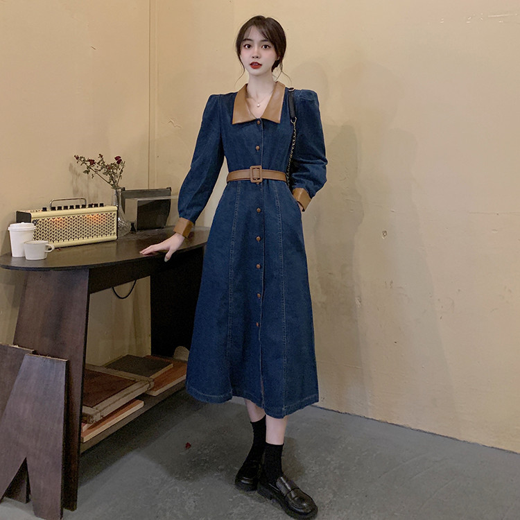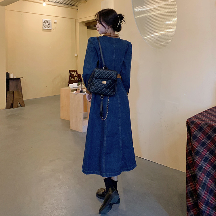 レトロな雰囲気漂うデニム素材のロングワンピースです。