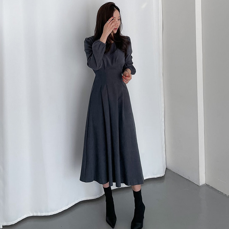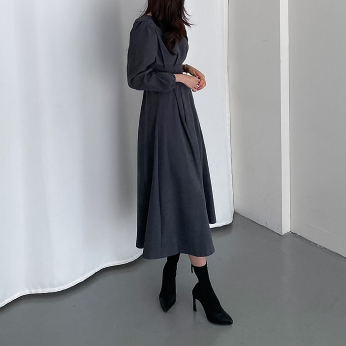 ウエストで絞れる上品なロングワンピースデザインで、どんな着こなしにも合わせやすい一枚です。