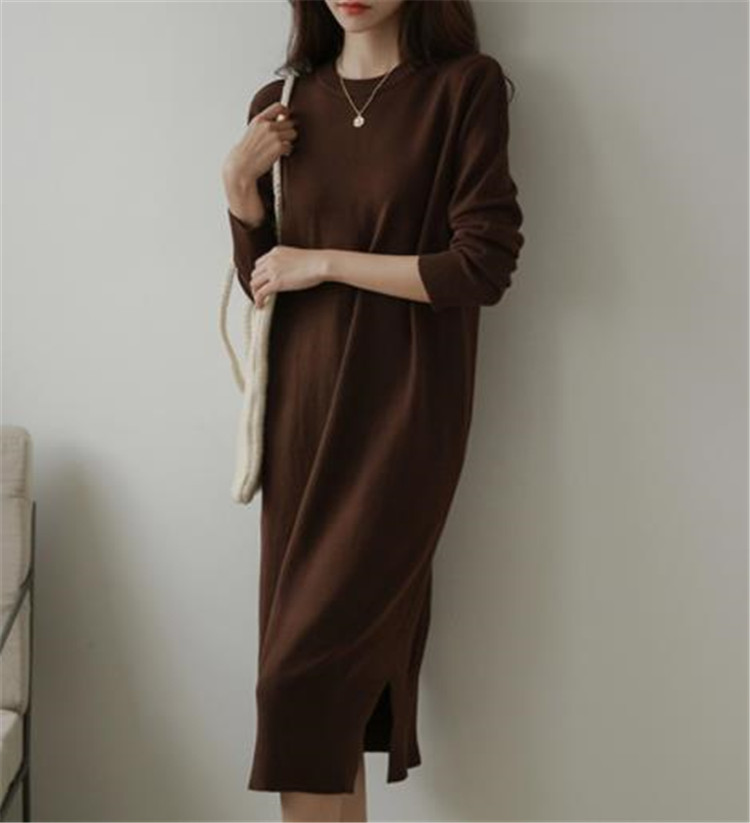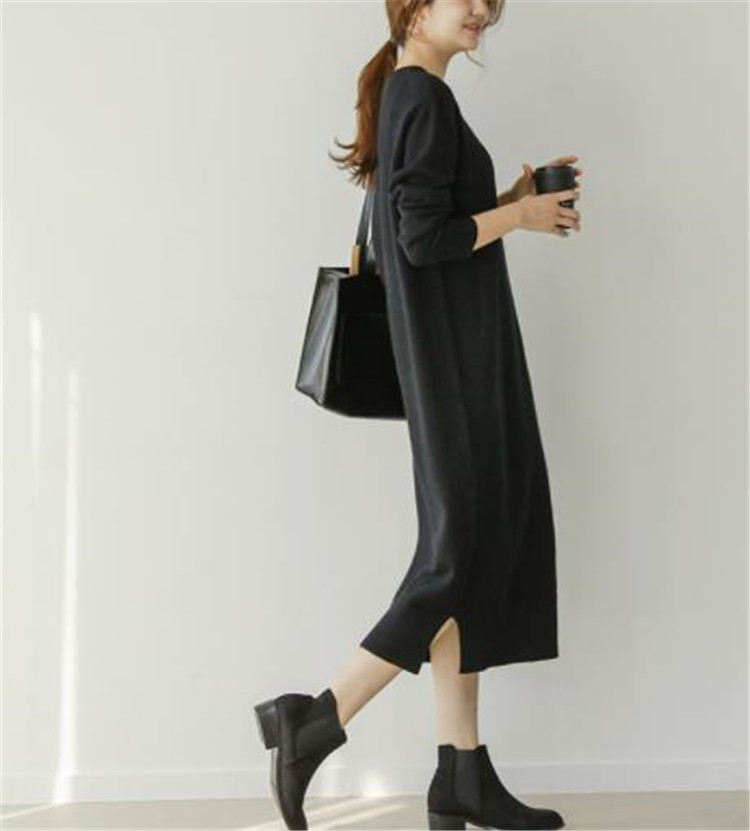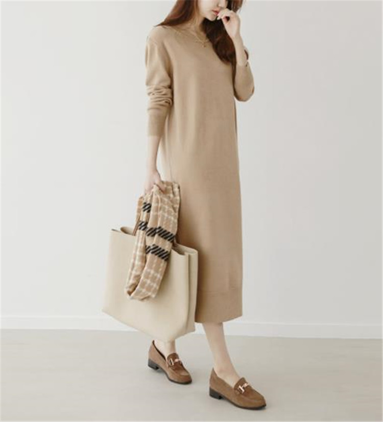 ゆったりとしたシルエットで個性的なスタイルが楽しめる長袖ニットのロングワンピース。 中丈から長丈まで対応し、カジュアルにもおしゃれにも着回せる万能アイテムです。 素材:アクリル カラー:黒、カーキ、茶色の3色展開