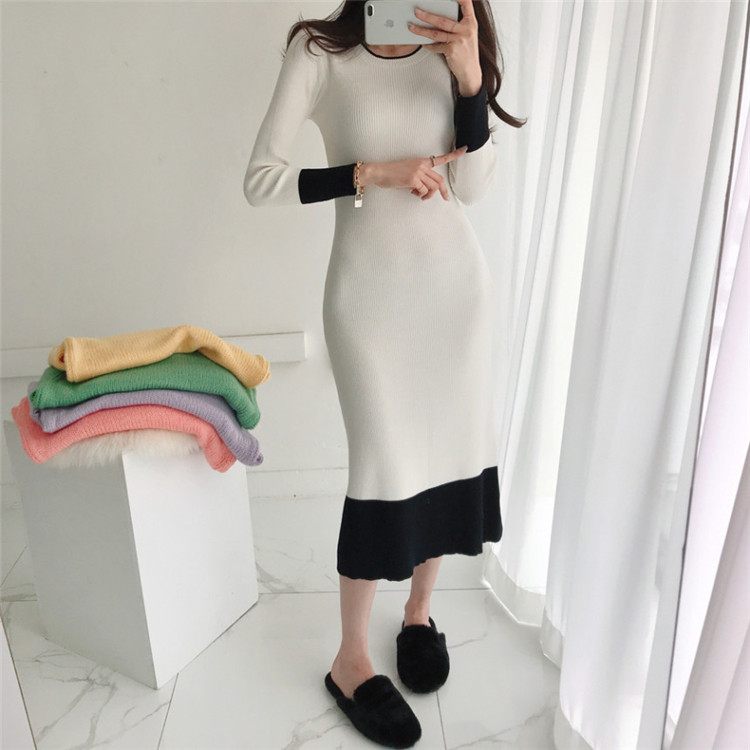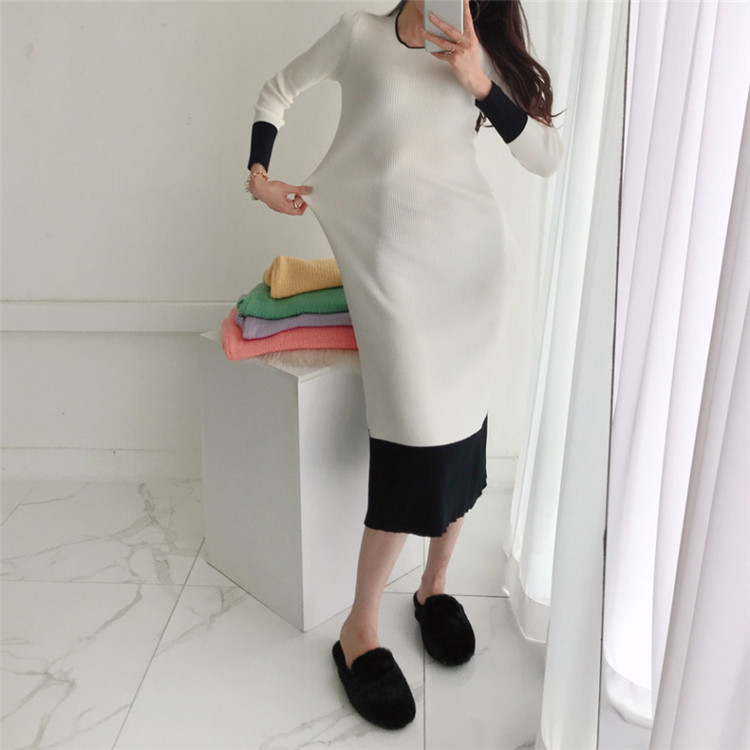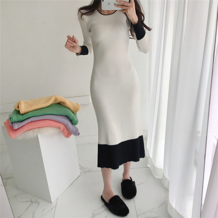 秋冬シーズンに大活躍するニット素材のロングワンピース。