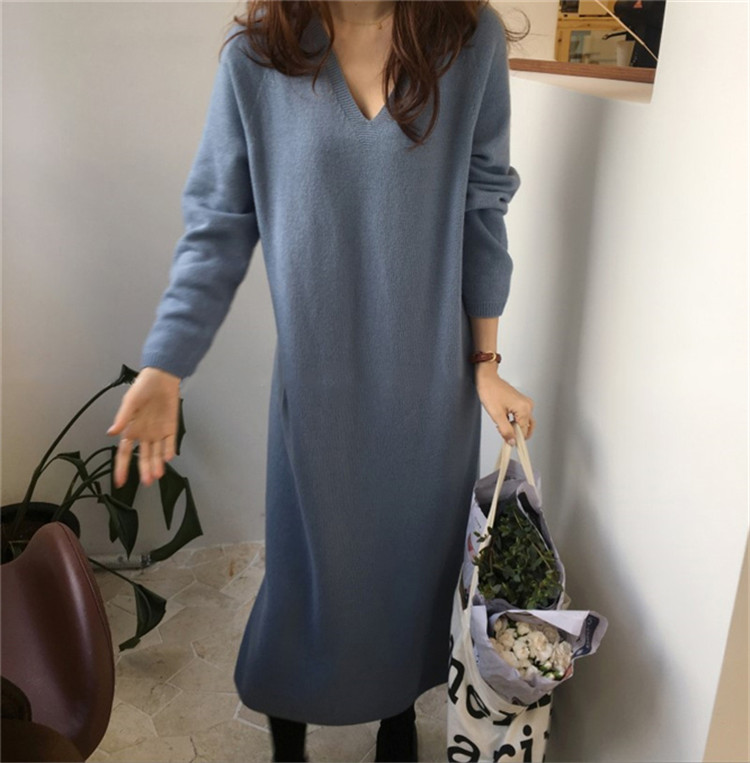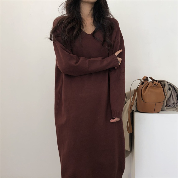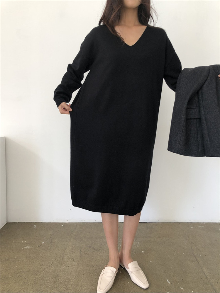 おしゃれに体型カバーが叶うゆったりニットロングワンピース。 秋冬にぴったりの長袖デザインで、個性的なブイネックがスタイルアップ効果を演出。 アクリル素材で着心地抜群。ブラック・カーキ・ベージュ・ブルー・コーヒー色の豊富なカラー展開。