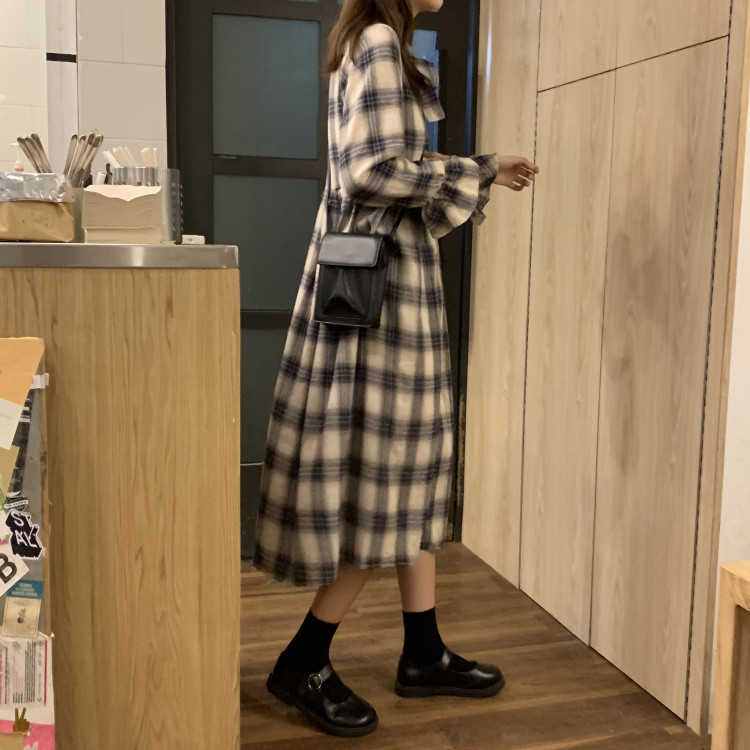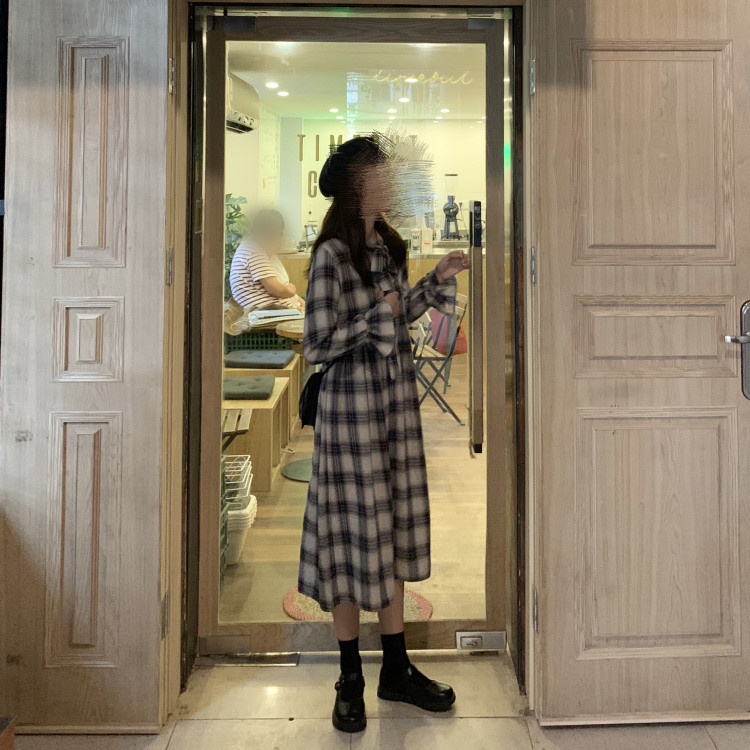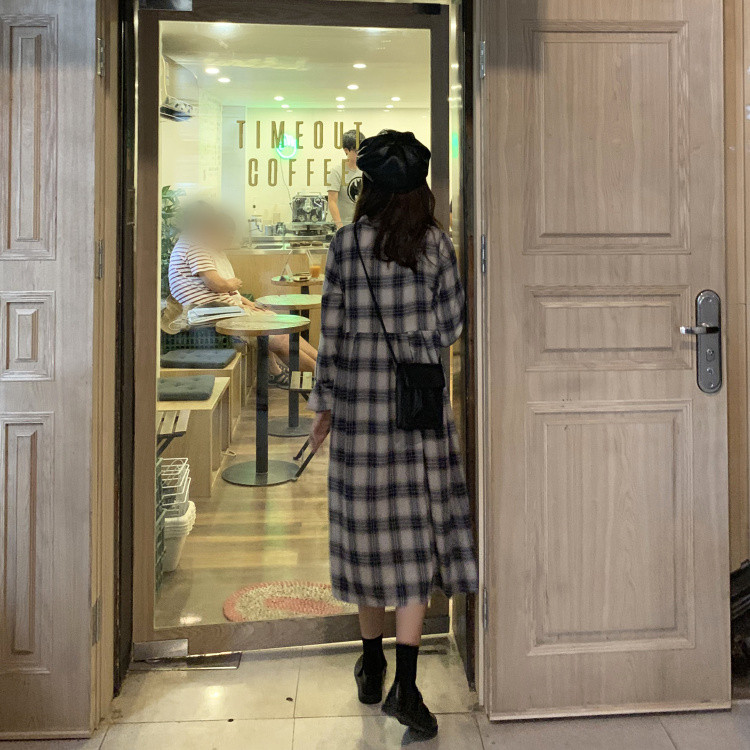 ゆったりとした着心地が魅力のチェック柄シャツワンピース。