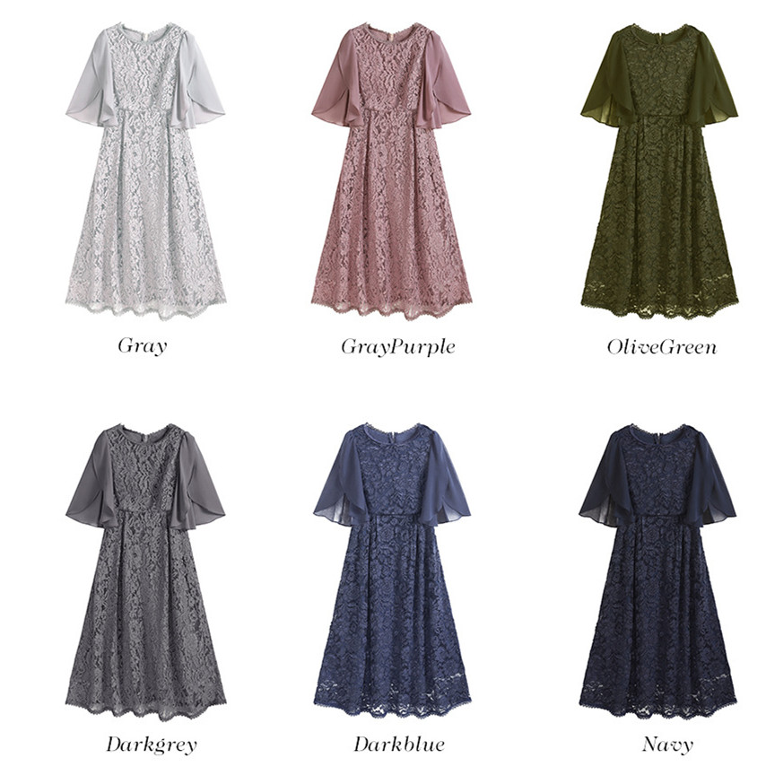 エレガントなレースが美しいロングワンピースで、周囲と差をつける上品な仕上がり。