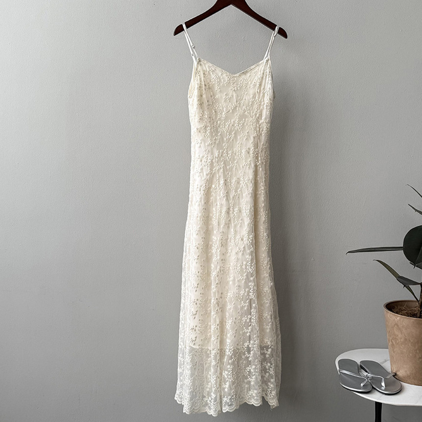 大人きれいな雰囲気を演出してくれる上品なレースキャミワンピースです。