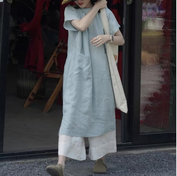 ロングワンピースならではの上品な着こなしで、リラックス感ときれいめスタイルを両立。