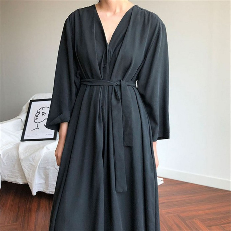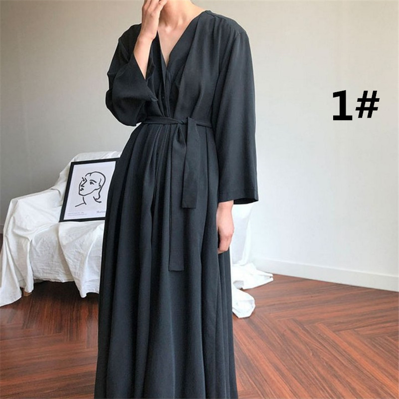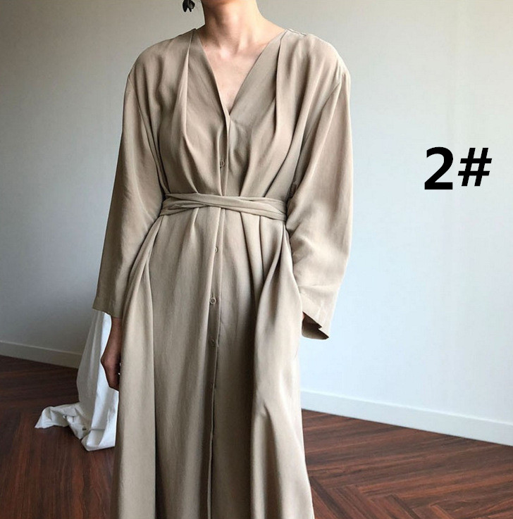 ウエストリボンが美しいシルエットを演出するロングワンピースです。