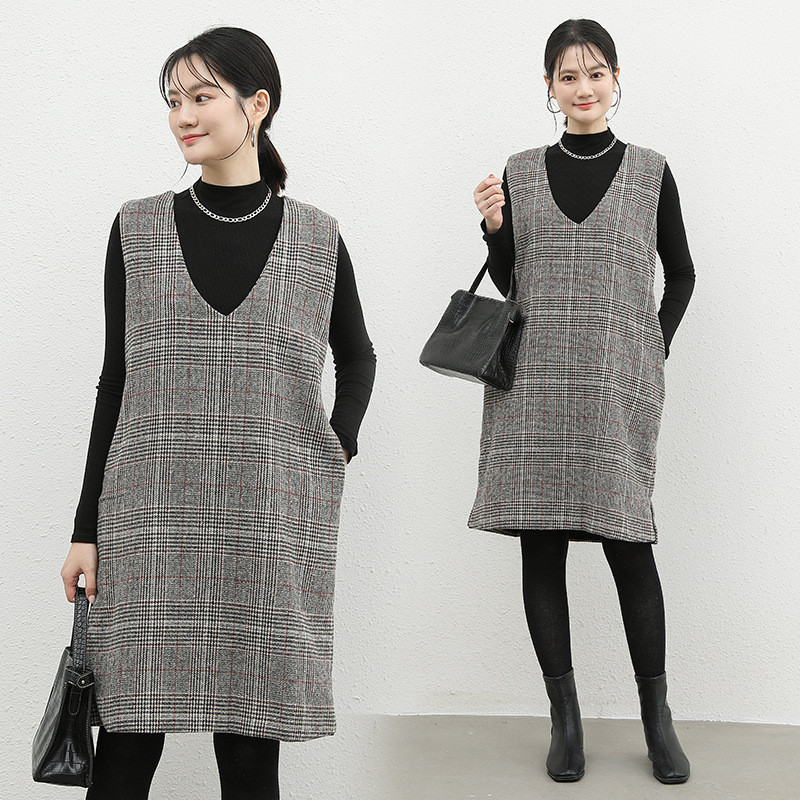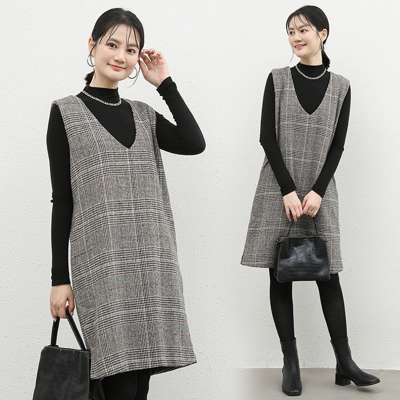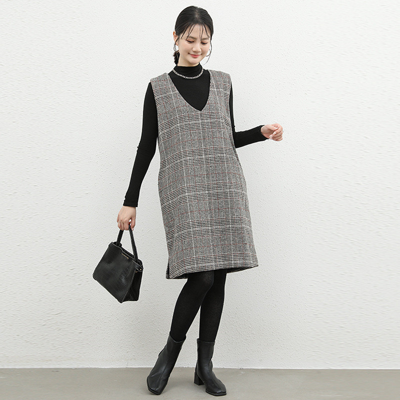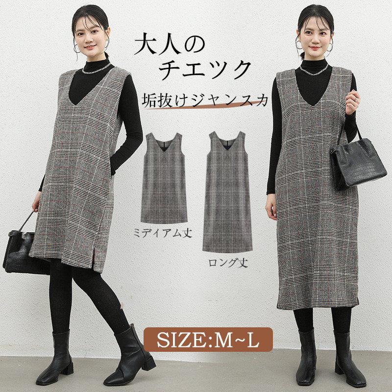大人の魅力を引き出すチェック柄のノースリーブジャンパースカート。